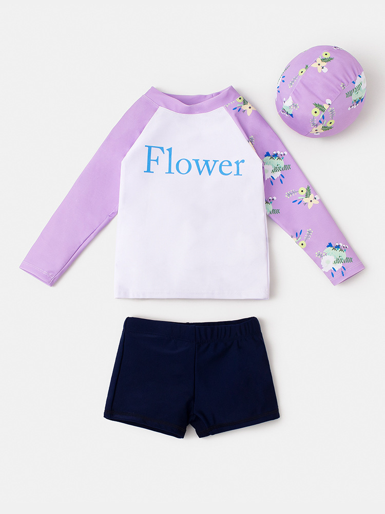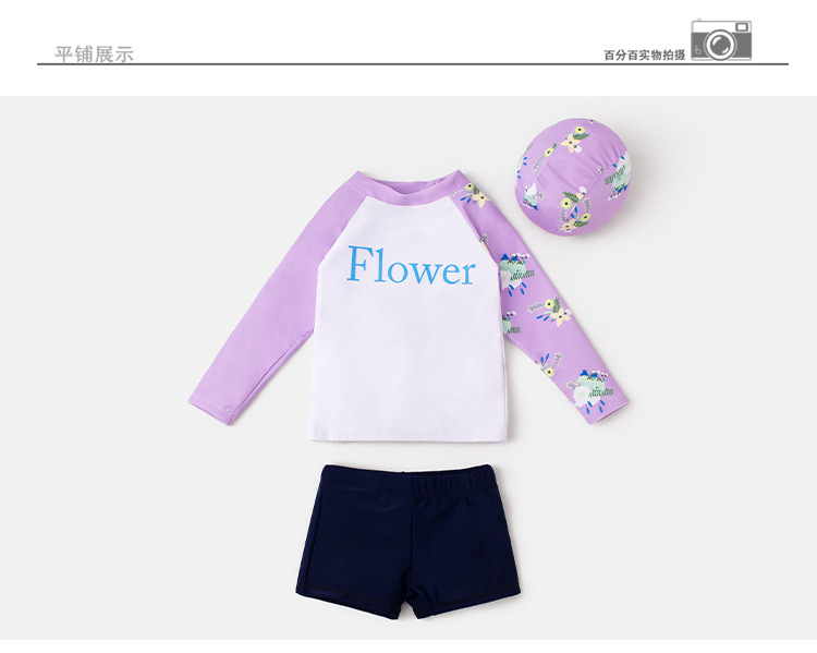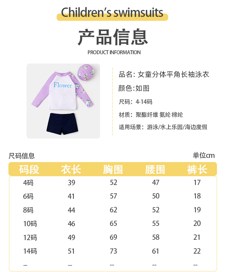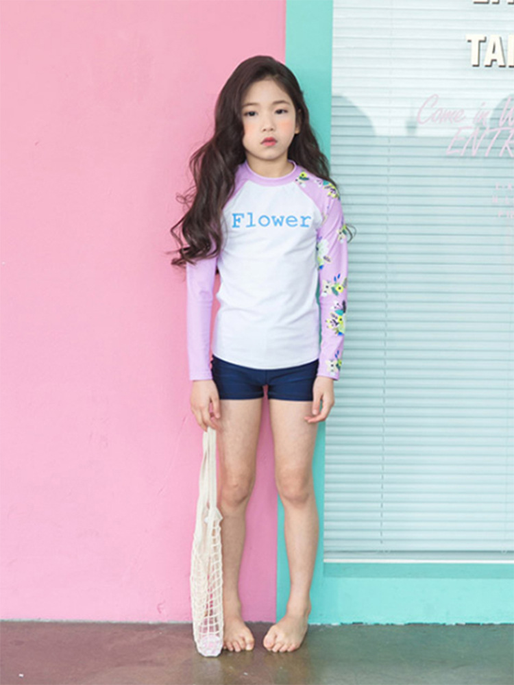여아 여아 아이스 슬리브 긴팔 수영복 여아 아기의 느슨한 통기성 슬리브 분할 수영복 큰 어린이 플랫 코너