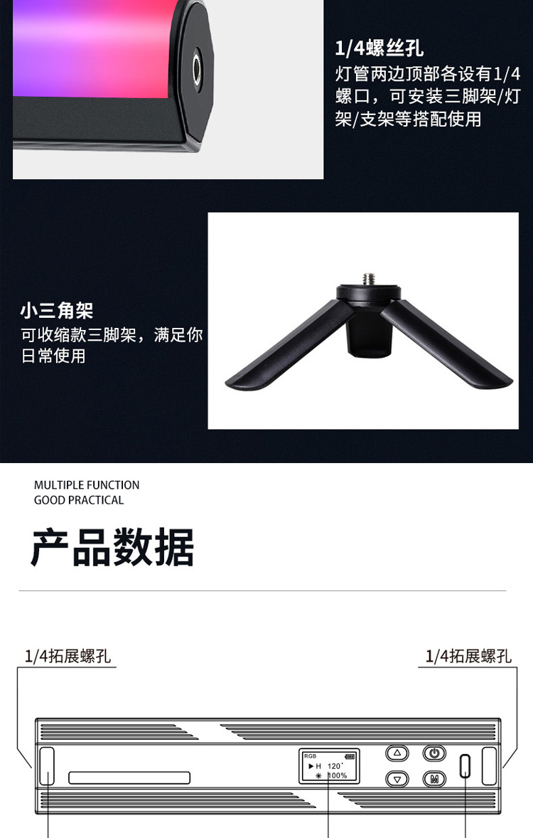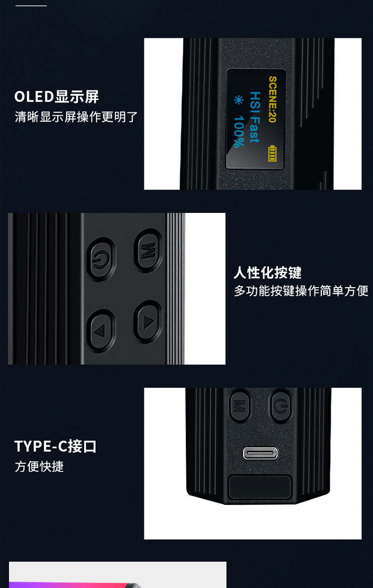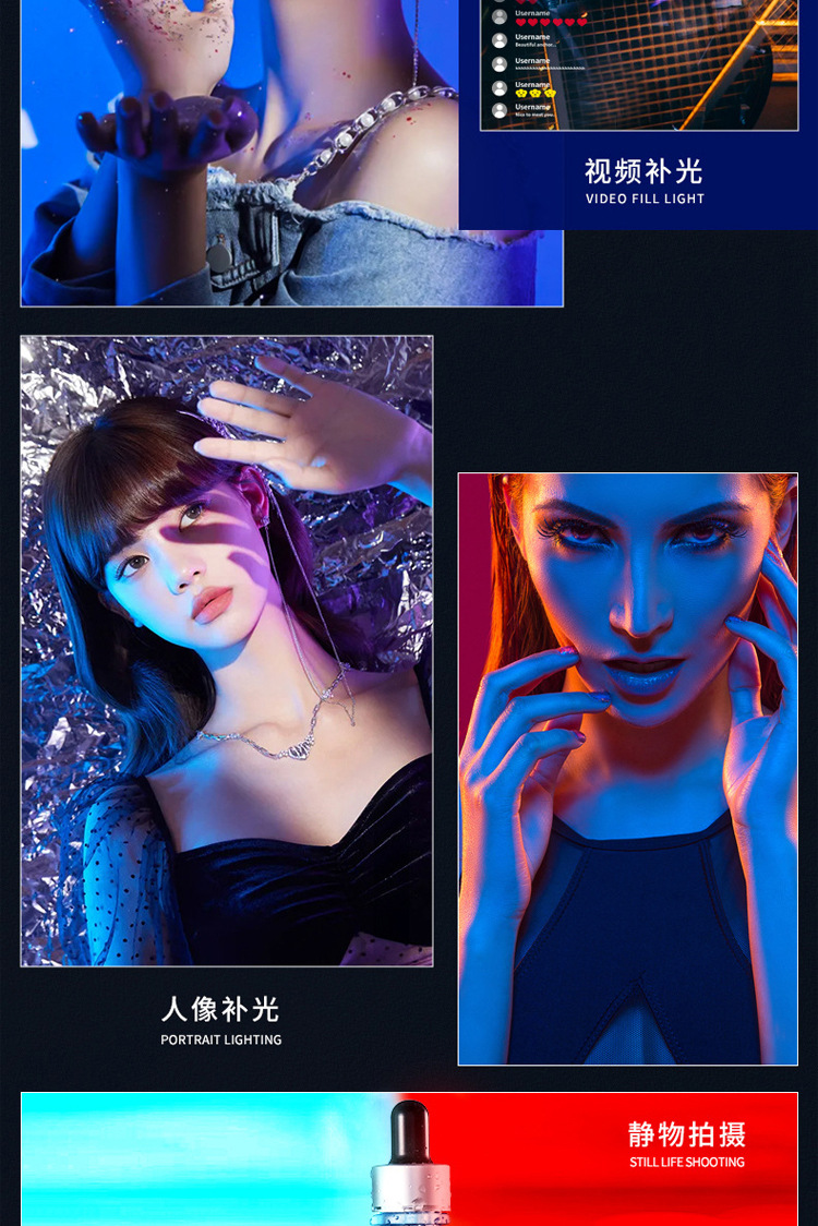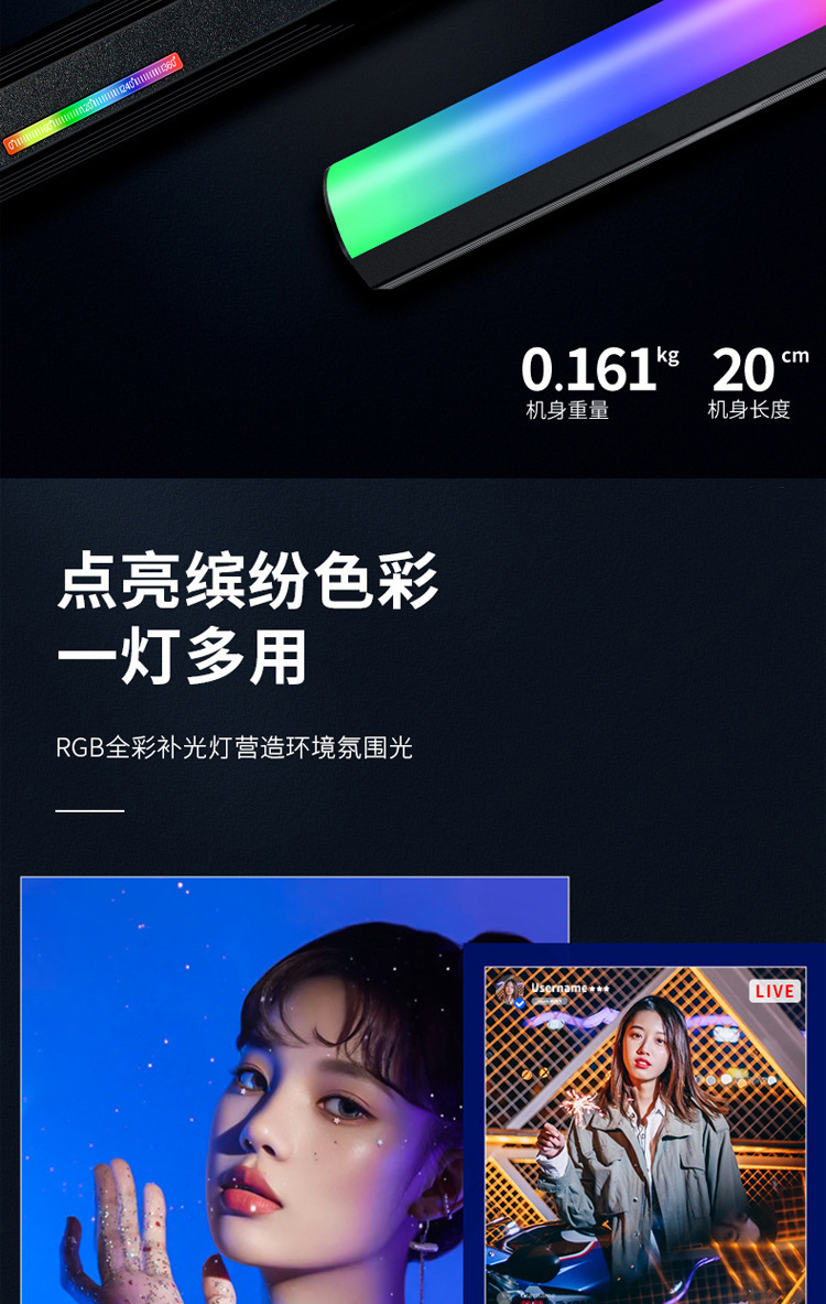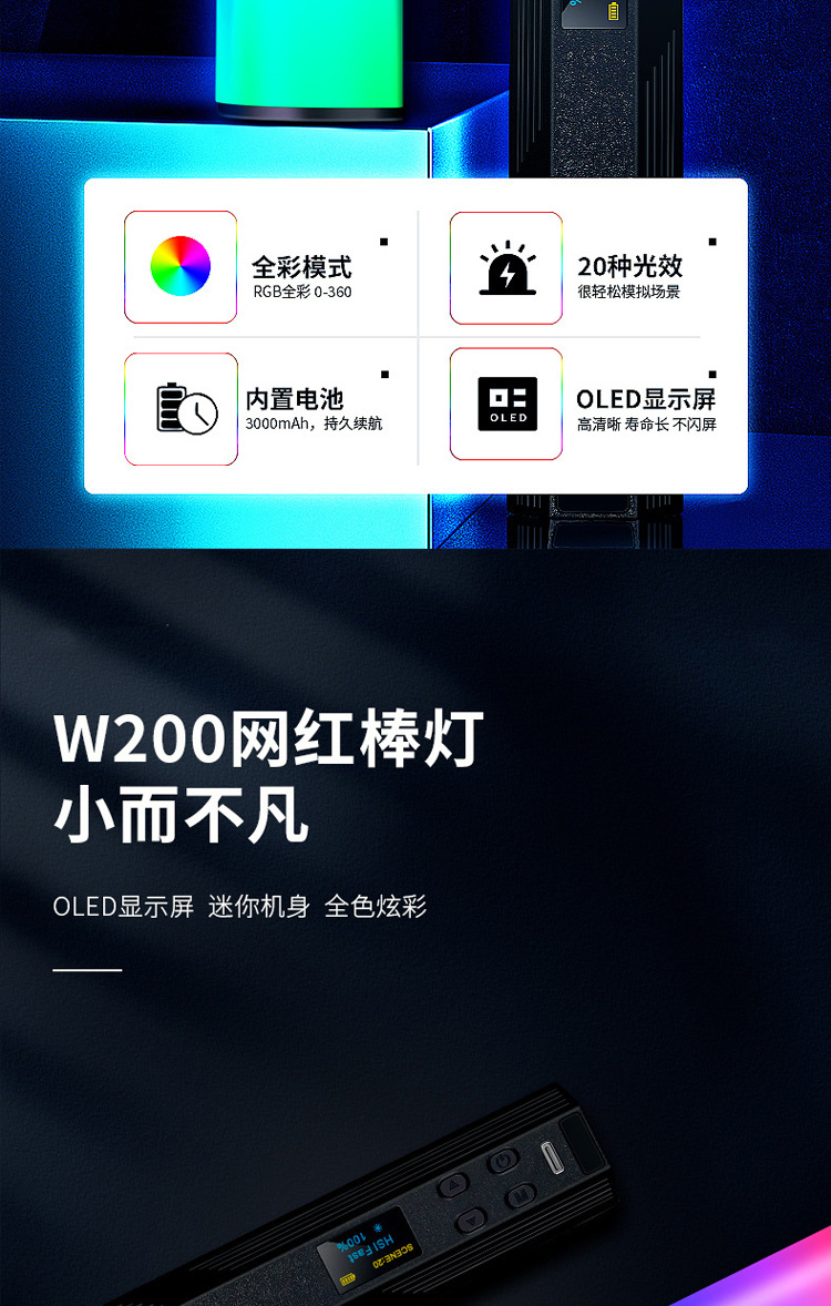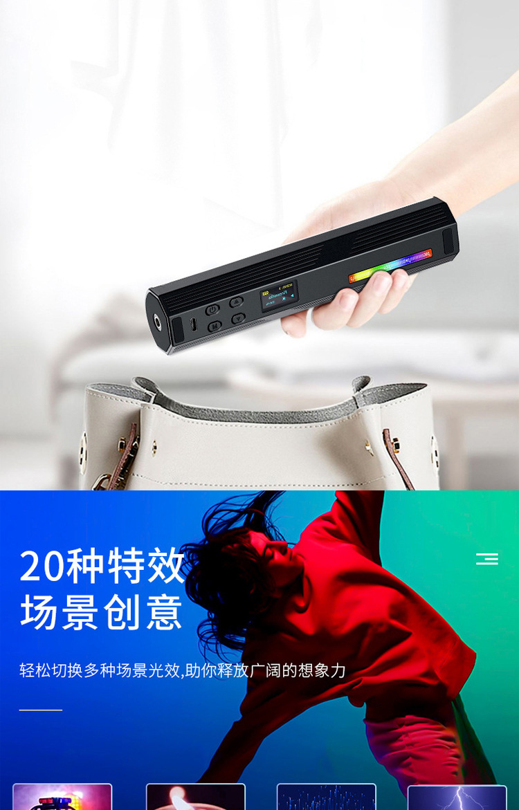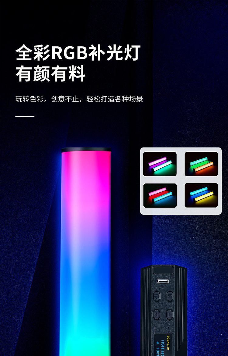 풀 컬러 핸드 헬드 라이트 보충 W200RGB 라이브 사진 LED 분위기등 야외 휴대용 마그네틱 라이트 보충 라이트스토어 가기