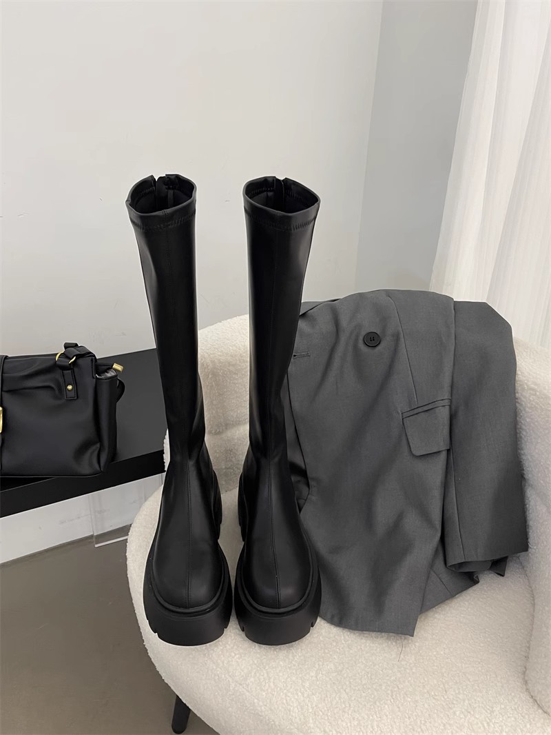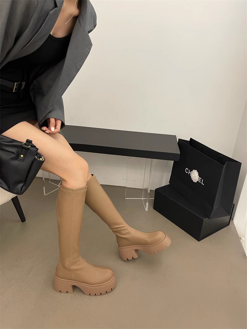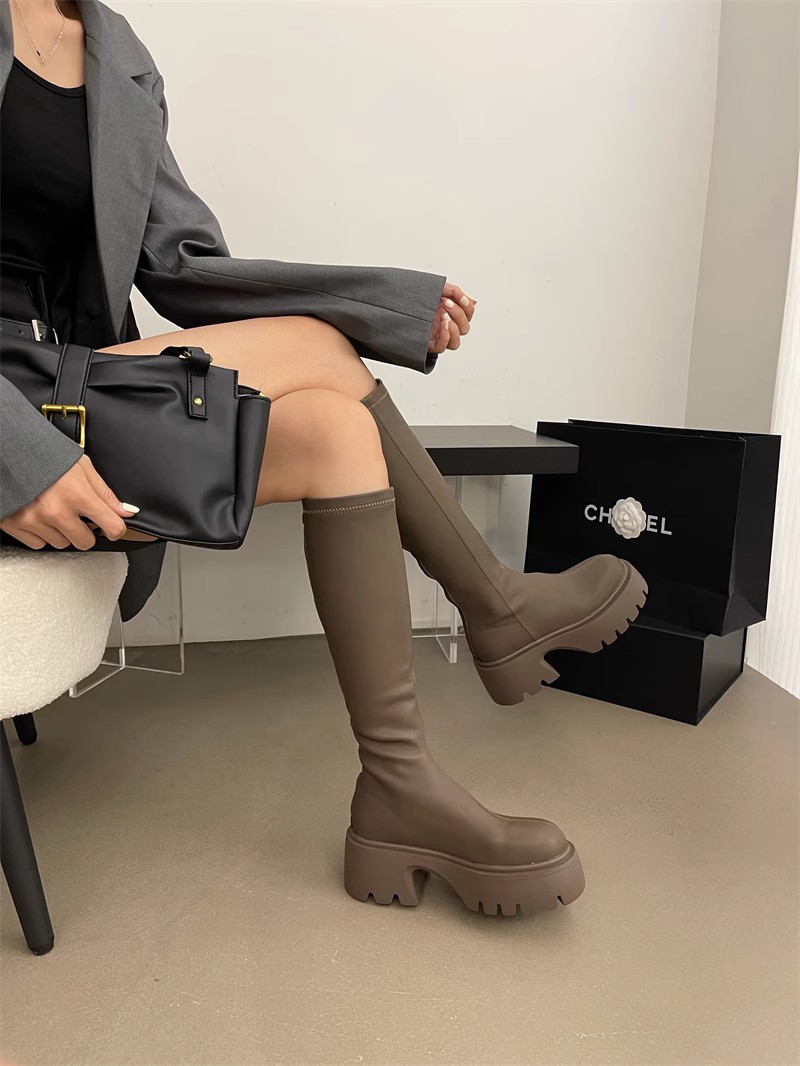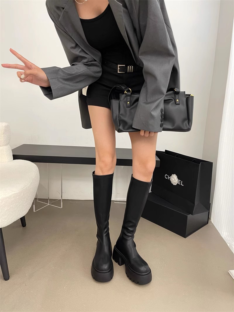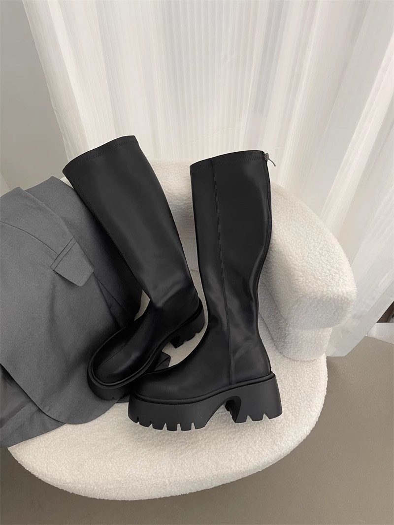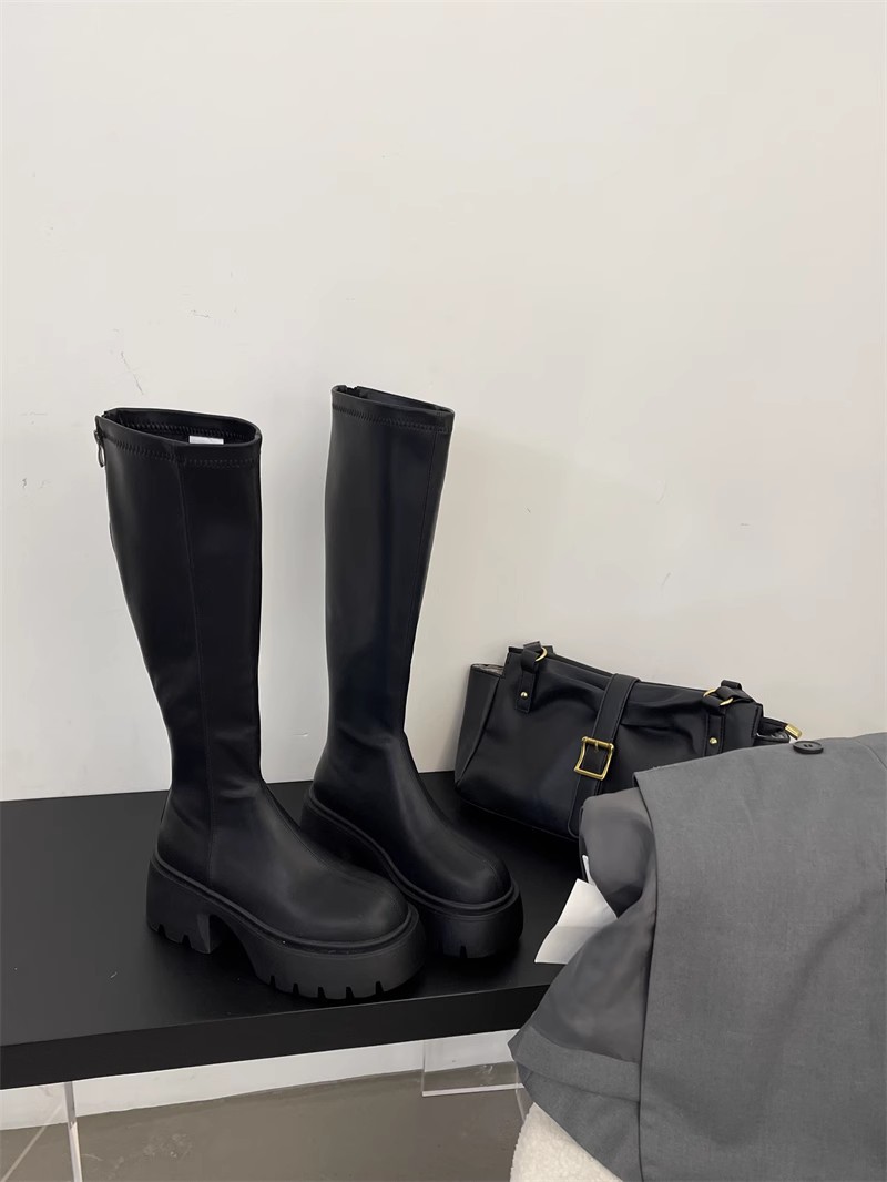 두꺼운 바닥 둥근 머리 블랙 나이트 부츠 여성 부츠 2023 새로운 가을과 겨울 프랑스 얇은 하이힐 부츠스토어 가기