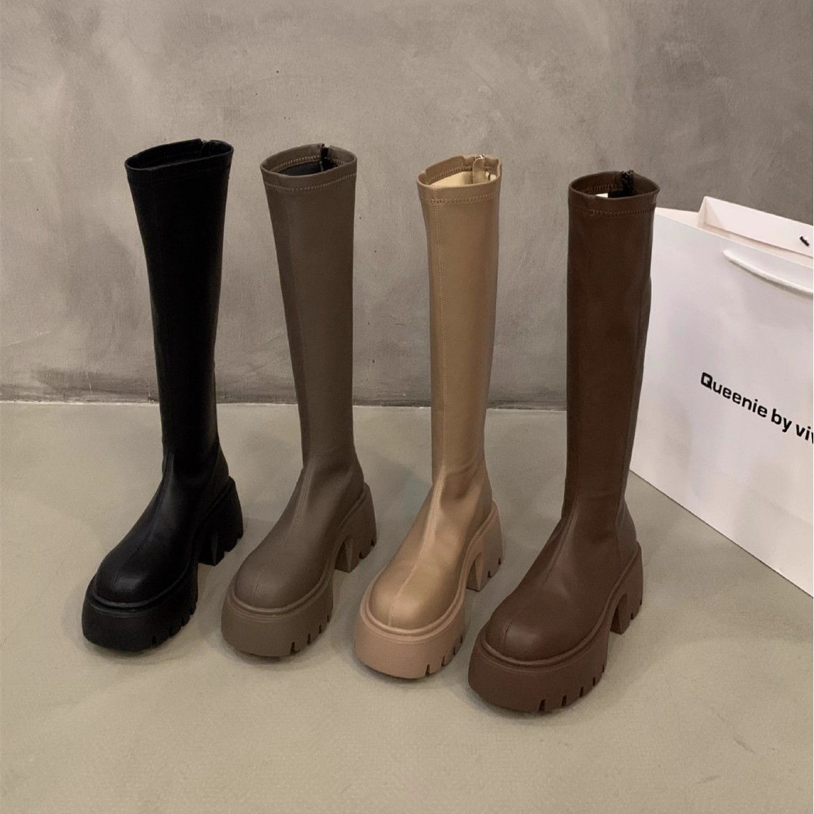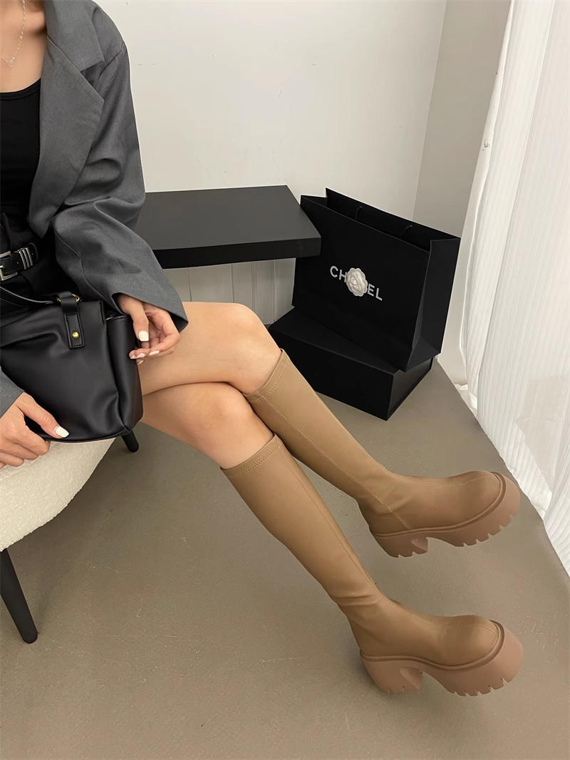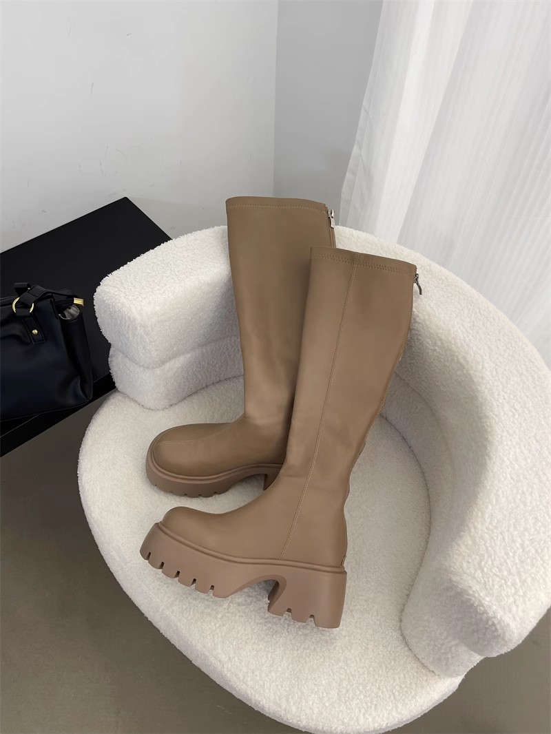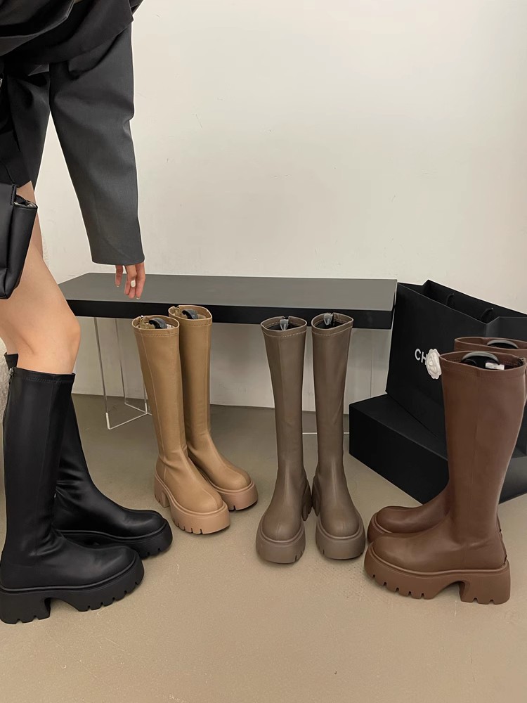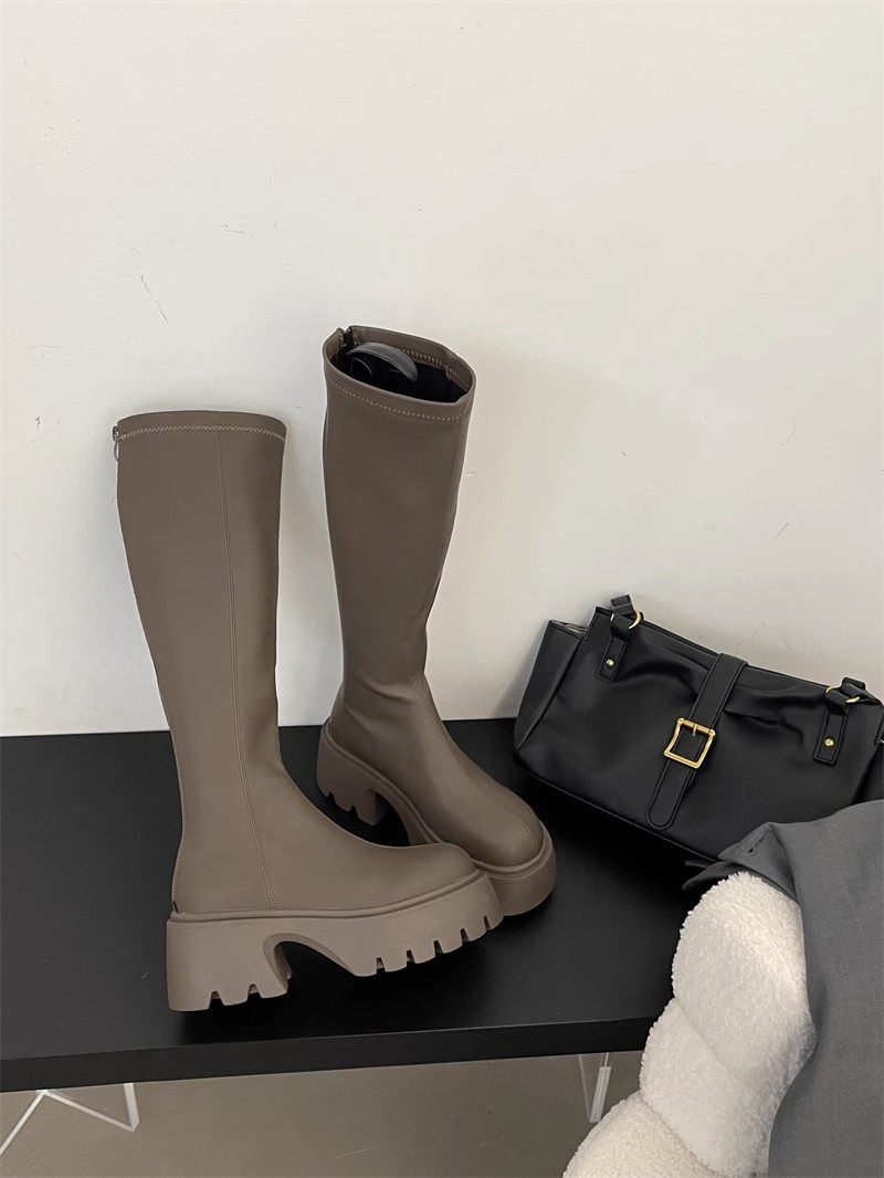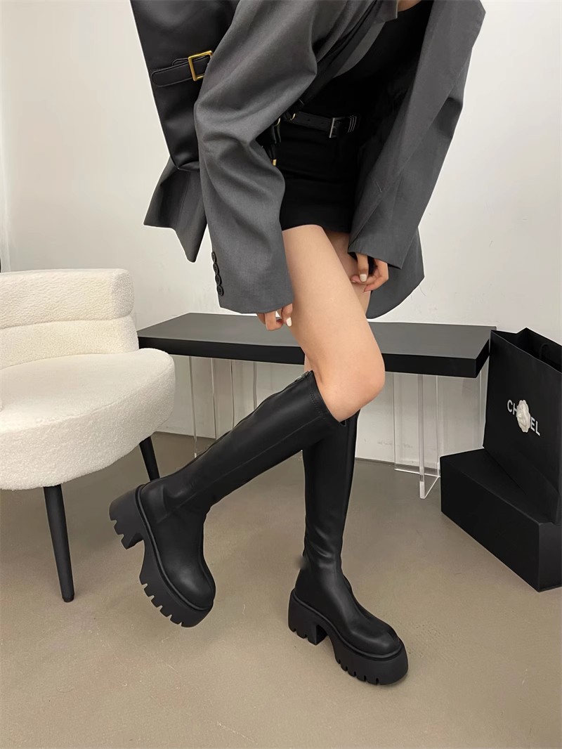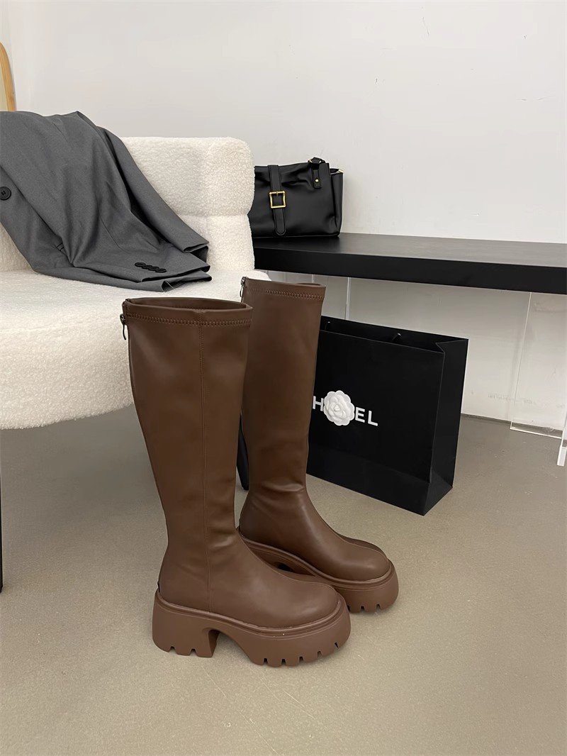 두꺼운 바닥 둥근 머리 블랙 나이트 부츠 여성 부츠 2023 새로운 가을과 겨울 프랑스 얇은 하이힐 부츠스토어 가기