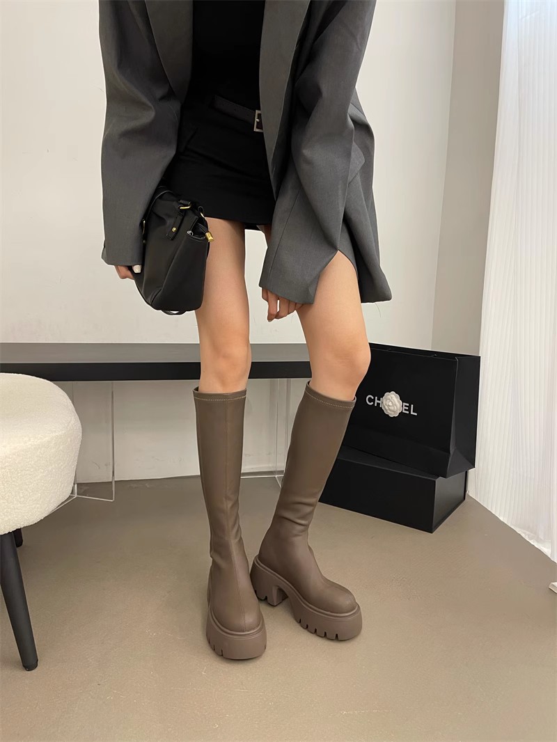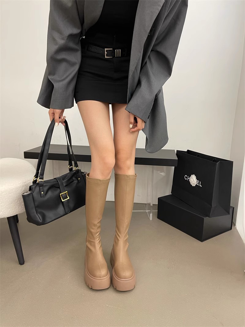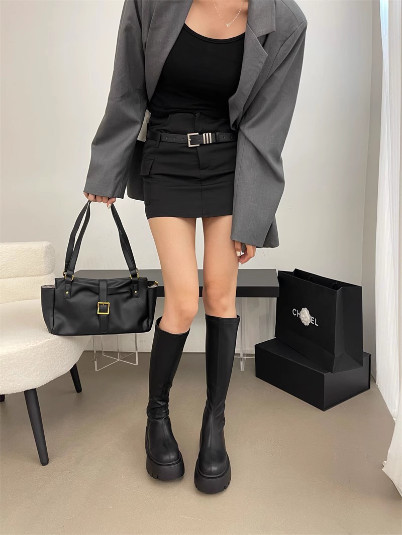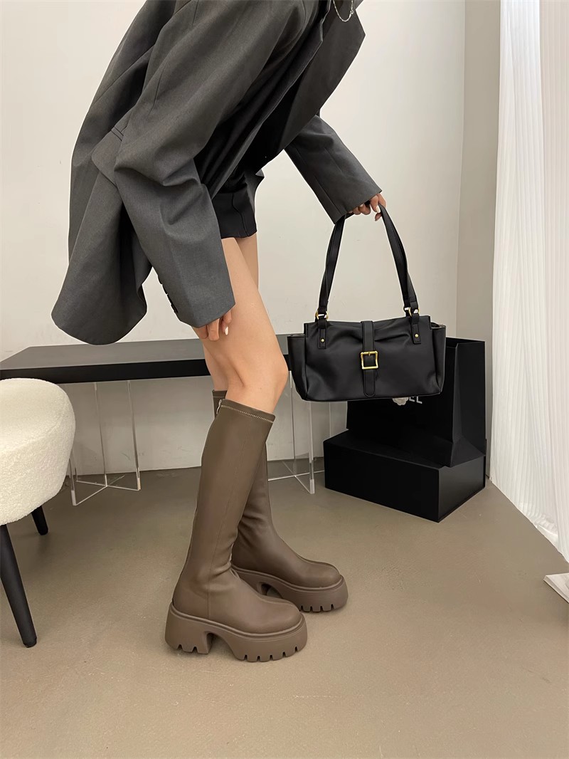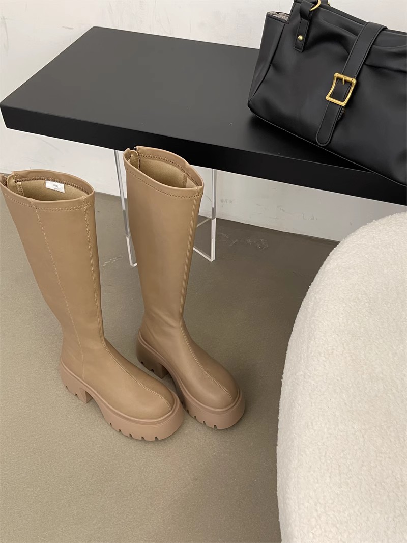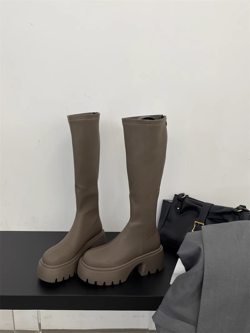 두꺼운 바닥 둥근 머리 블랙 나이트 부츠 여성 부츠 2023 새로운 가을과 겨울 프랑스 얇은 하이힐 부츠스토어 가기