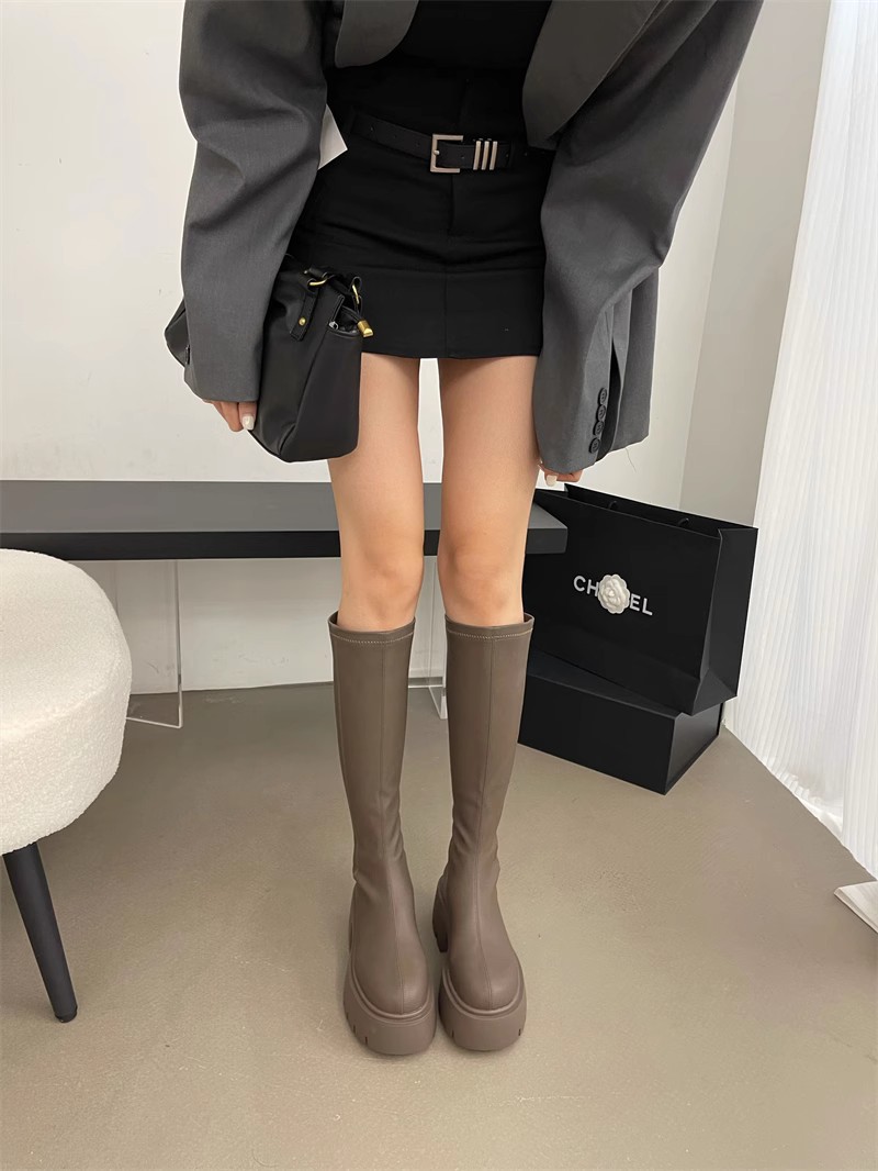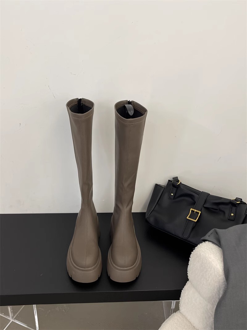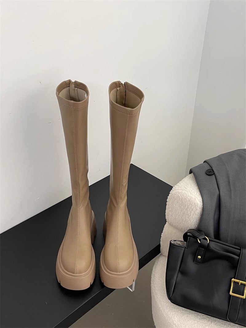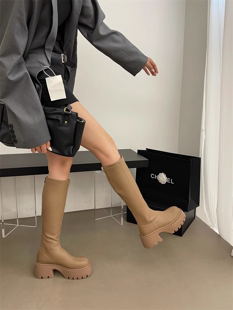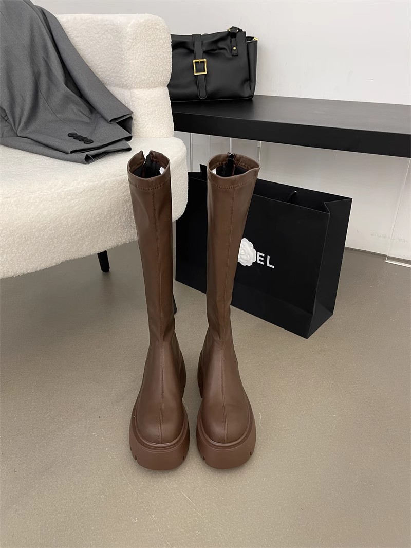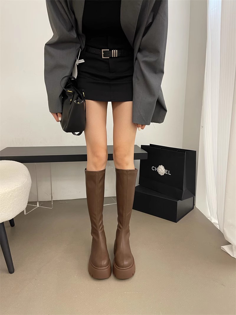 두꺼운 바닥 둥근 머리 블랙 나이트 부츠 여성 부츠 2023 새로운 가을과 겨울 프랑스 얇은 하이힐 부츠스토어 가기