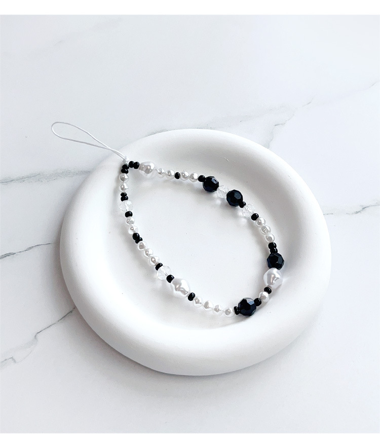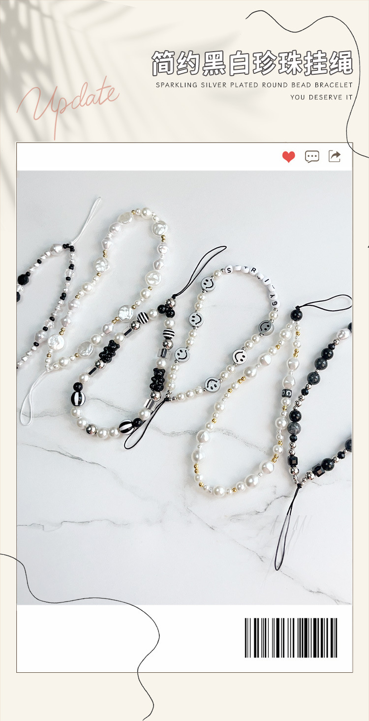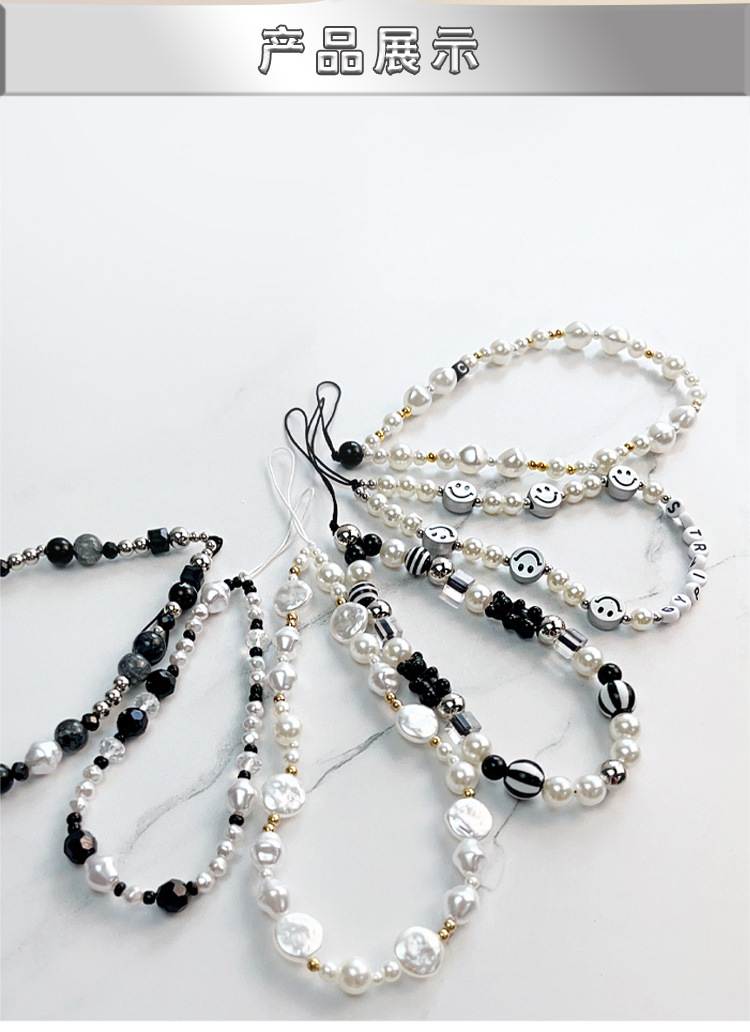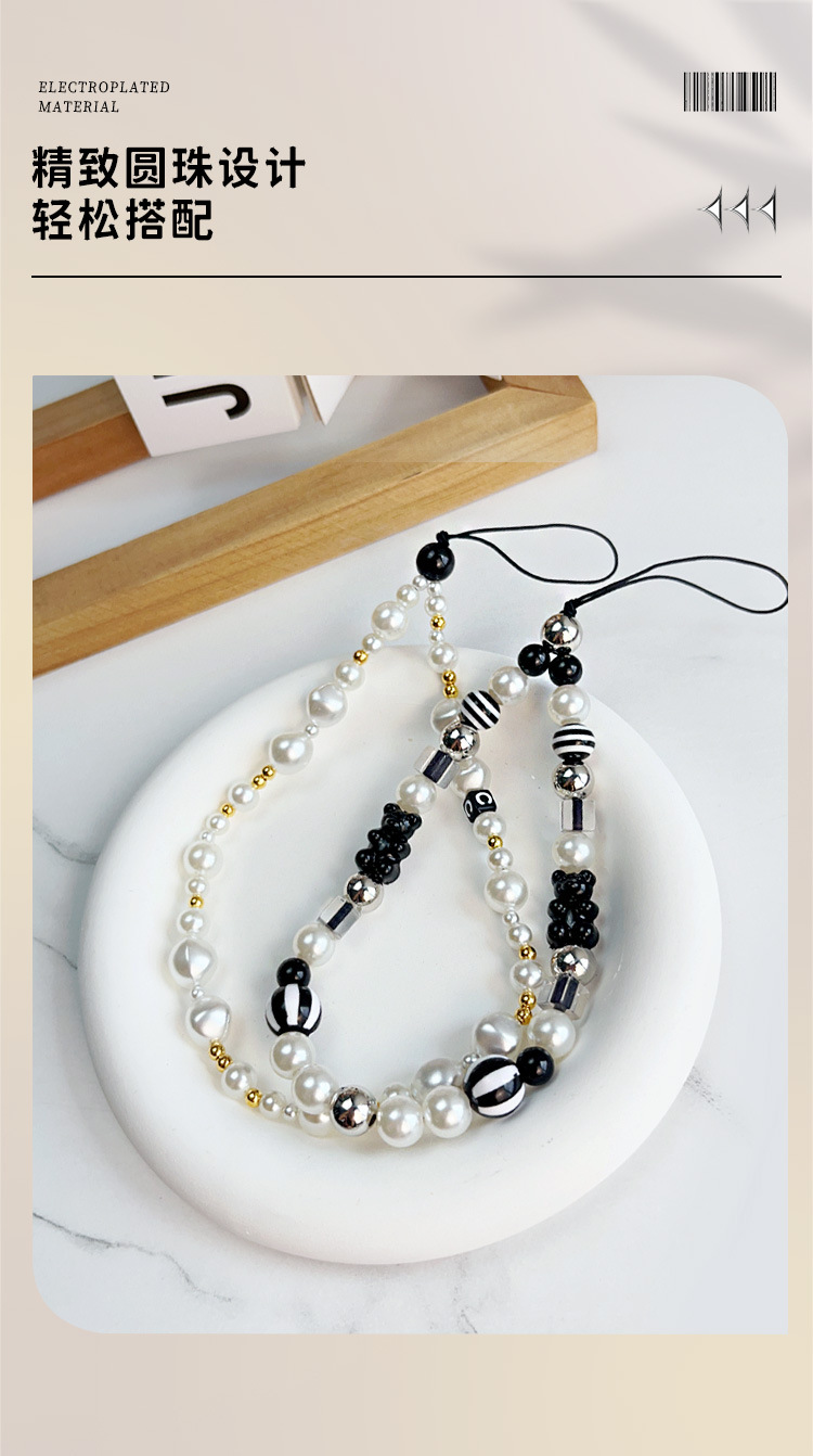 새로운 검은 구슬 휴대 전화 체인 진주 구슬 사랑 휴대 전화 끈 짧은 손 밧줄 안티 드롭