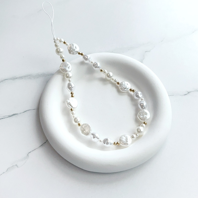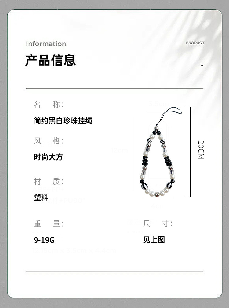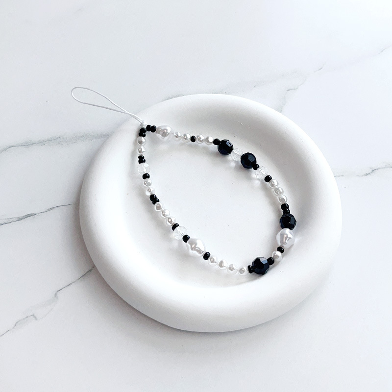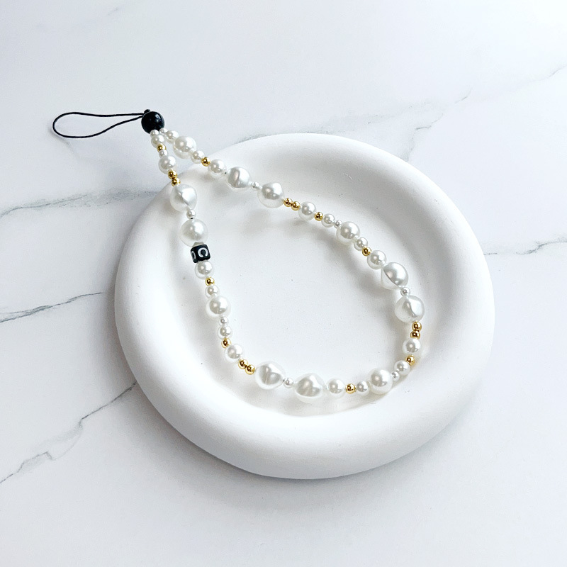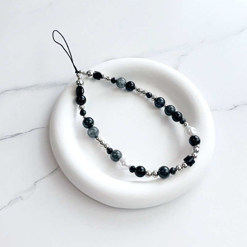 새로운 검은 구슬 휴대 전화 체인 진주 구슬 사랑 휴대 전화 끈 짧은 손 밧줄 안티 드롭
