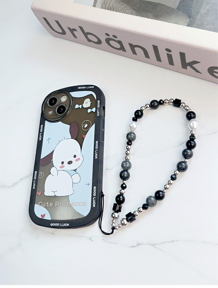 새로운 검은 구슬 휴대 전화 체인 진주 구슬 사랑 휴대 전화 끈 짧은 손 밧줄 안티 드롭스토어 가기