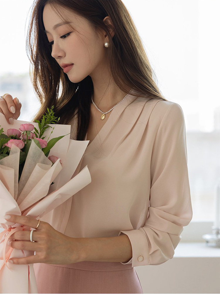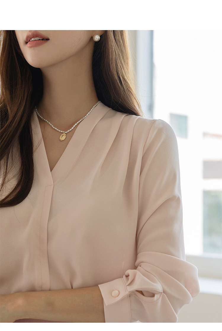 Xiaomei Niang 여성 의류 제조 업체 도매 쉬폰 셔츠 여성 가을 의류 새로운 프랑스어 v 넥 간단한 정장 내부 작은 셔츠스토어 가기