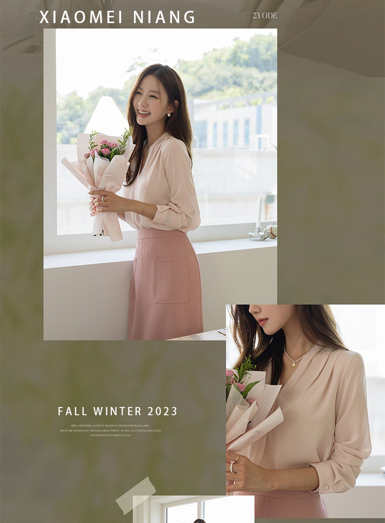 Xiaomei Niang 여성 의류 제조 업체 도매 쉬폰 셔츠 여성 가을 의류 새로운 프랑스어 v 넥 간단한 정장 내부 작은 셔츠