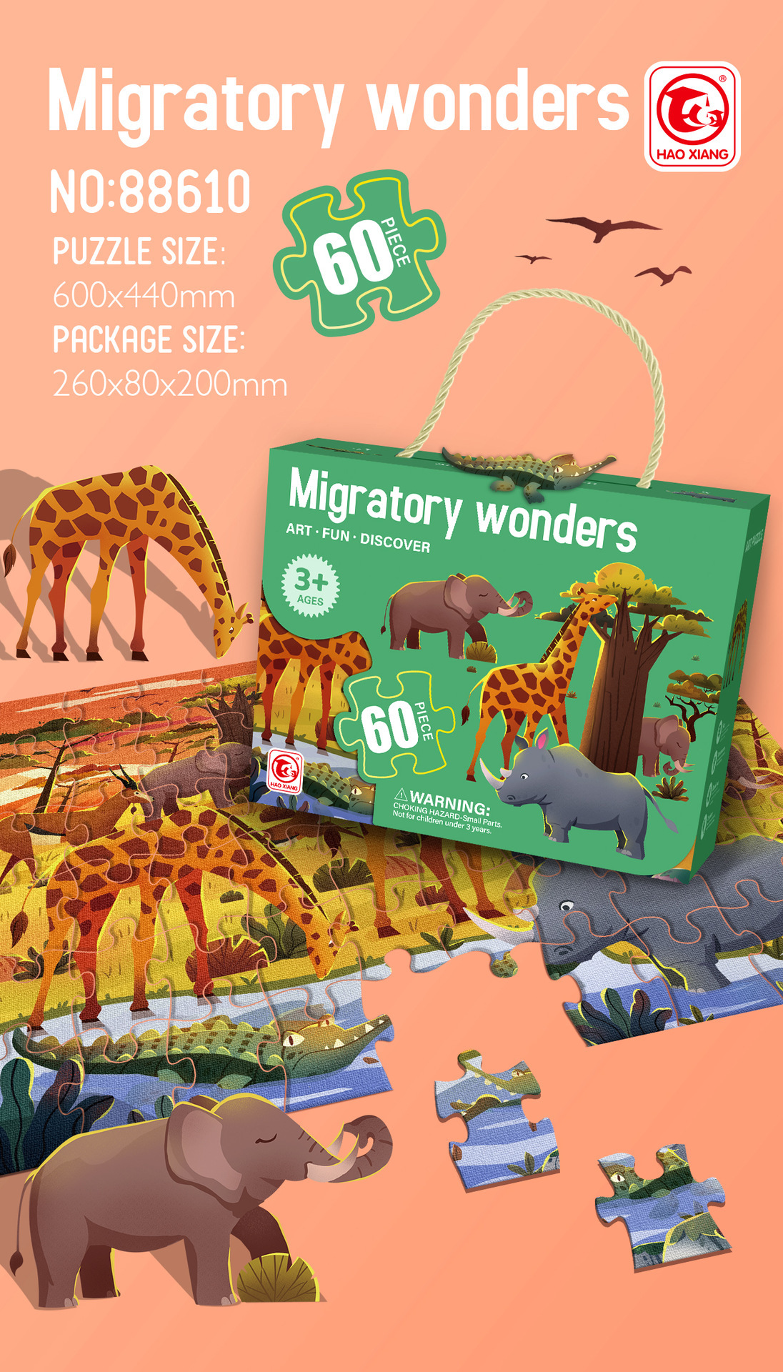 彩盒尺寸26*8*20cm, 拼图尺寸60*44cm,单盒净重580g左右,装箱60盒