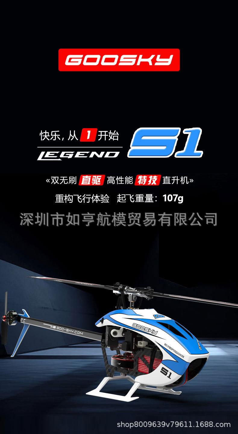 원격 제어 헬리콥터 항공기 GOOSKY Gutian 기술 S1 모델 항공기 3D 스턴트 헬리콥터 UAV 원격 제어 장난감스토어 가기