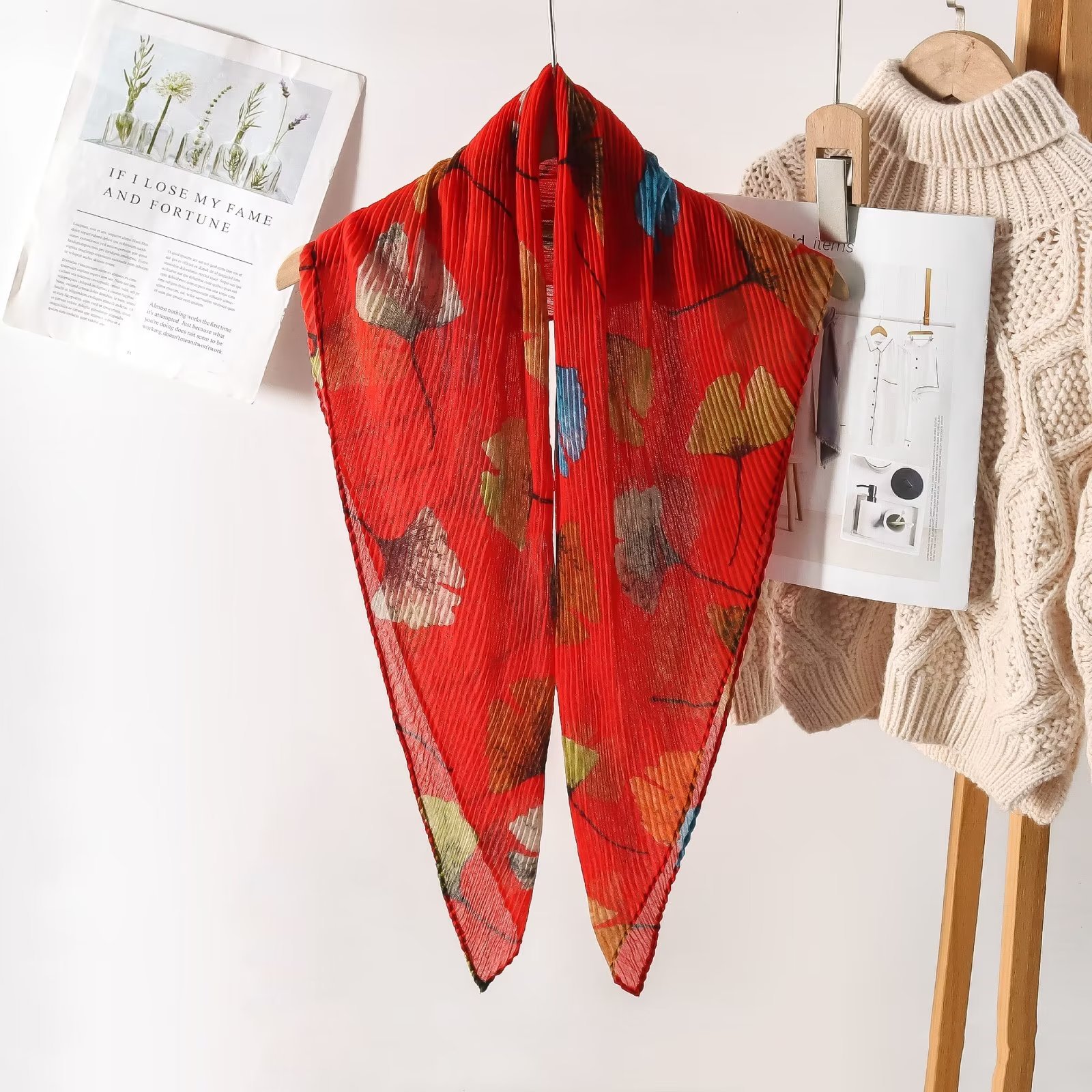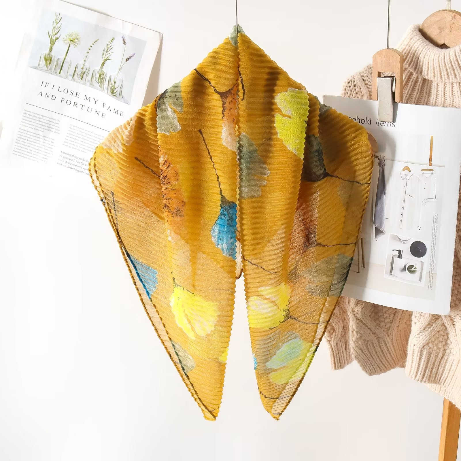 여름 얇은 스카프 예술적 은행 잎 인쇄 구겨진 발리 원사 숄 패션 비치 타올 자외선 차단제 여성용 숄