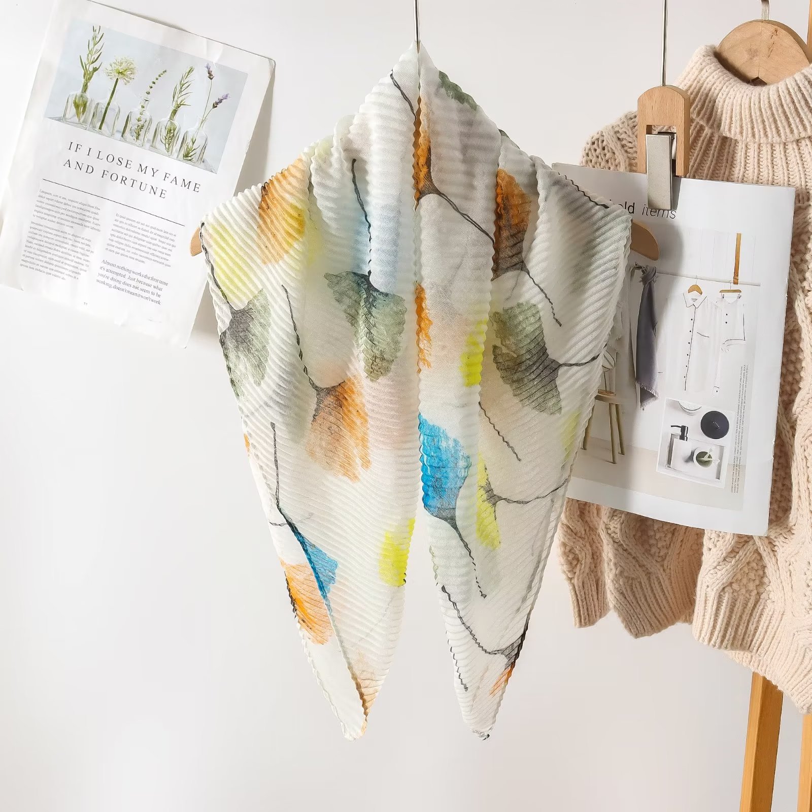 여름 얇은 스카프 예술적 은행 잎 인쇄 구겨진 발리 원사 숄 패션 비치 타올 자외선 차단제 여성용 숄스토어 가기