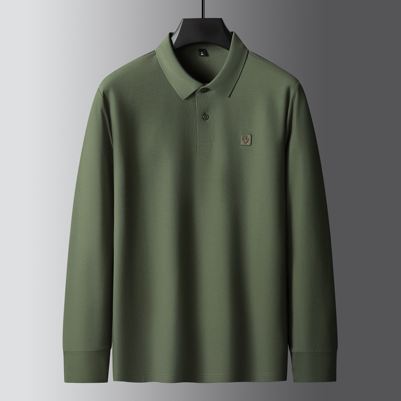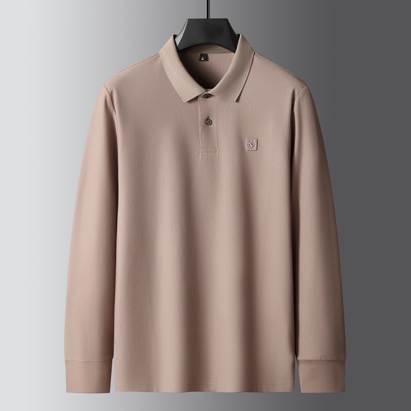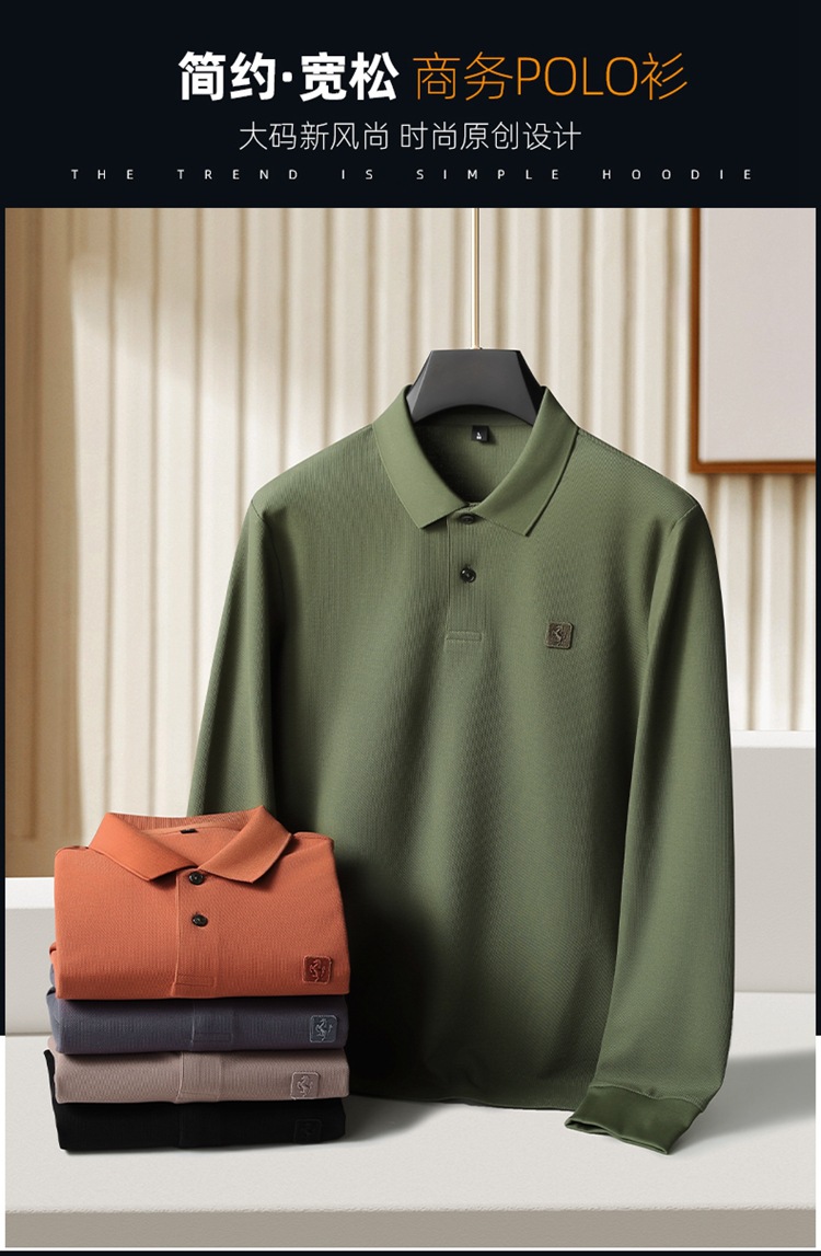 뚱뚱한 형제 가을 2023 새로운 남자의 초대형 비즈니스 캐주얼 옷깃 면 긴 소매 티셔츠스토어 가기