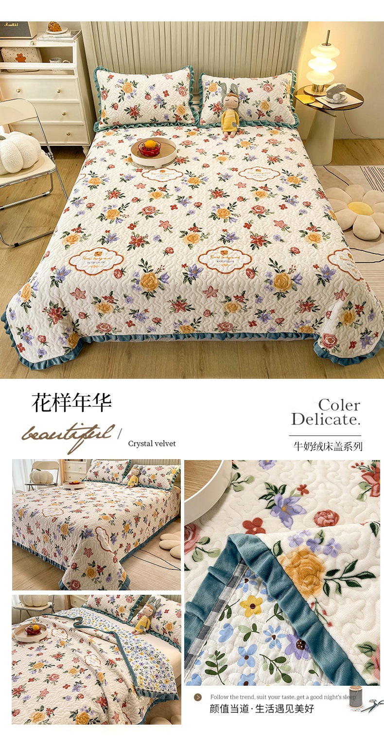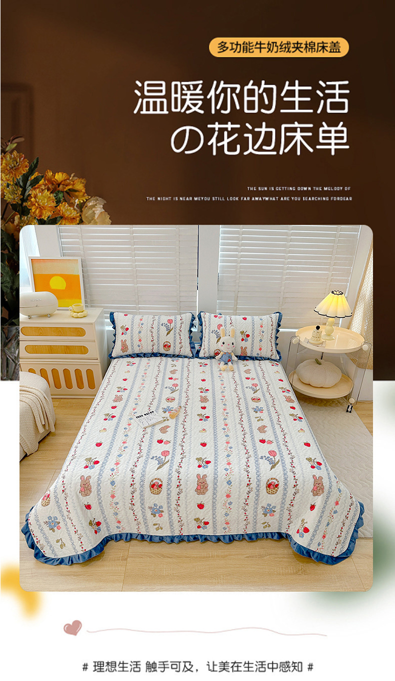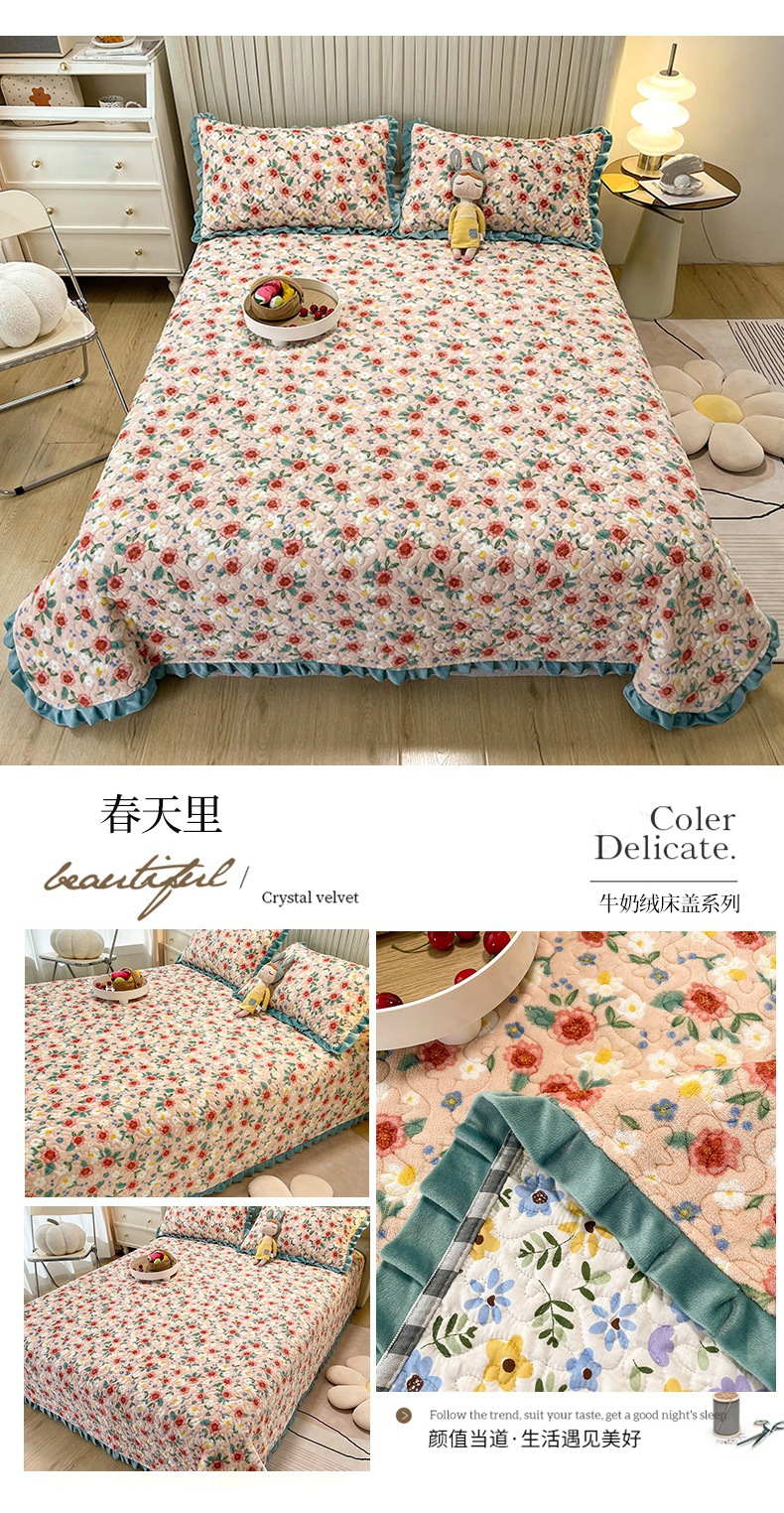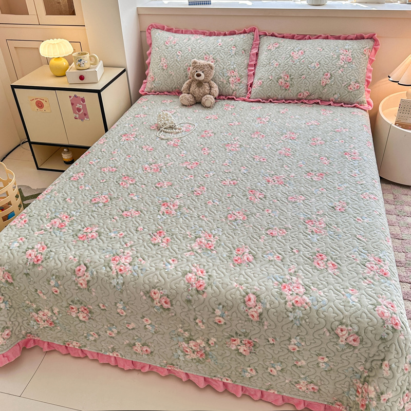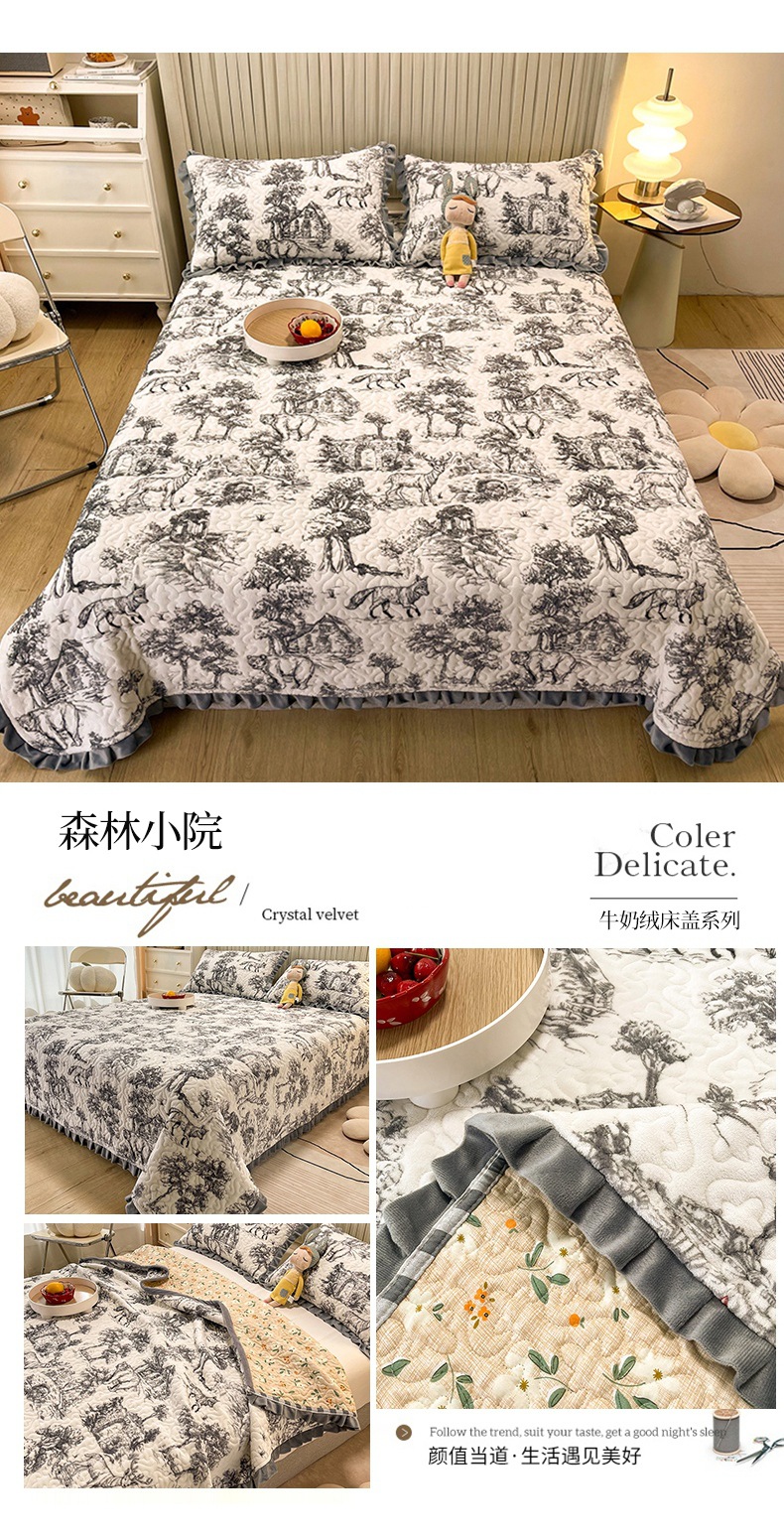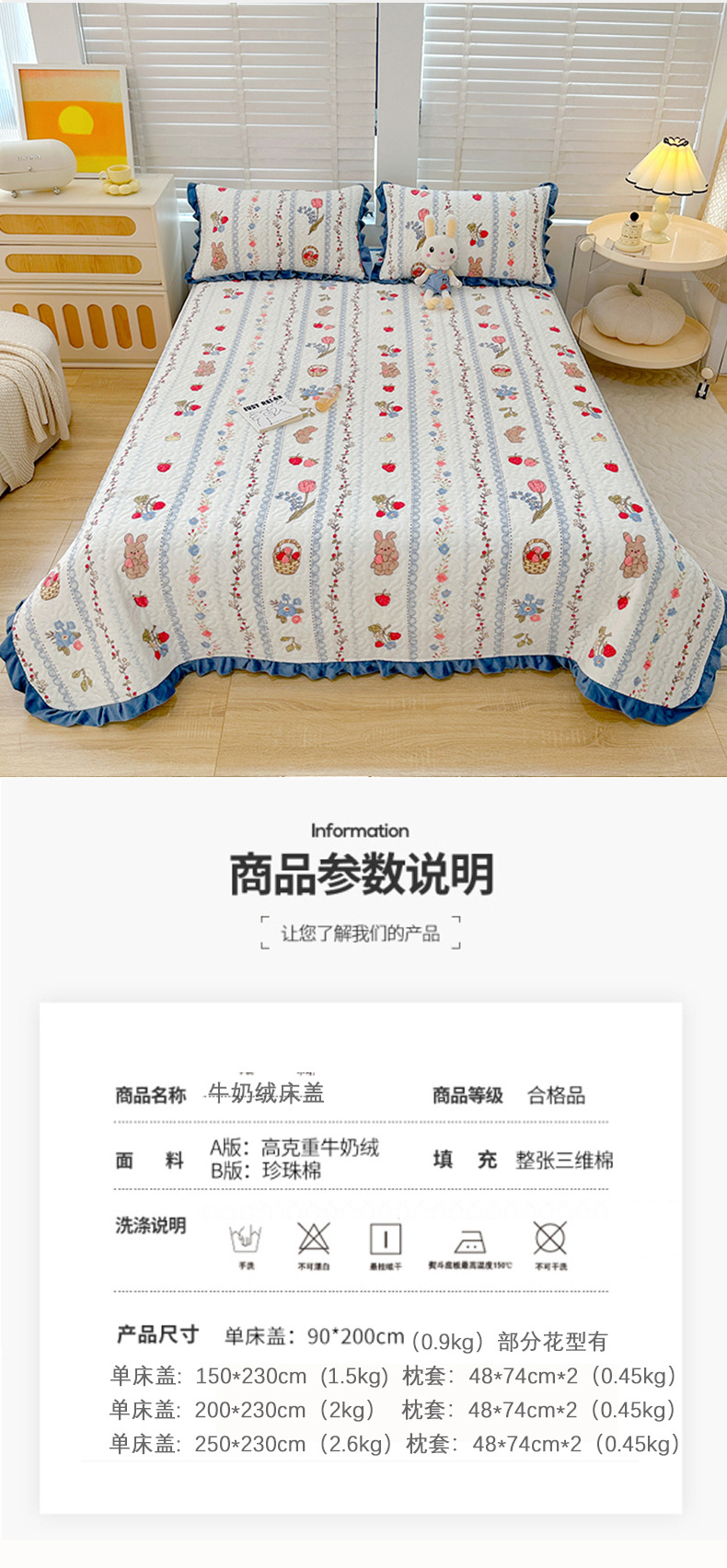 2025년 신제품 밀크벨벳 누빔 침대 커버 레이스 스타일 두꺼운 침대 커버 세트 기계 세탁 가능 다다미 매트 라이브 방송 인기 상품스토어 가기