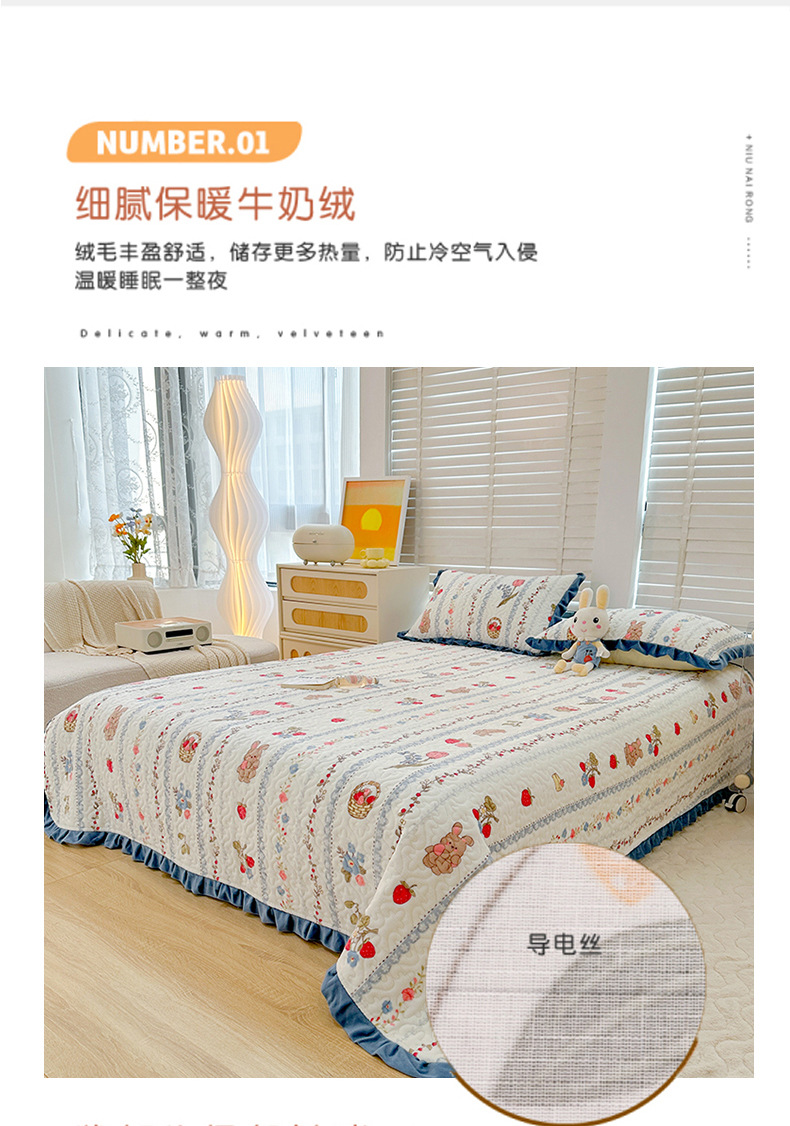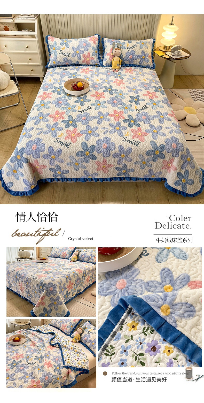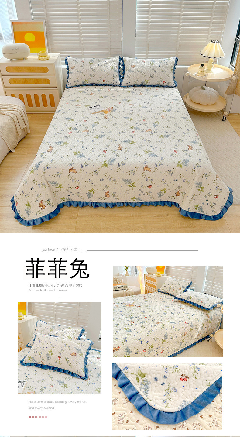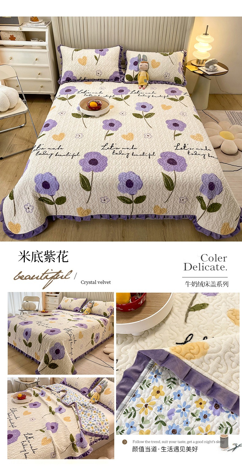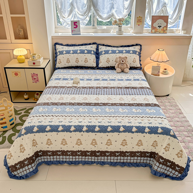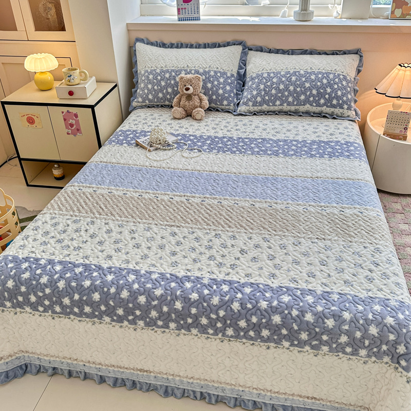 2025년 신제품 밀크벨벳 누빔 침대 커버 레이스 스타일 두꺼운 침대 커버 세트 기계 세탁 가능 다다미 매트 라이브 방송 인기 상품스토어 가기
