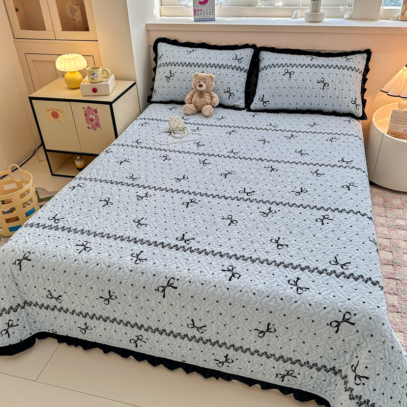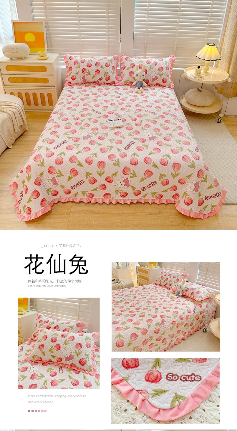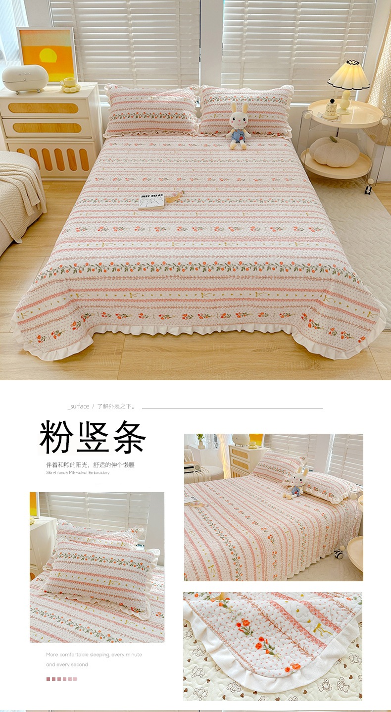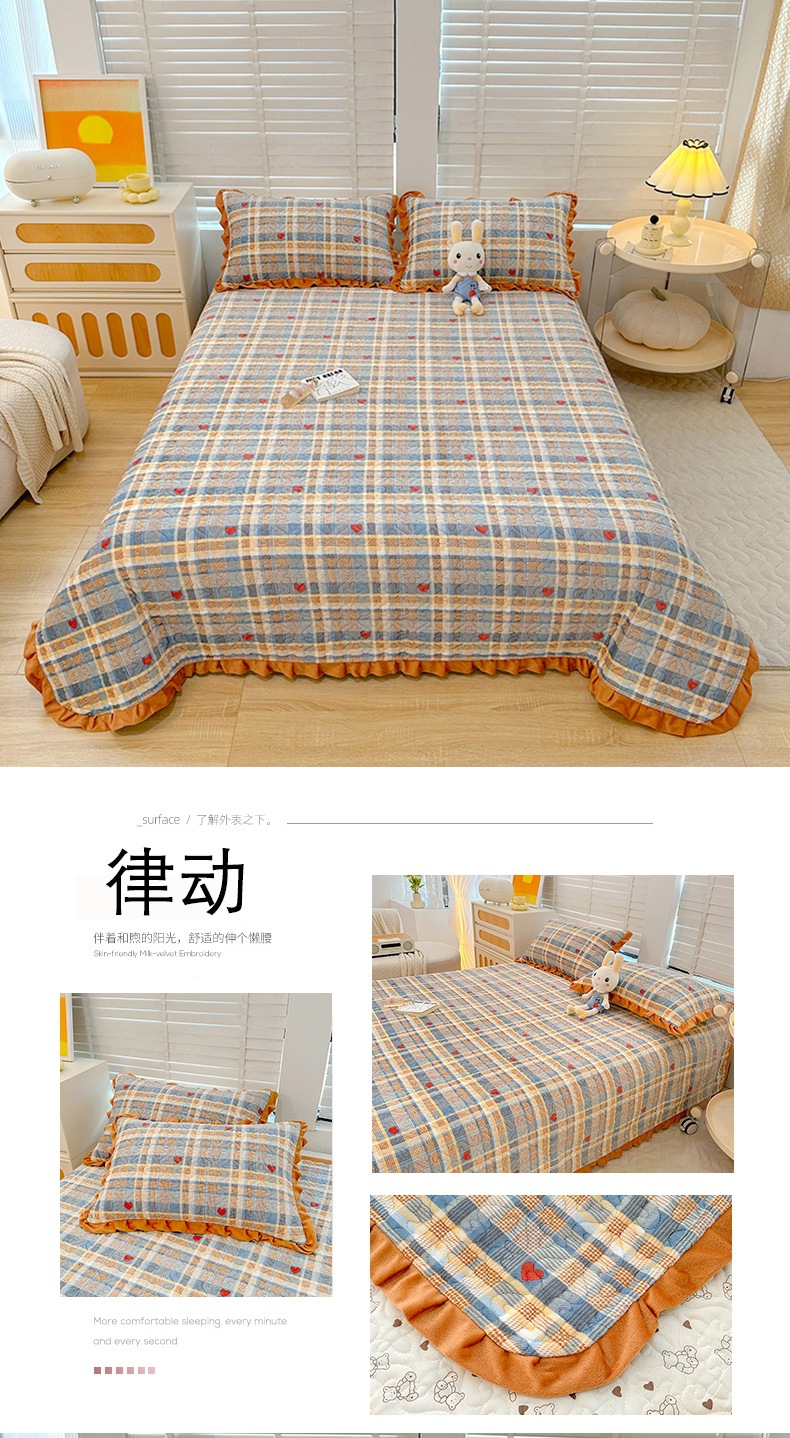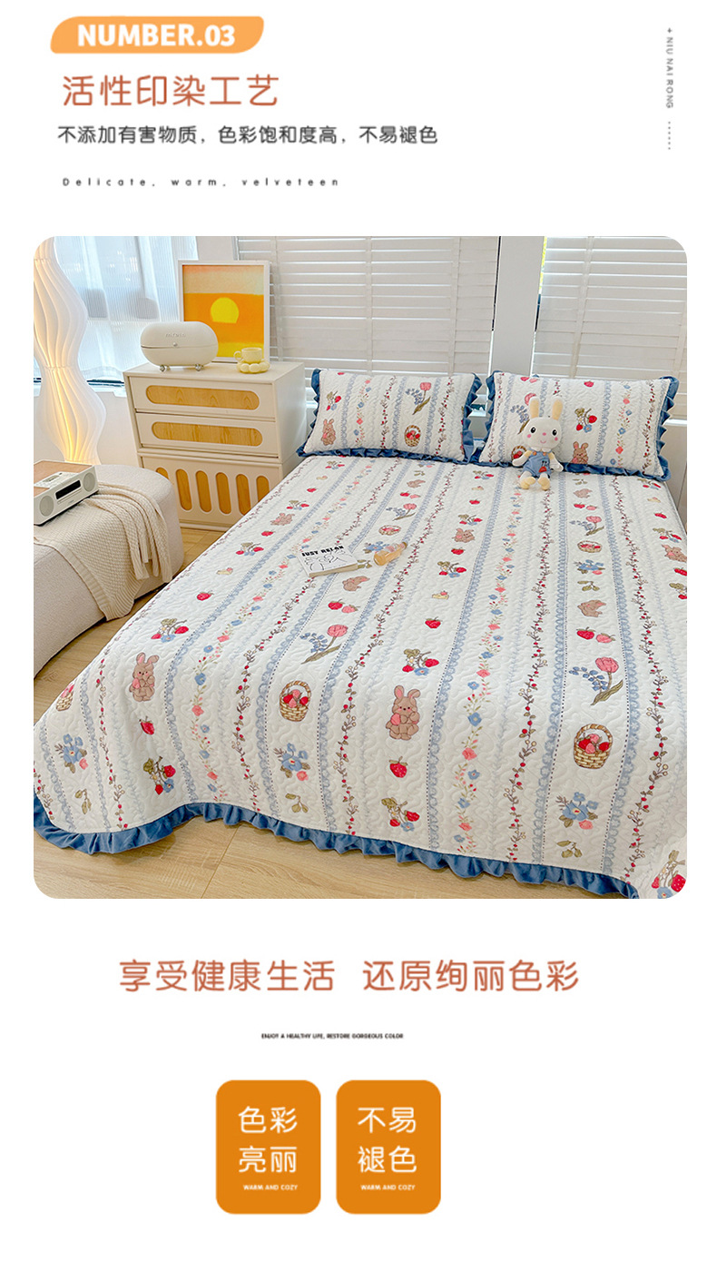 2025년 신제품 밀크벨벳 누빔 침대 커버 레이스 스타일 두꺼운 침대 커버 세트 기계 세탁 가능 다다미 매트 라이브 방송 인기 상품스토어 가기