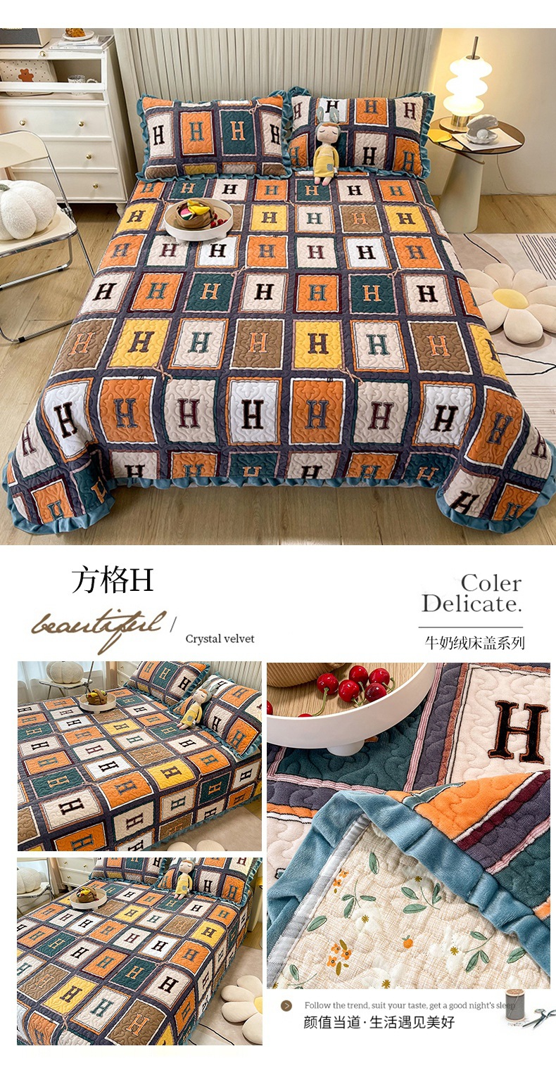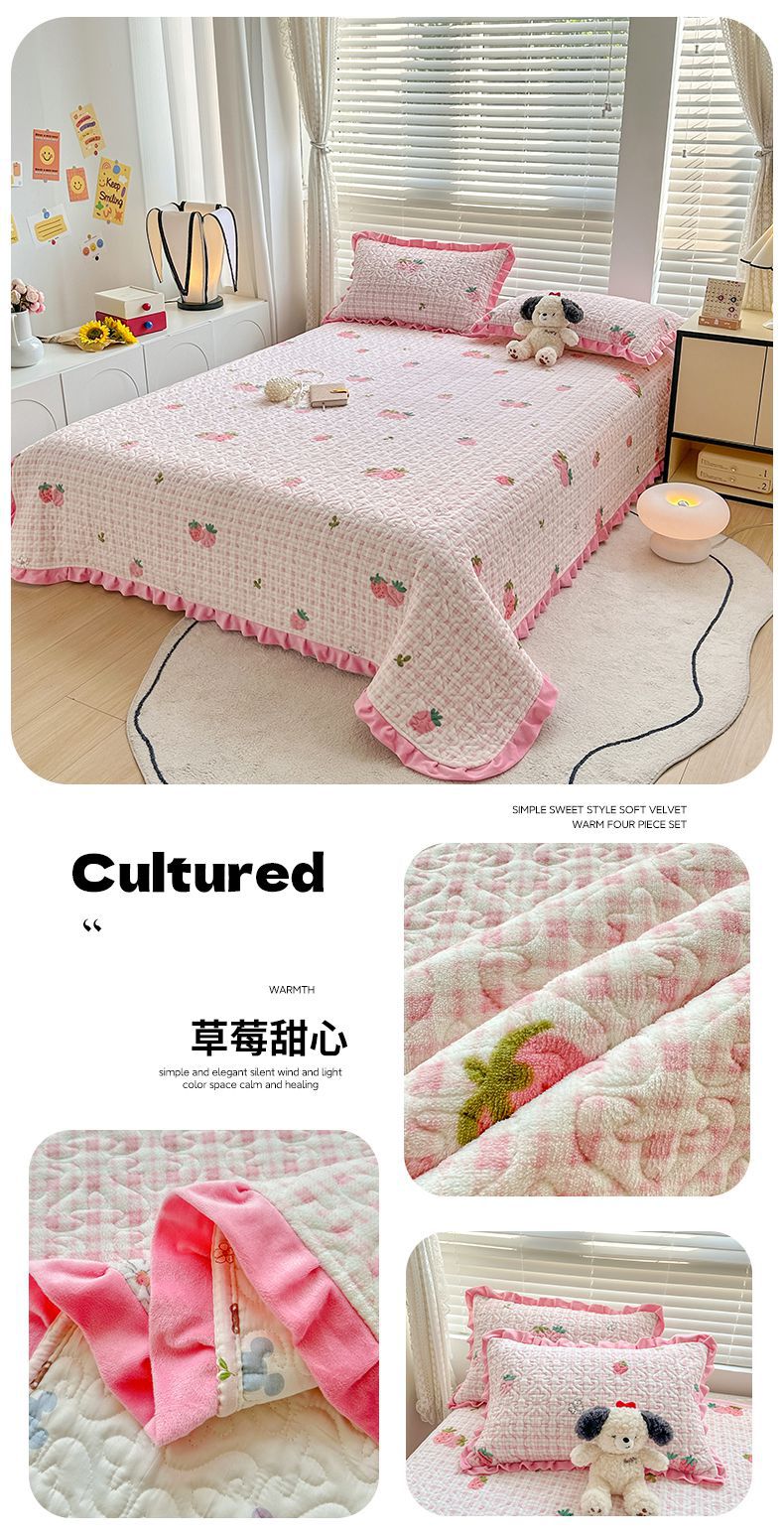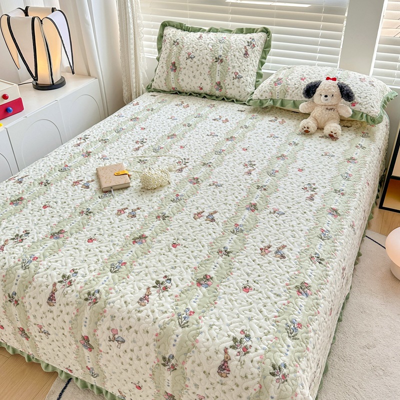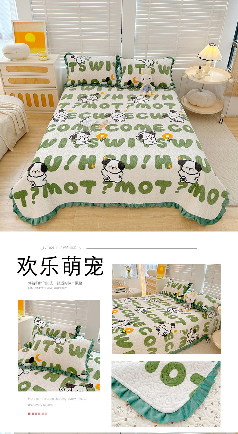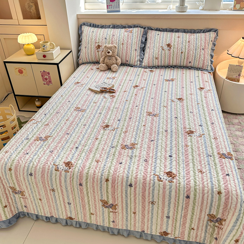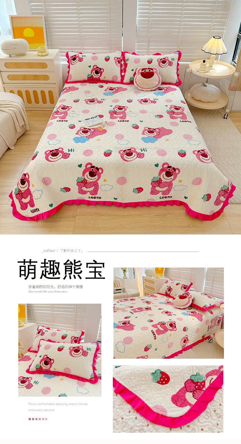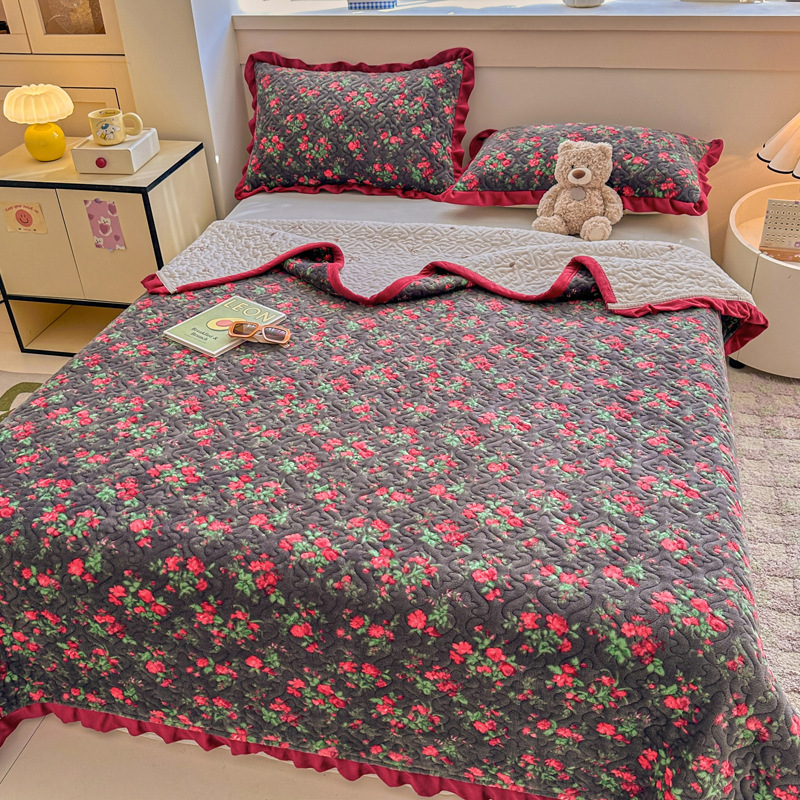 2025년 신제품 밀크벨벳 누빔 침대 커버 레이스 스타일 두꺼운 침대 커버 세트 기계 세탁 가능 다다미 매트 라이브 방송 인기 상품스토어 가기