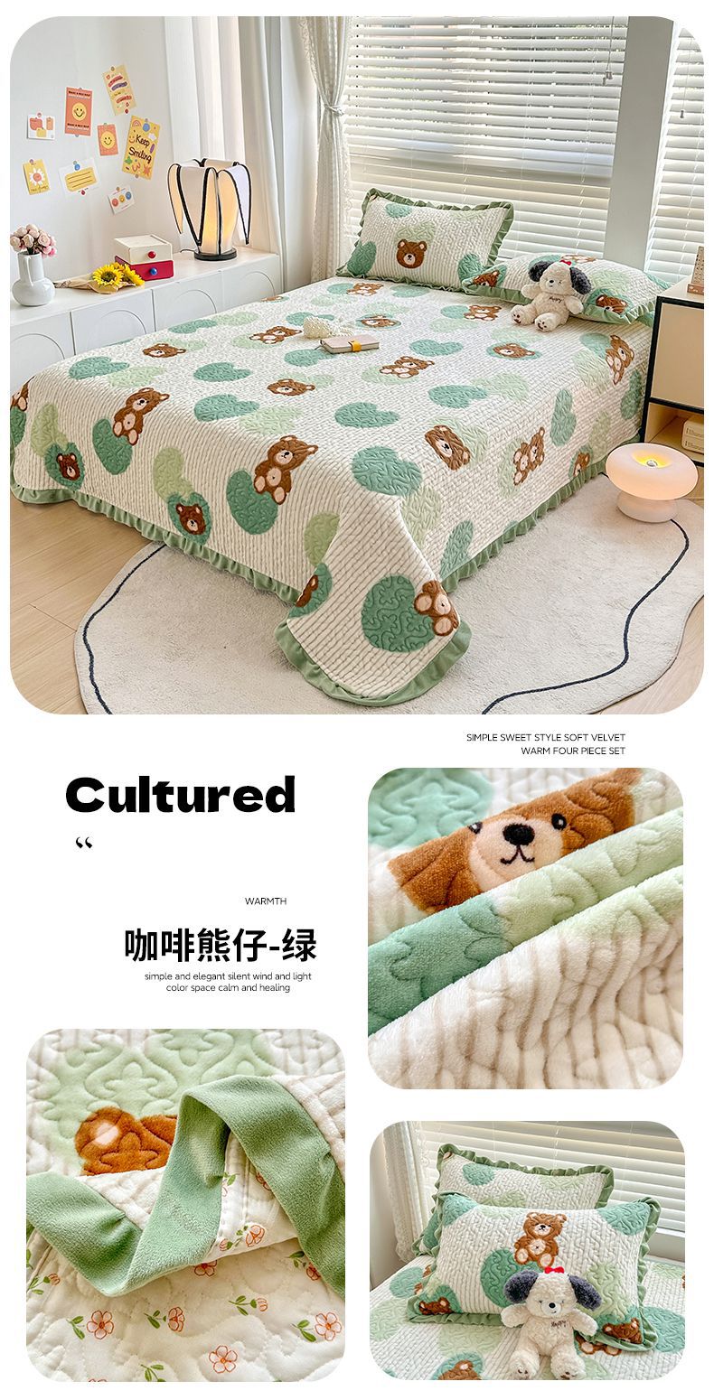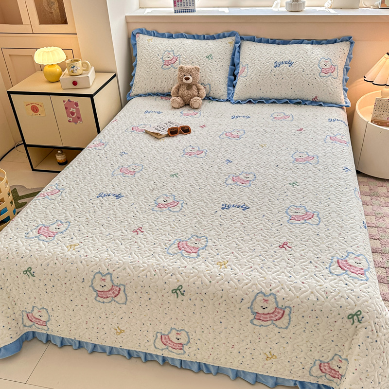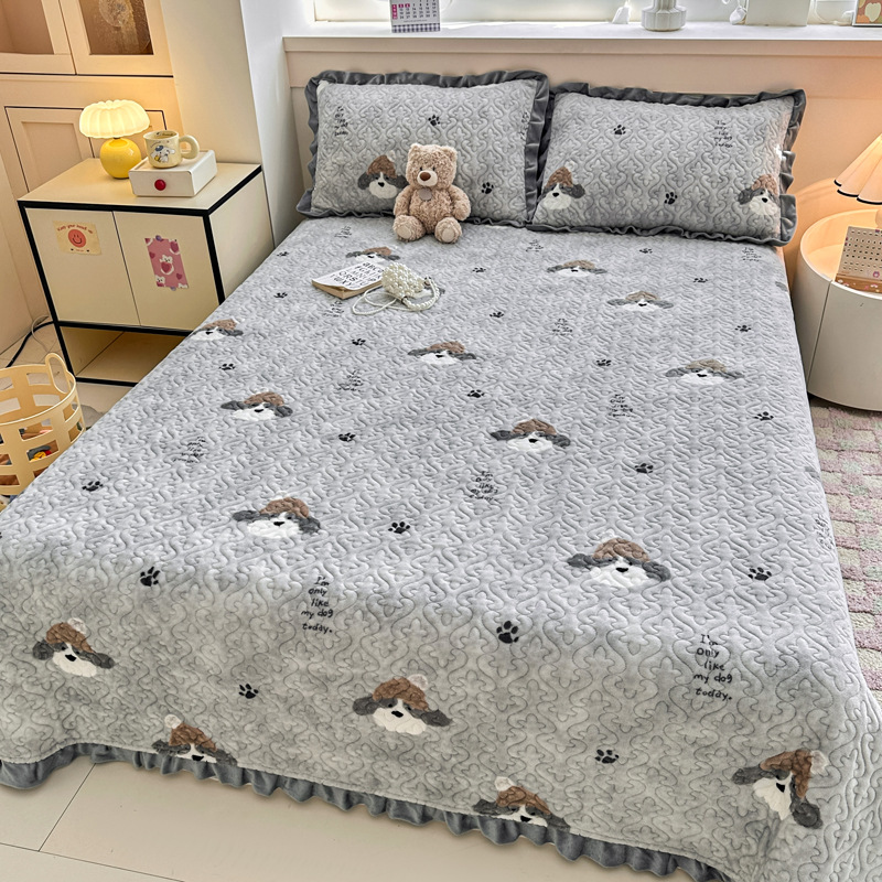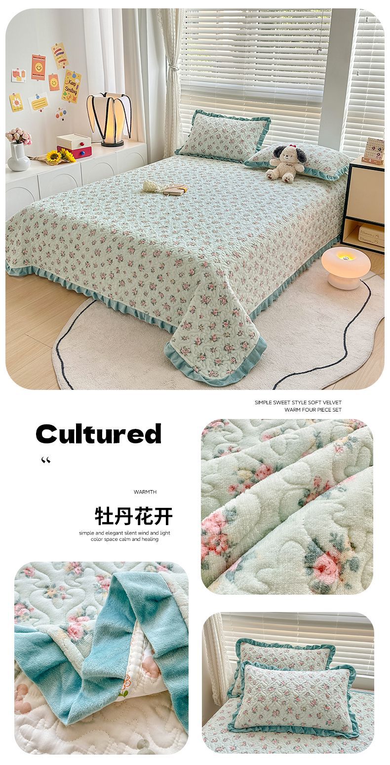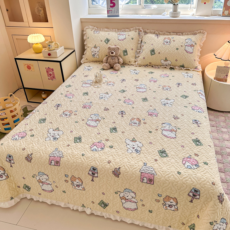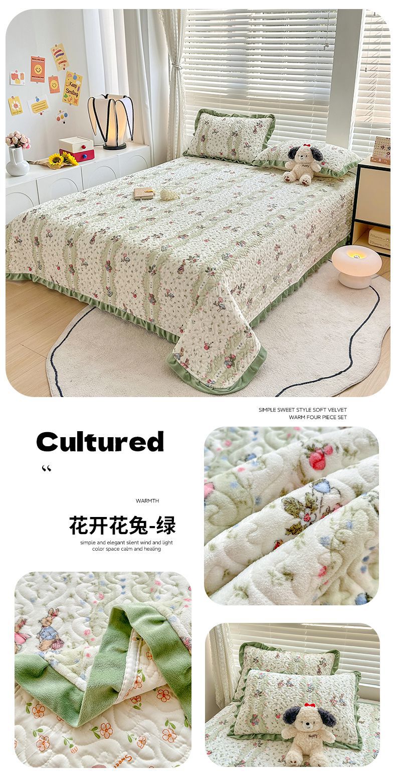 2025년 신제품 밀크벨벳 누빔 침대 커버 레이스 스타일 두꺼운 침대 커버 세트 기계 세탁 가능 다다미 매트 라이브 방송 인기 상품스토어 가기