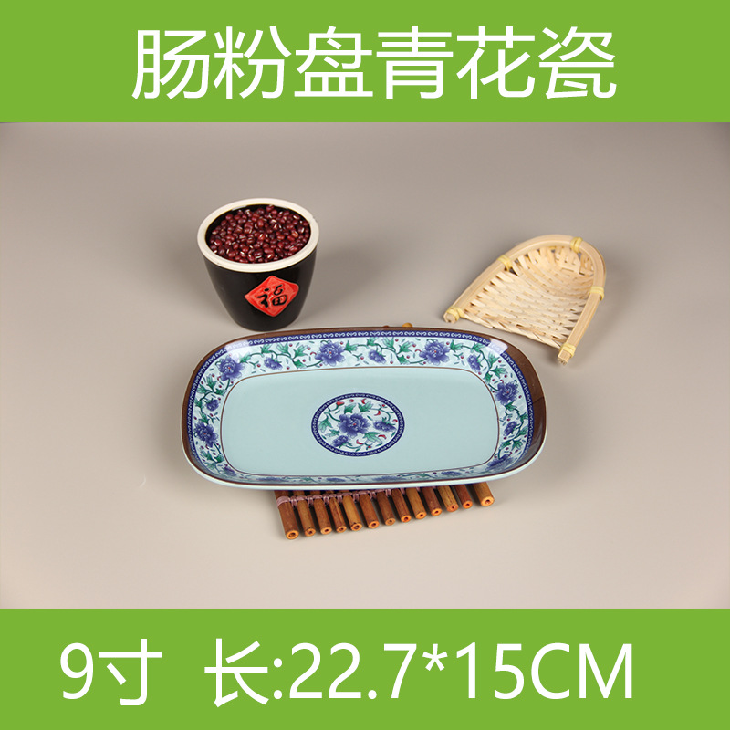 • 소시지 파우더 플레이트 파란색과 흰색 도자기 9 인치