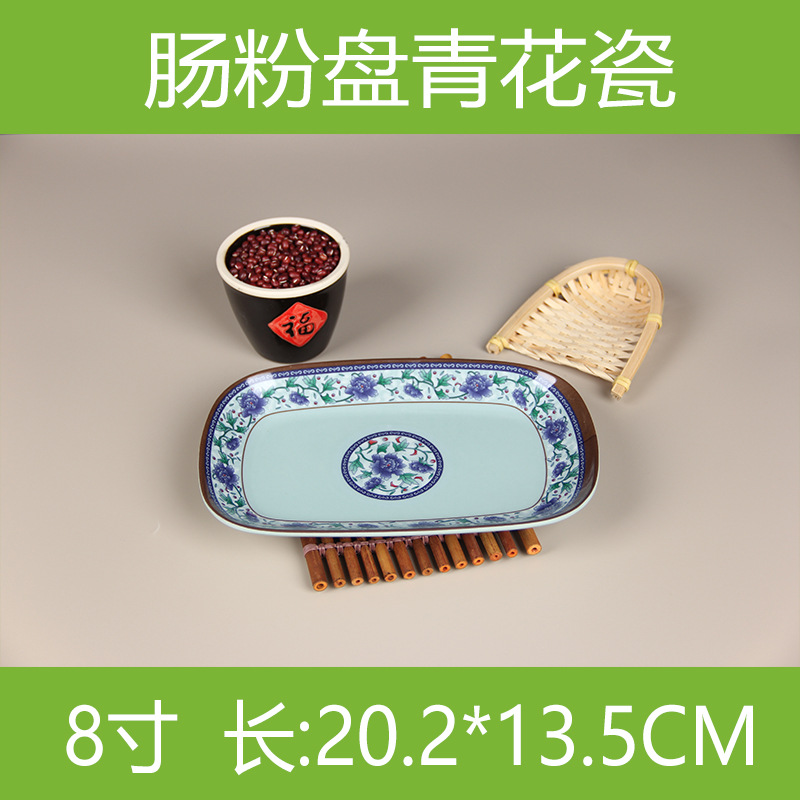 • 소시지 파우더 플레이트 파란색과 흰색 도자기 8 인치