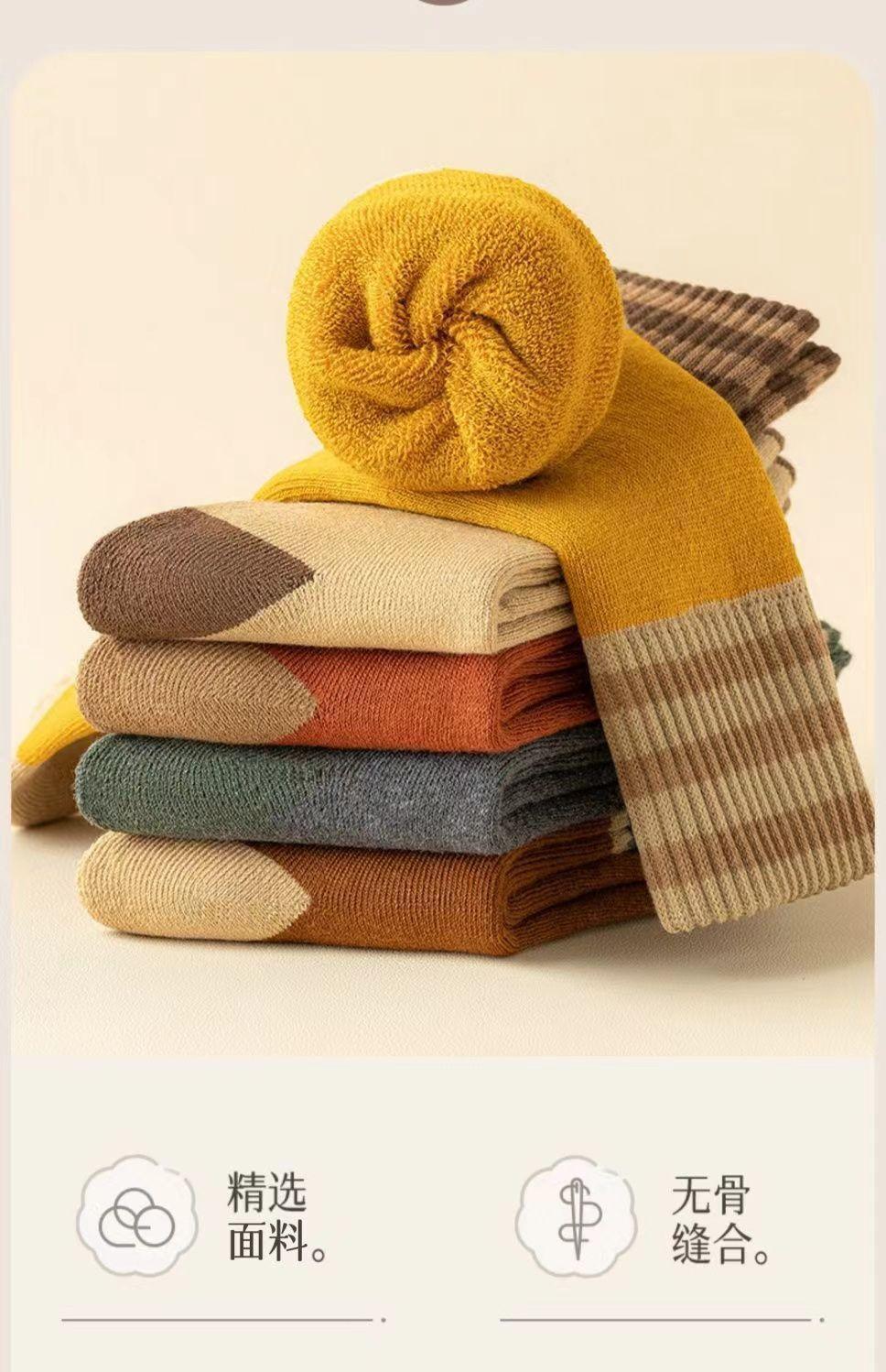 벨벳 안감 두꺼운 보온 테리 양말 여성용 중목 양말 겨울용 메일라드 스트라이프 바닥용 수면용 남성용 플러시 양말스토어 가기