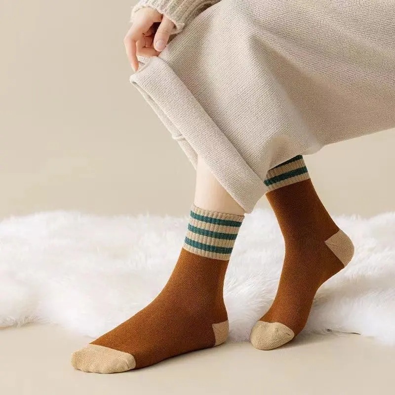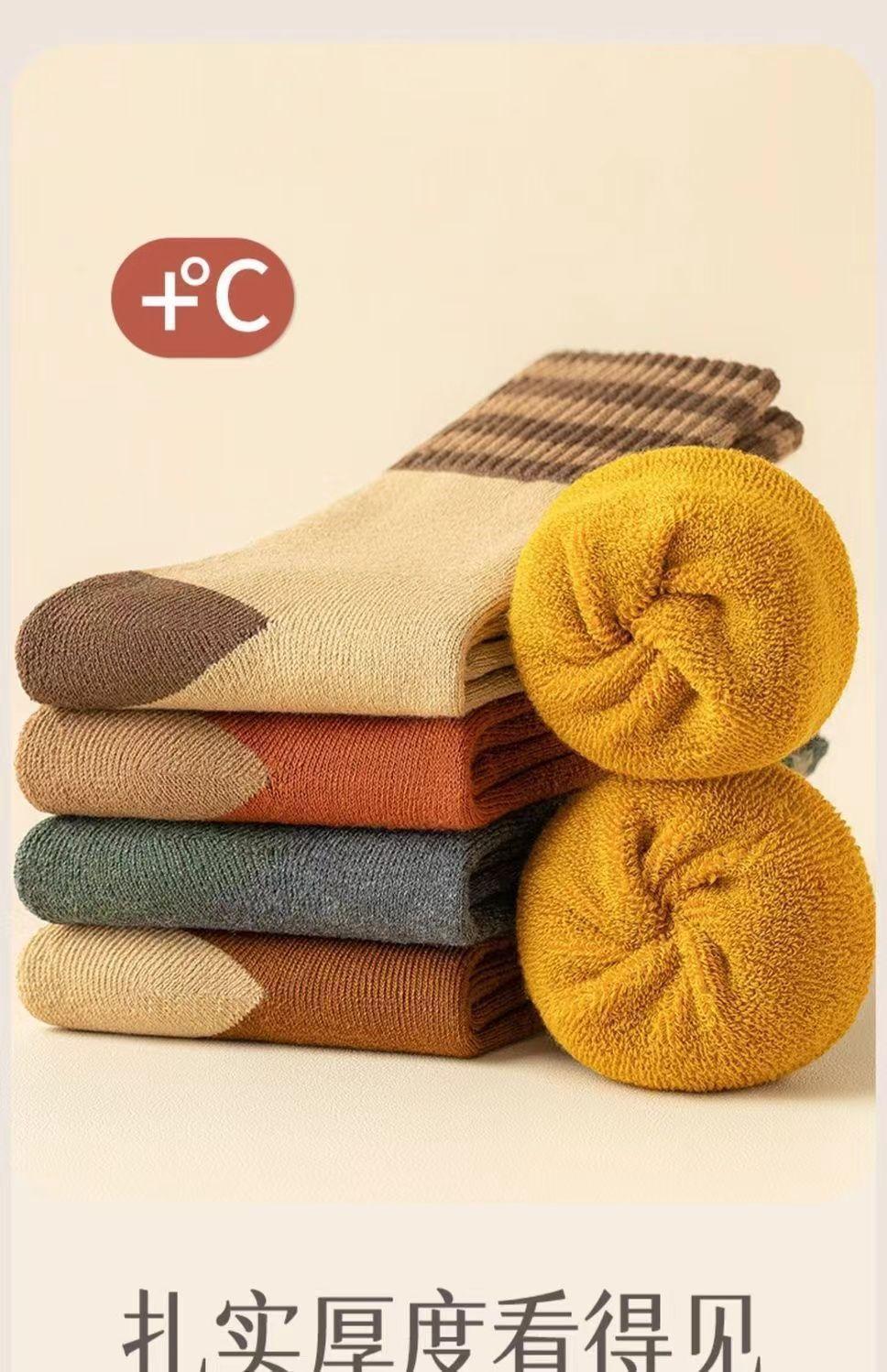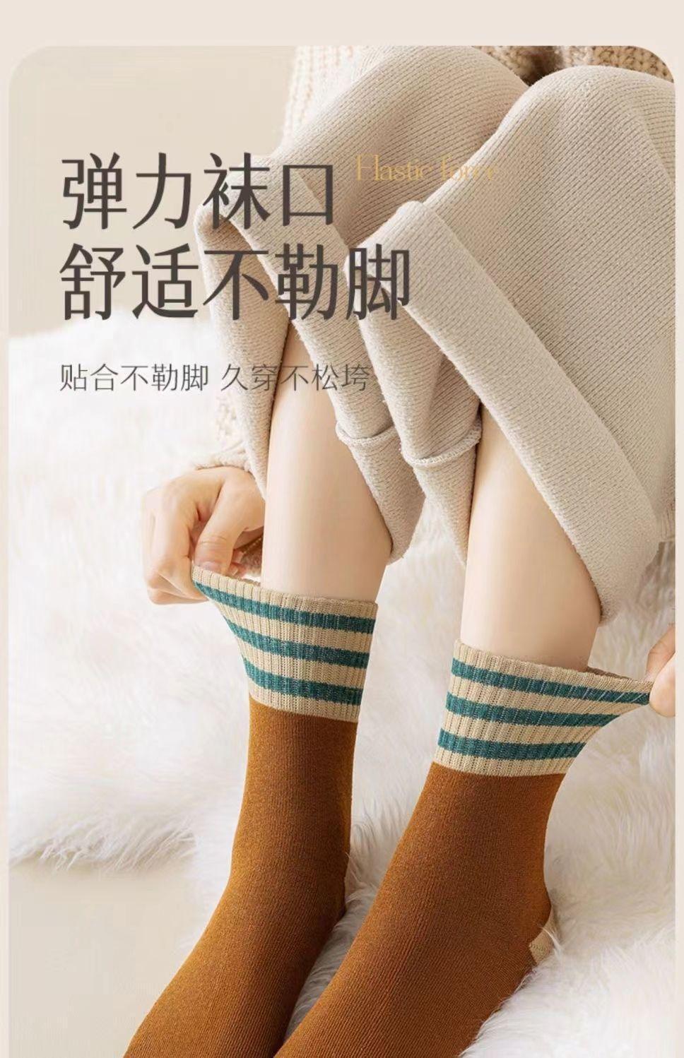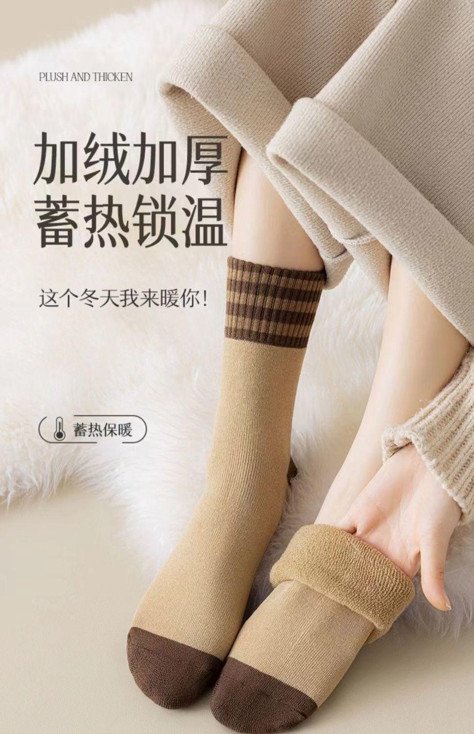 벨벳 안감 두꺼운 보온 테리 양말 여성용 중목 양말 겨울용 메일라드 스트라이프 바닥용 수면용 남성용 플러시 양말