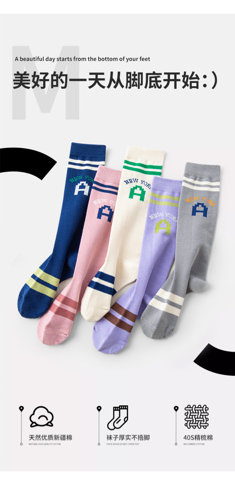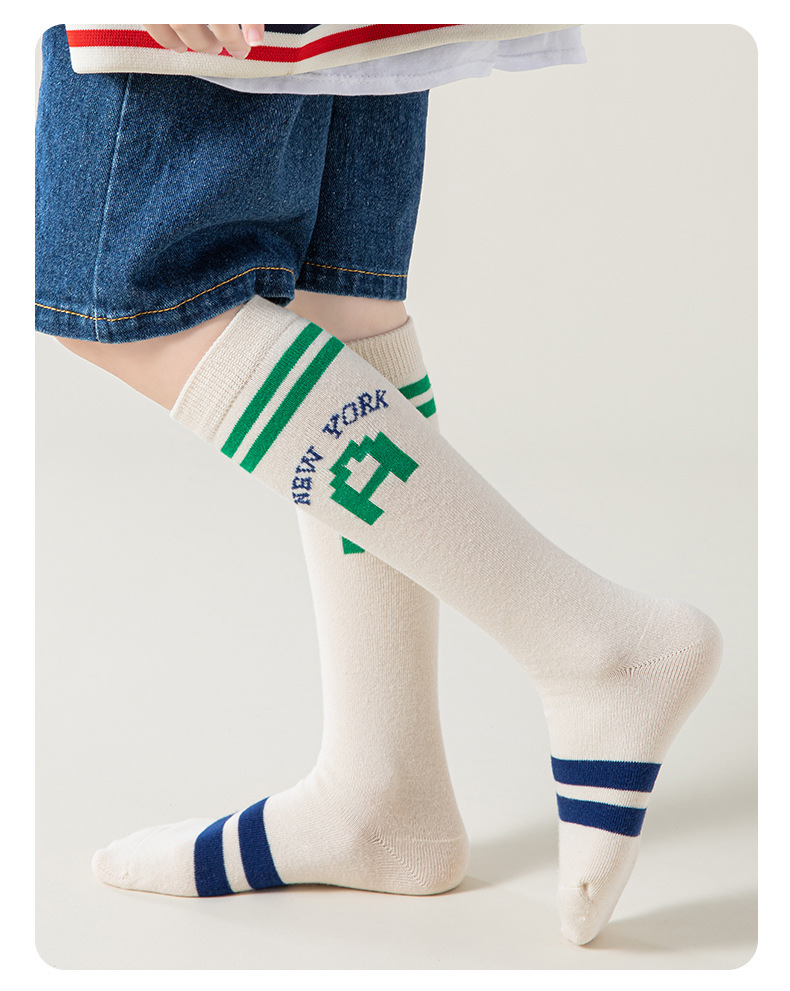 소년과 소녀를위한 어린이 양말 봄과 가을 순수 빗질면 중간 및 대형 어린이 긴 높은 배럴 새로운 대학 스타일 학생 커프 양말