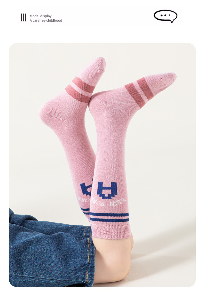 소년과 소녀를위한 어린이 양말 봄과 가을 순수 빗질면 중간 및 대형 어린이 긴 높은 배럴 새로운 대학 스타일 학생 커프 양말스토어 가기
