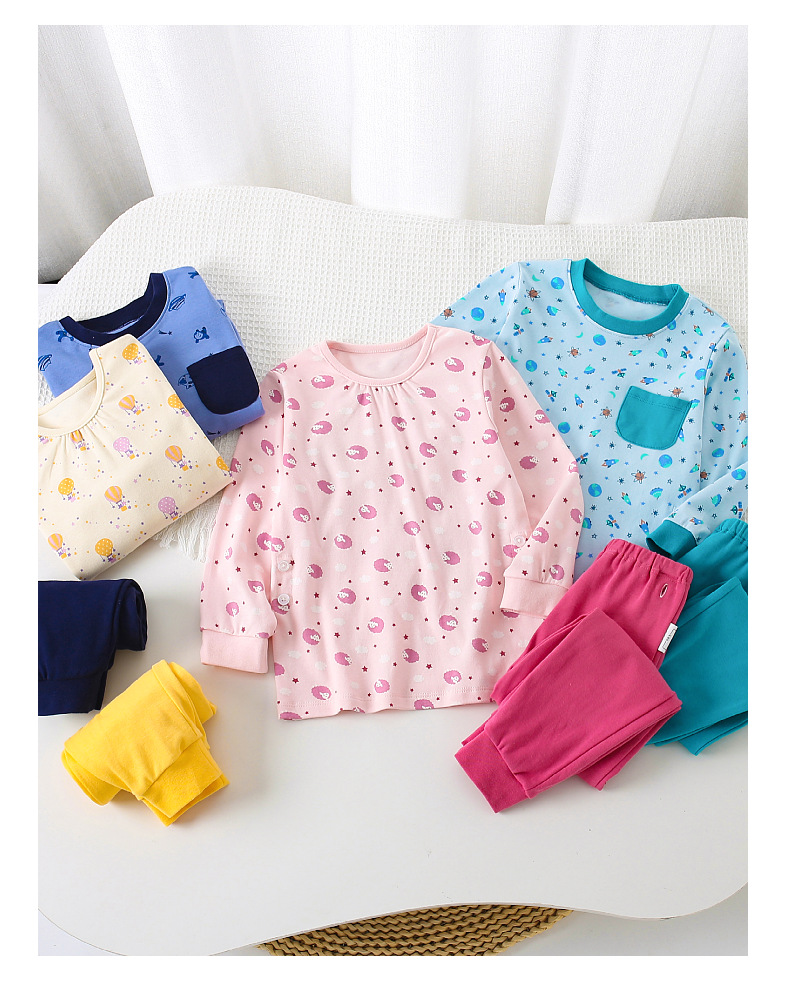 사회 웨스트 파인 하우스 소년과 소녀를위한 봄과 가을 어린이 세트 순면 가을 옷과 바지 세트 소년 가정 의류스토어 가기