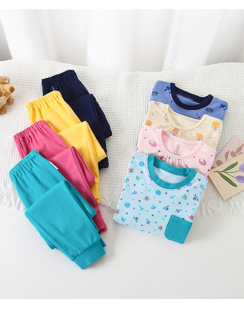 사회 웨스트 파인 하우스 소년과 소녀를위한 봄과 가을 어린이 세트 순면 가을 옷과 바지 세트 소년 가정 의류