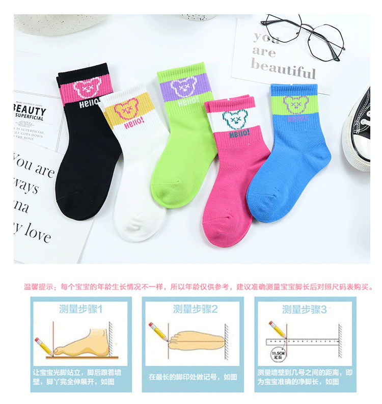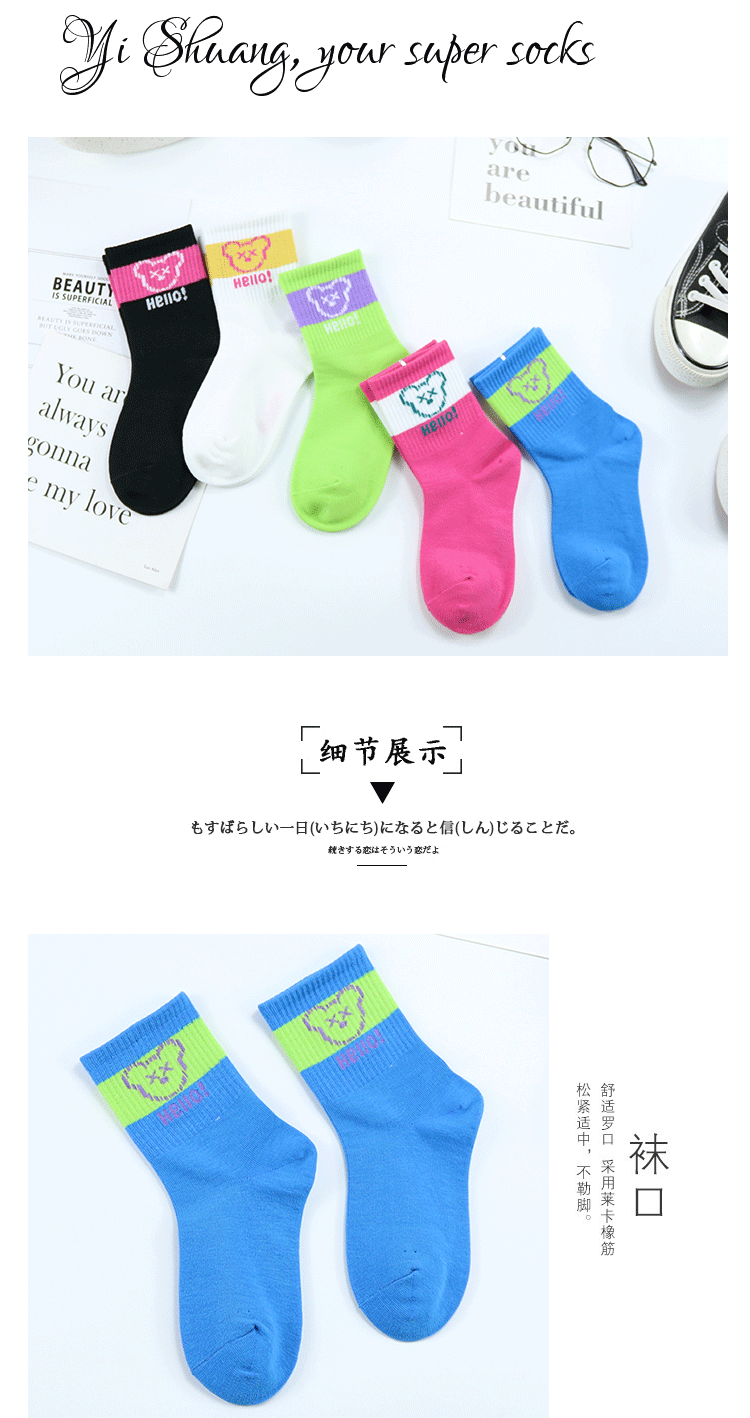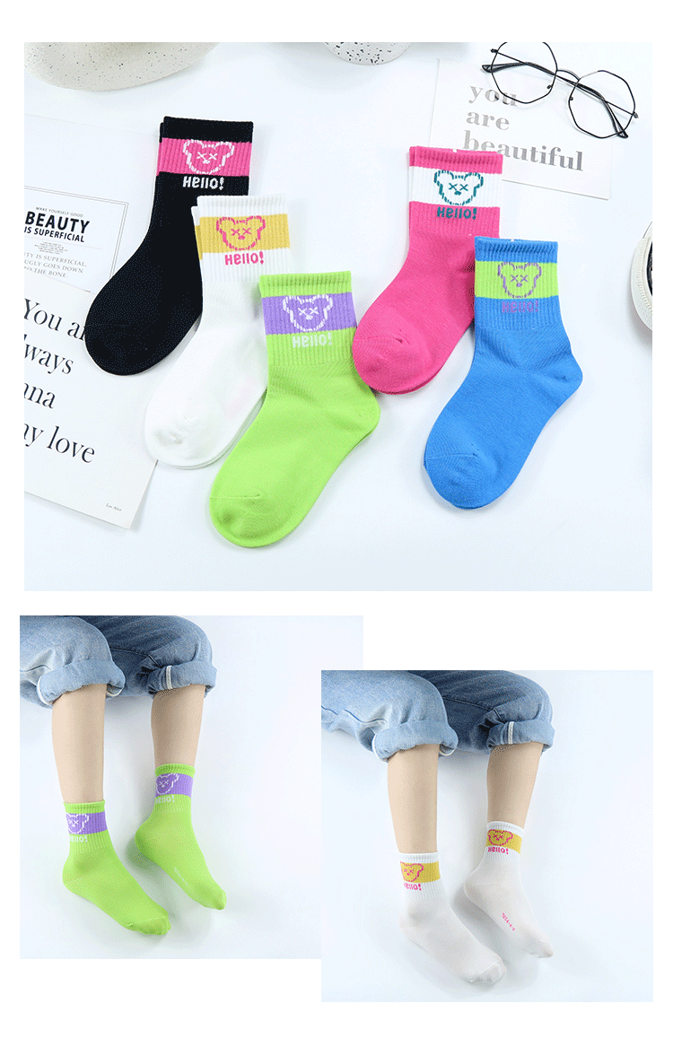 어린이 양말 가을과 겨울 새 만화 곰 양말 빗질면 소녀 스포츠 양말 뼈없는 어린이 양말스토어 가기