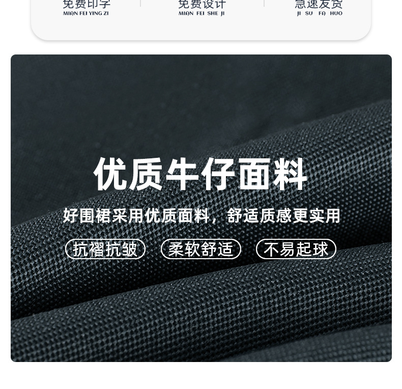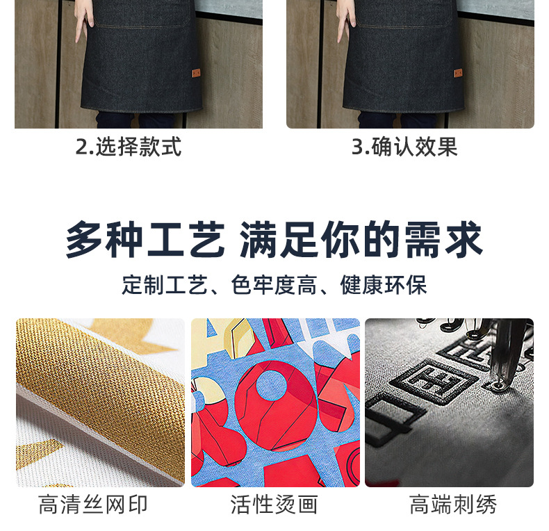 데님 앞치마 인쇄 로고 인쇄 핫 염료 베이킹 서양 레스토랑 커피 우유 차 가게 캔버스 방수 바지