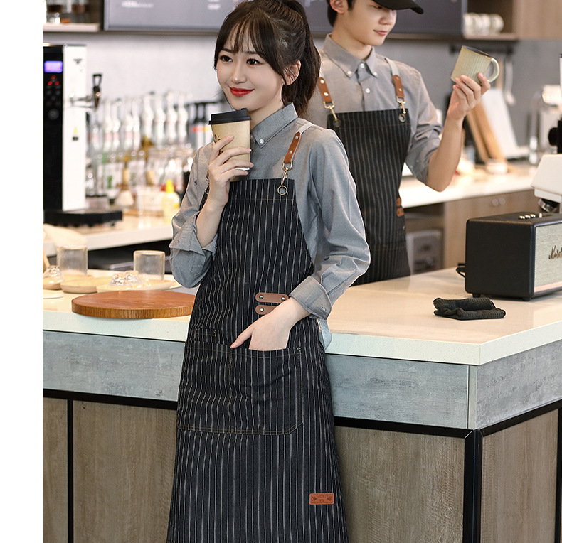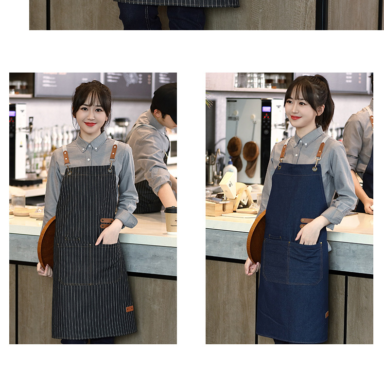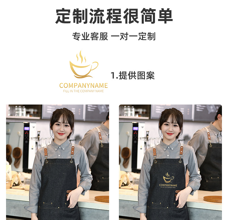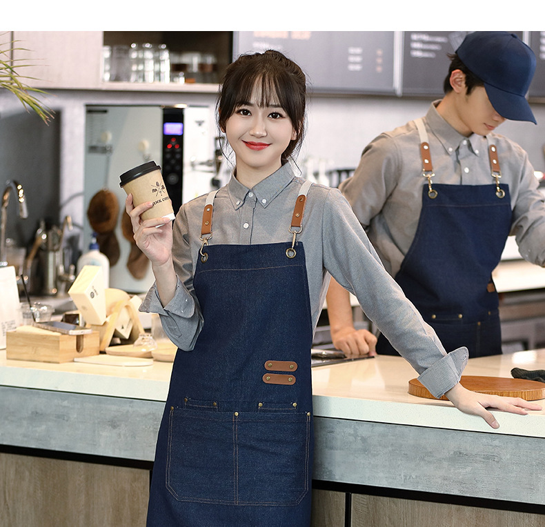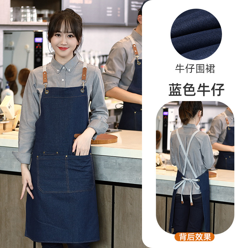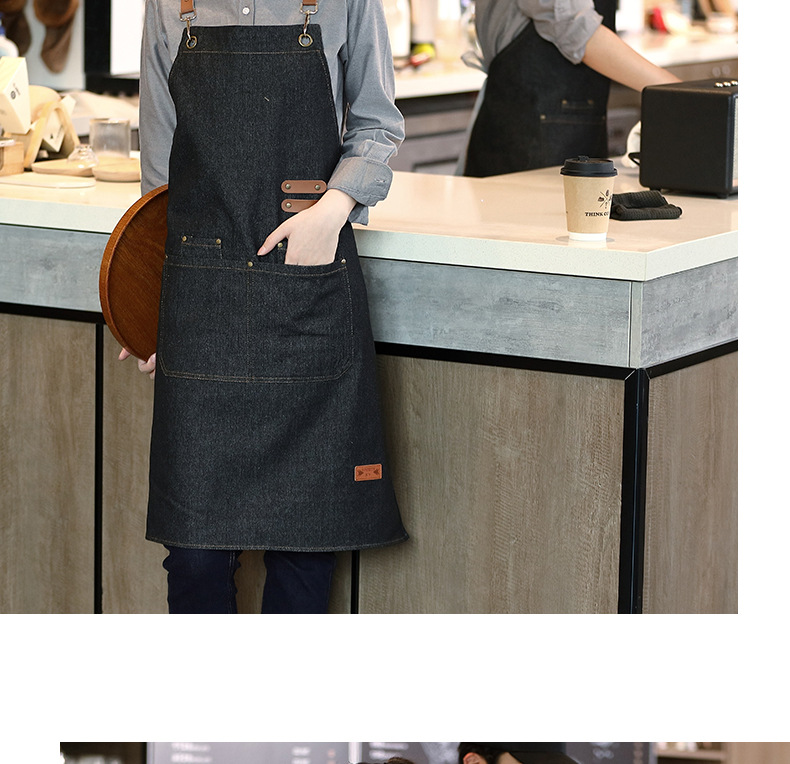 데님 앞치마 인쇄 로고 인쇄 핫 염료 베이킹 서양 레스토랑 커피 우유 차 가게 캔버스 방수 바지스토어 가기