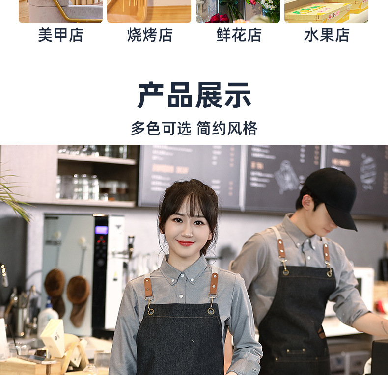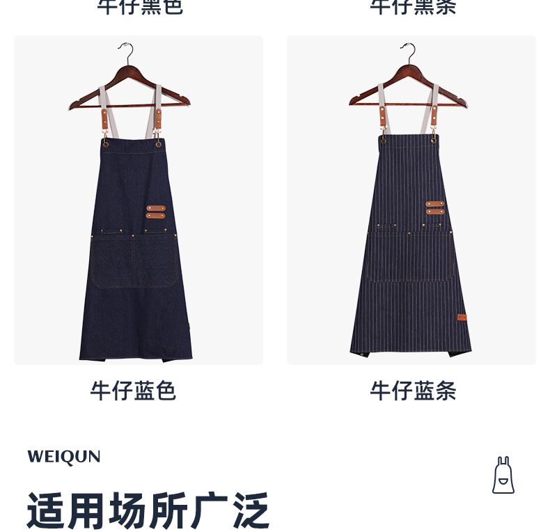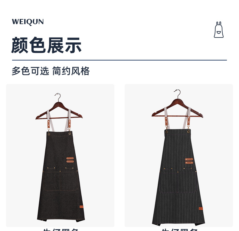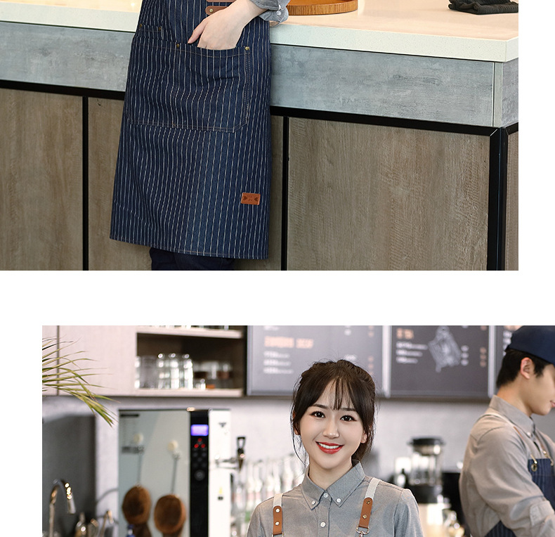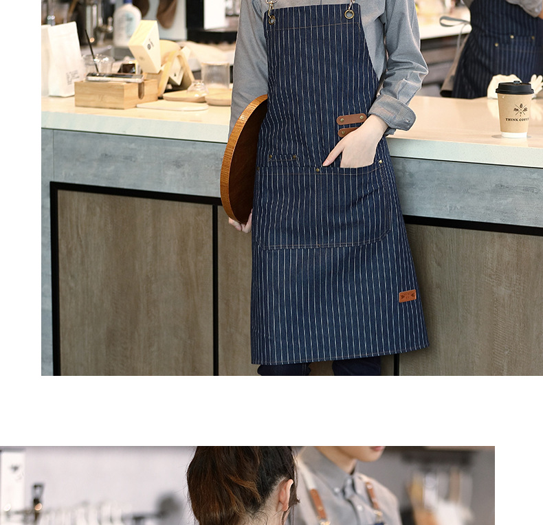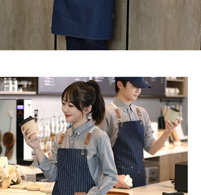 데님 앞치마 인쇄 로고 인쇄 핫 염료 베이킹 서양 레스토랑 커피 우유 차 가게 캔버스 방수 바지스토어 가기