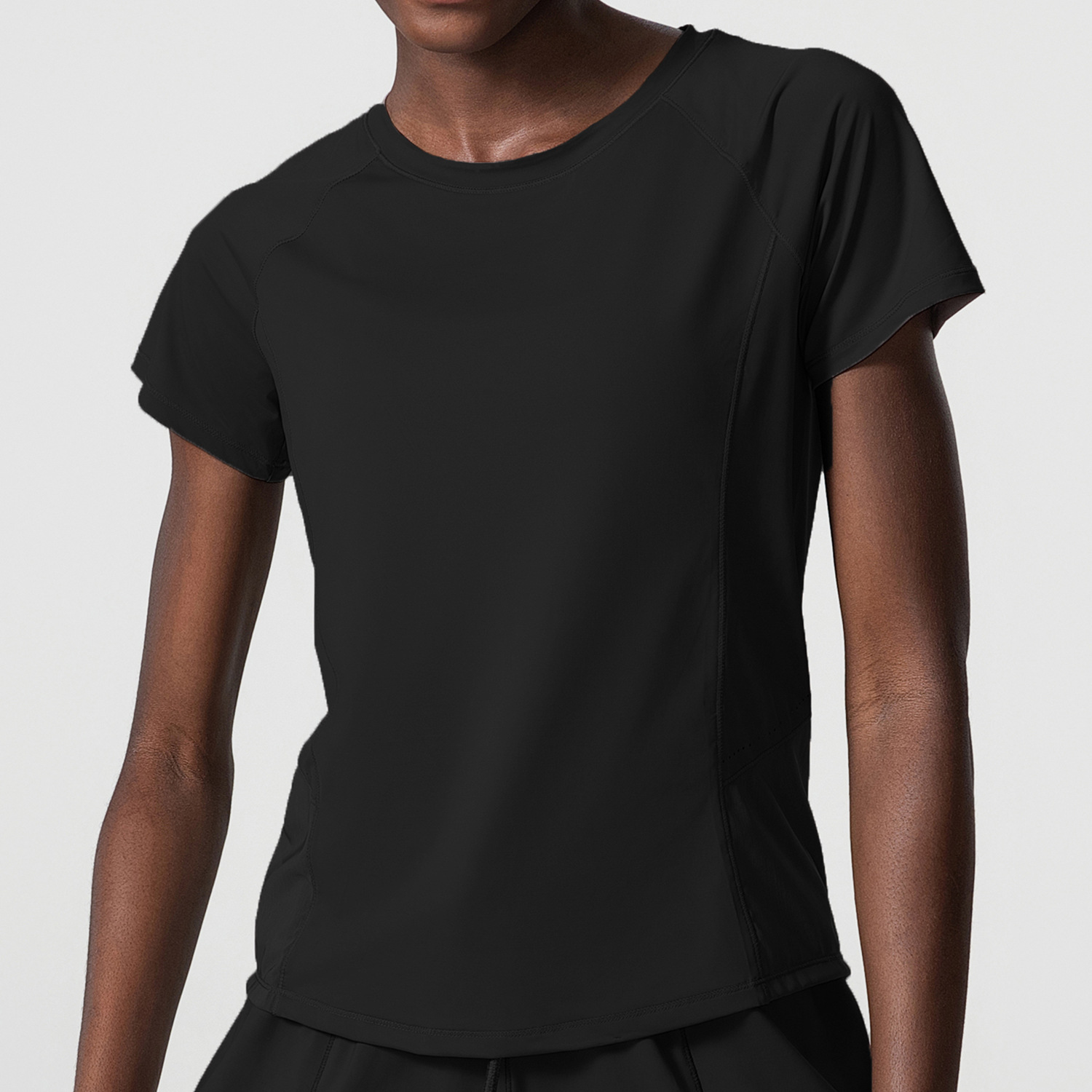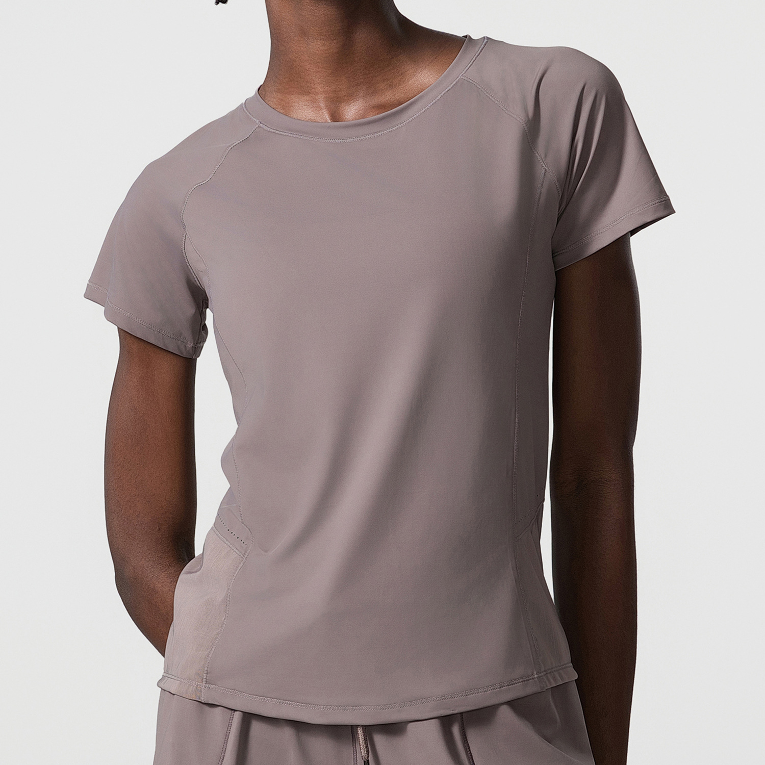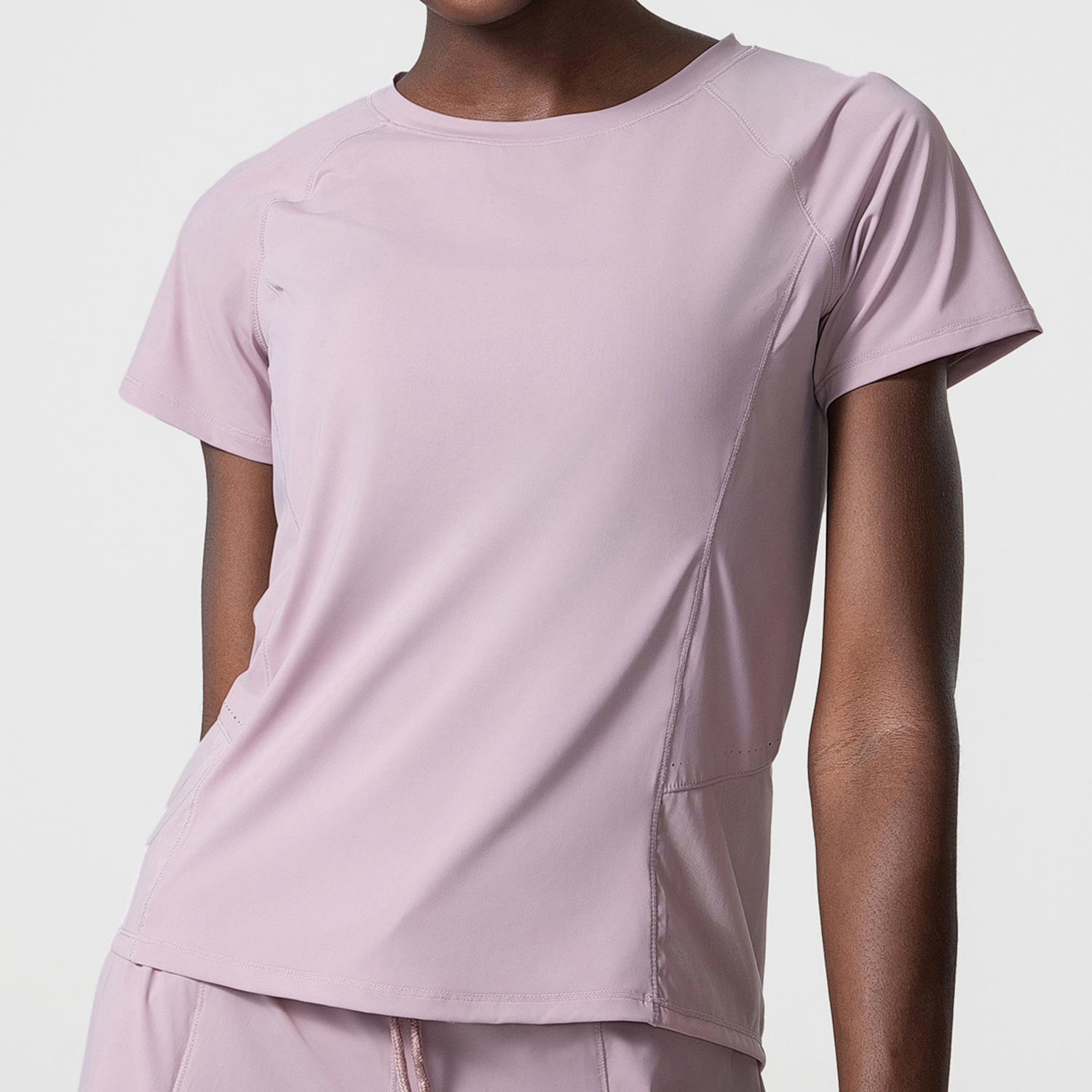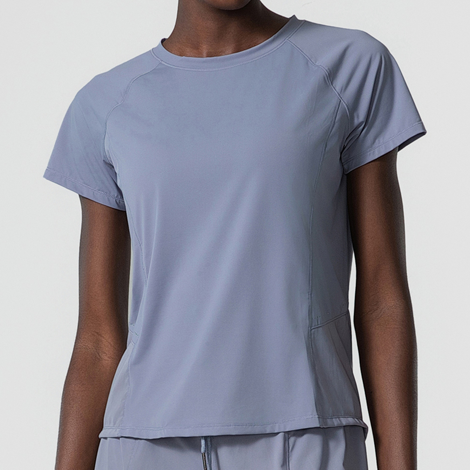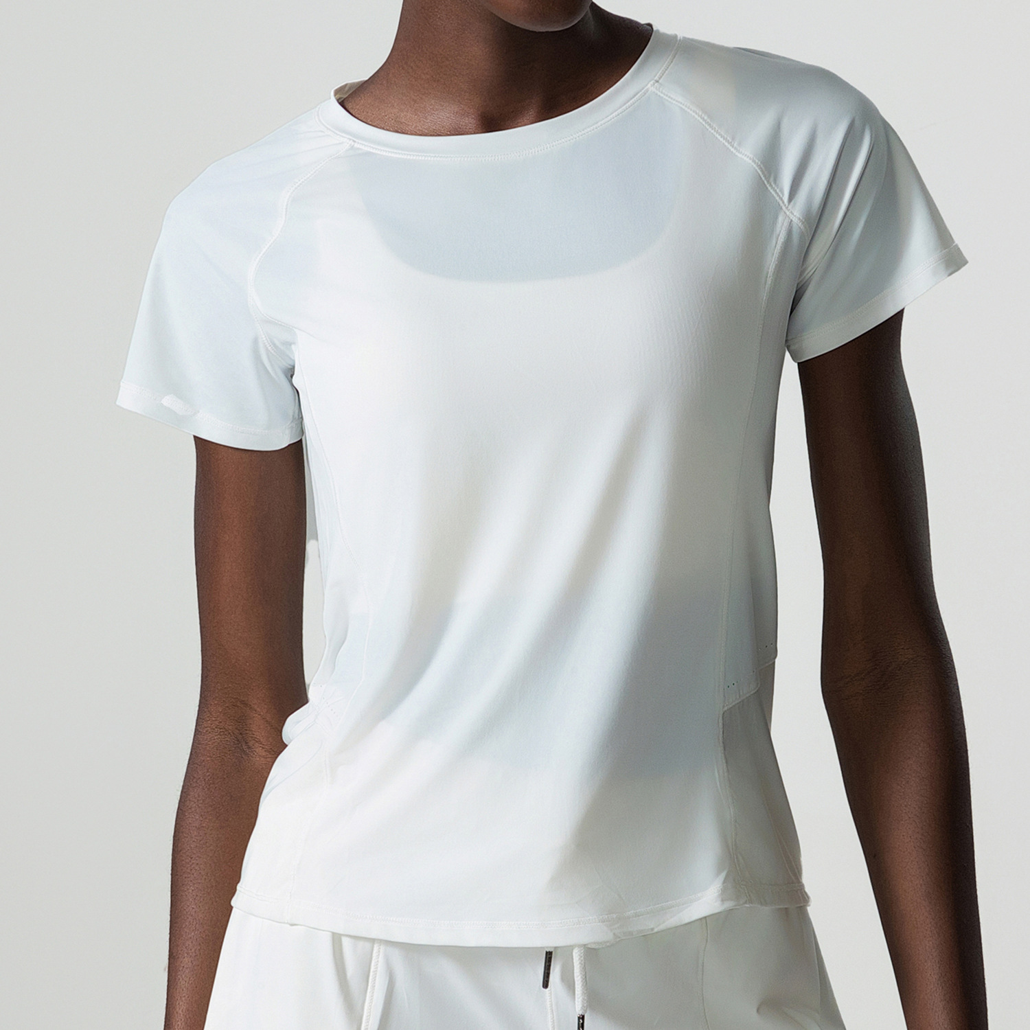 크로스 보더 아이스 가죽 조각 구멍 아름다운 등 스포츠 탑 여성용 느슨한 요가 피트니스 의류 반팔 속건 티셔츠