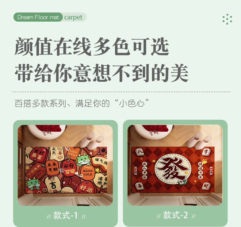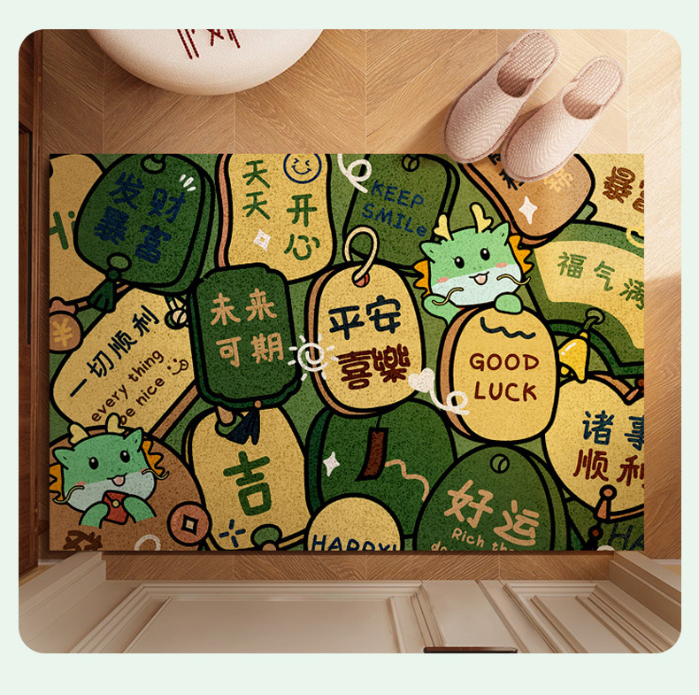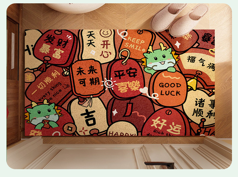 만화 럭키 실크 링 바닥 매트를자를 수 있습니다 PVC 먼지 방지 내마모성 먼지 제거 발 매트 가정용 미끄럼 방지 바닥 매트스토어 가기