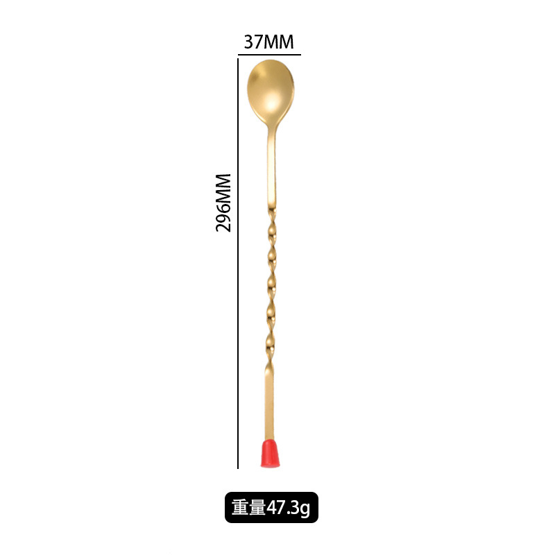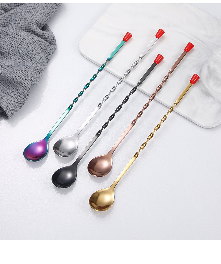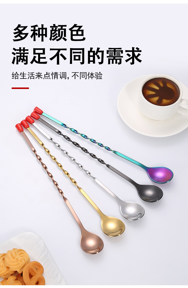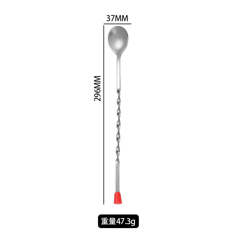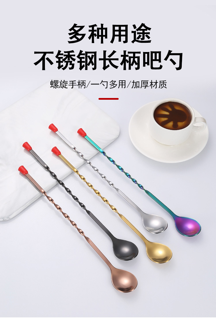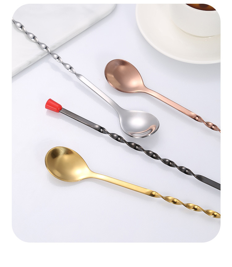 크로스 보더 스테인레스 스틸 트위스트 바 스푼 재고 긴 손잡이 믹싱 스푼 커피 스푼 창조적 인 바 용품 도매