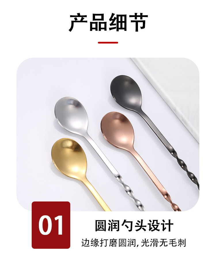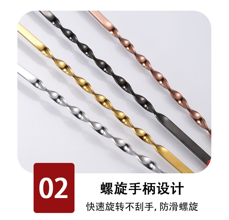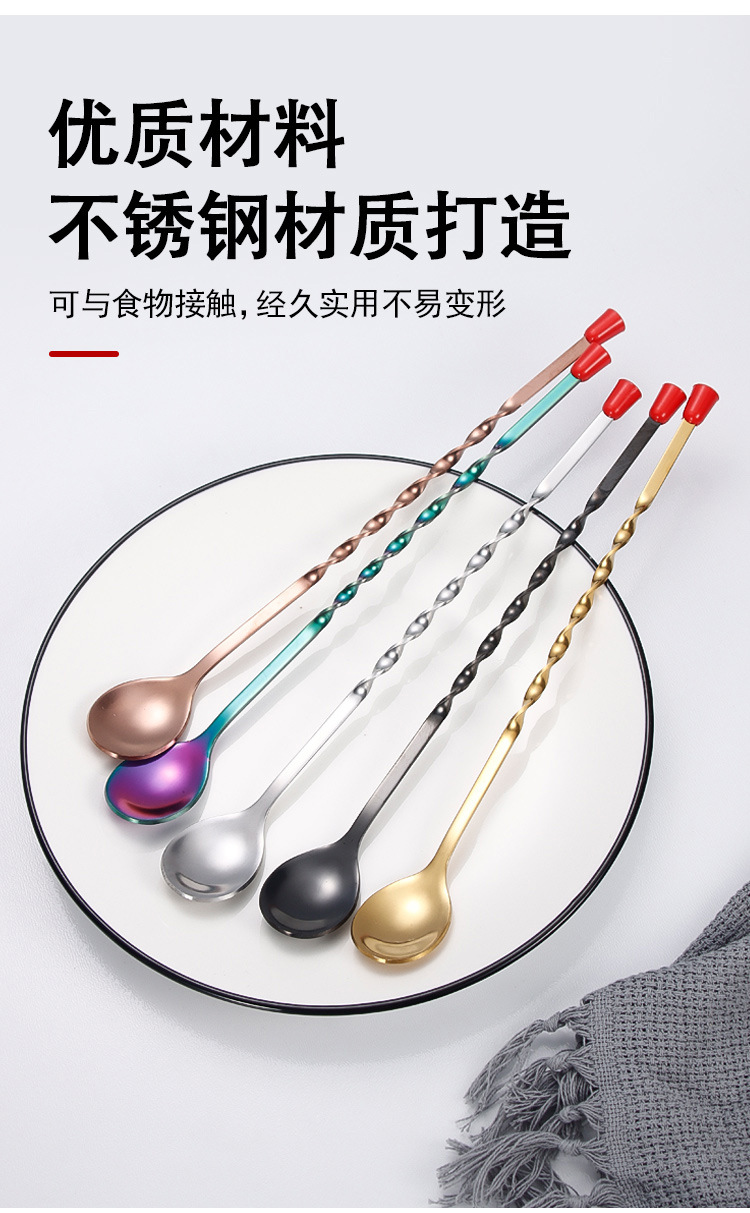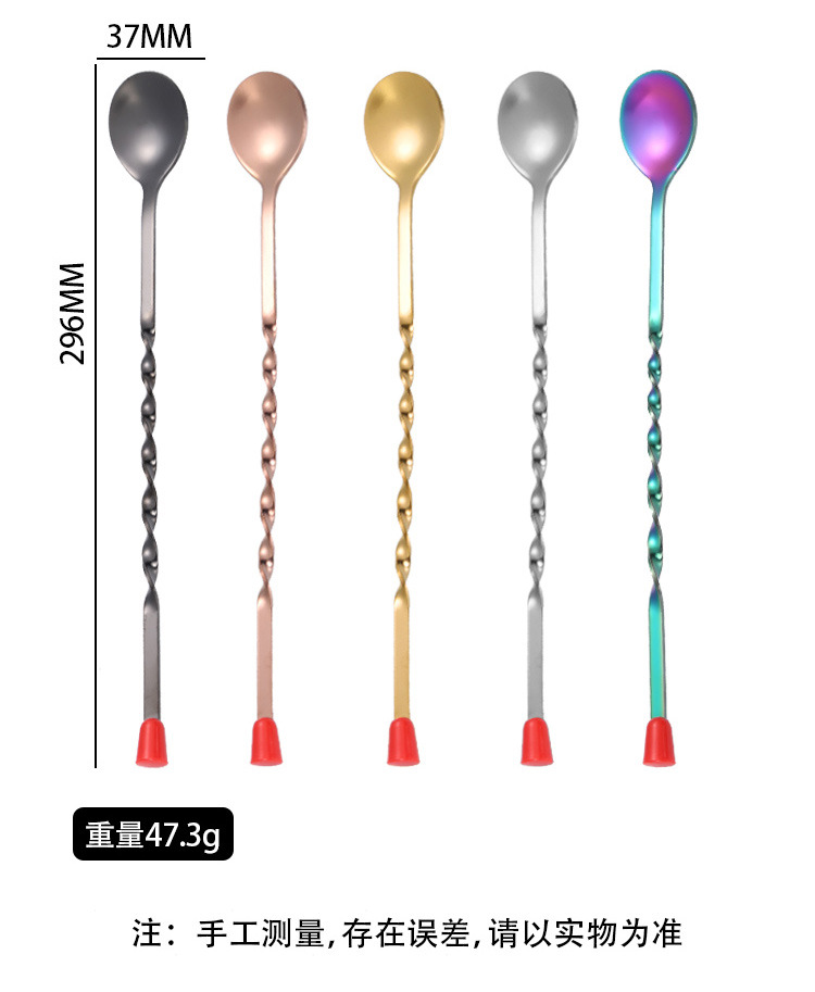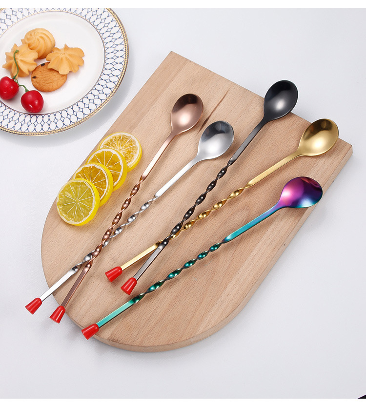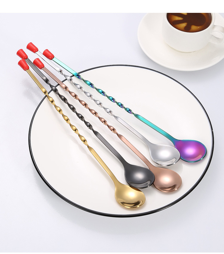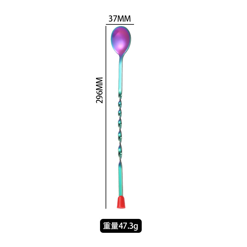 크로스 보더 스테인레스 스틸 트위스트 바 스푼 재고 긴 손잡이 믹싱 스푼 커피 스푼 창조적 인 바 용품 도매