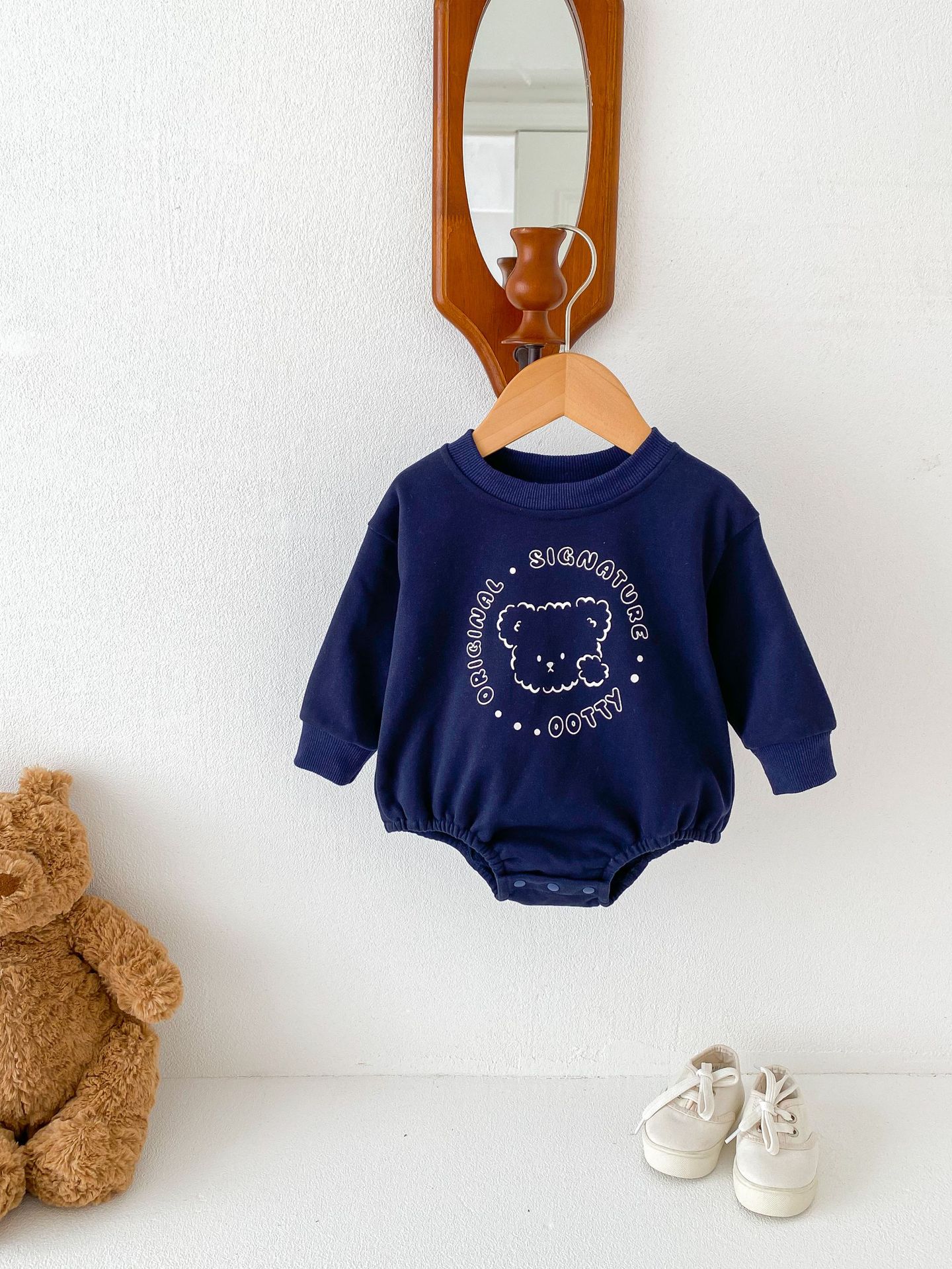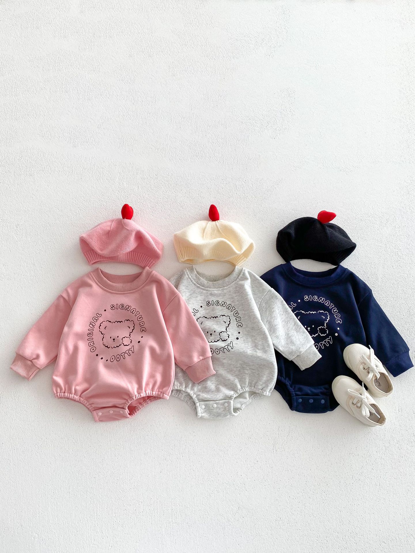 23 가을 새로운 한국 아기 옷 in 곰 인쇄 어린이 점프 슈트 아기 긴 소매 가방 방귀 옷