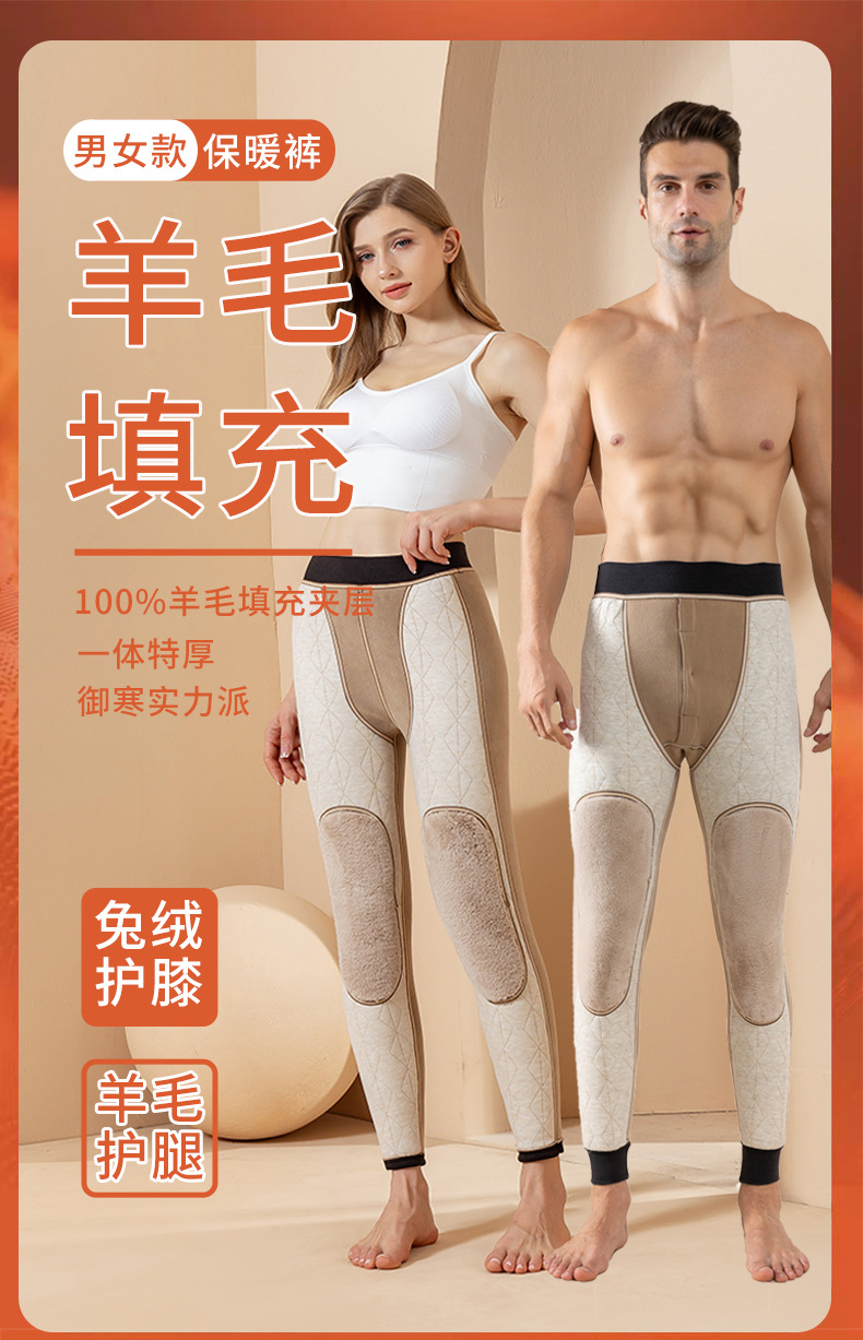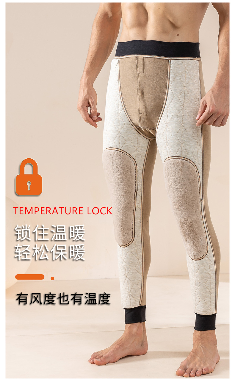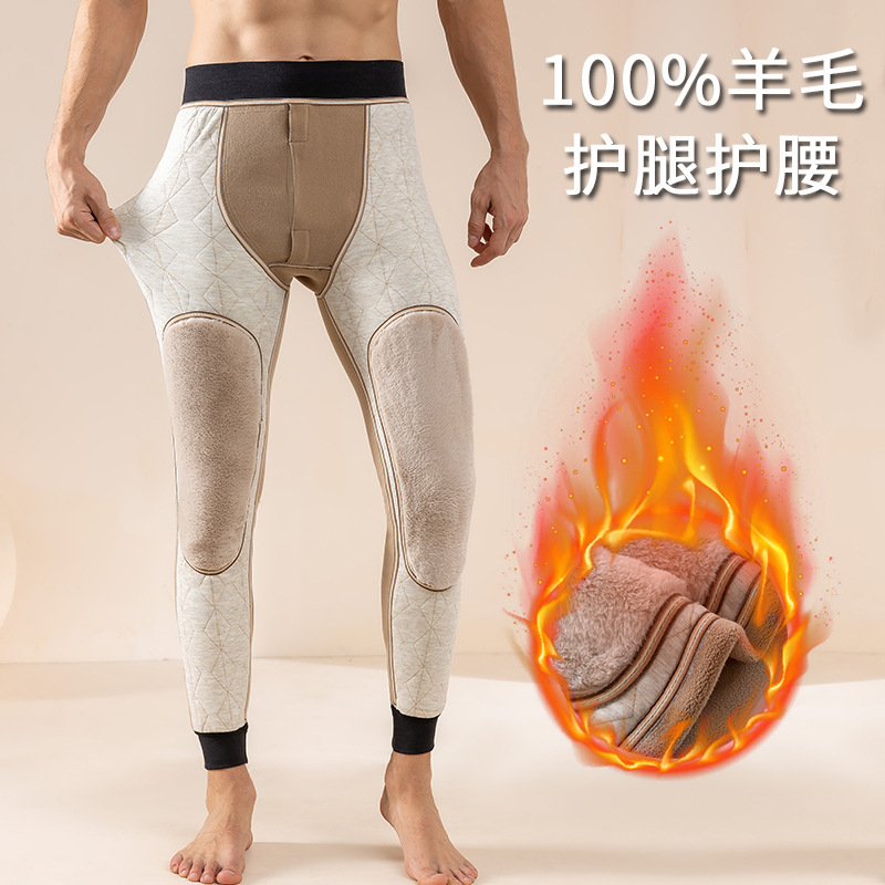 라이브 방송 폭발 울 남자의 따뜻한 바지 기모 두꺼운 겨울 하이 웨이스트 보호 무릎 바지 속옷 면 바지 우아한스토어 가기