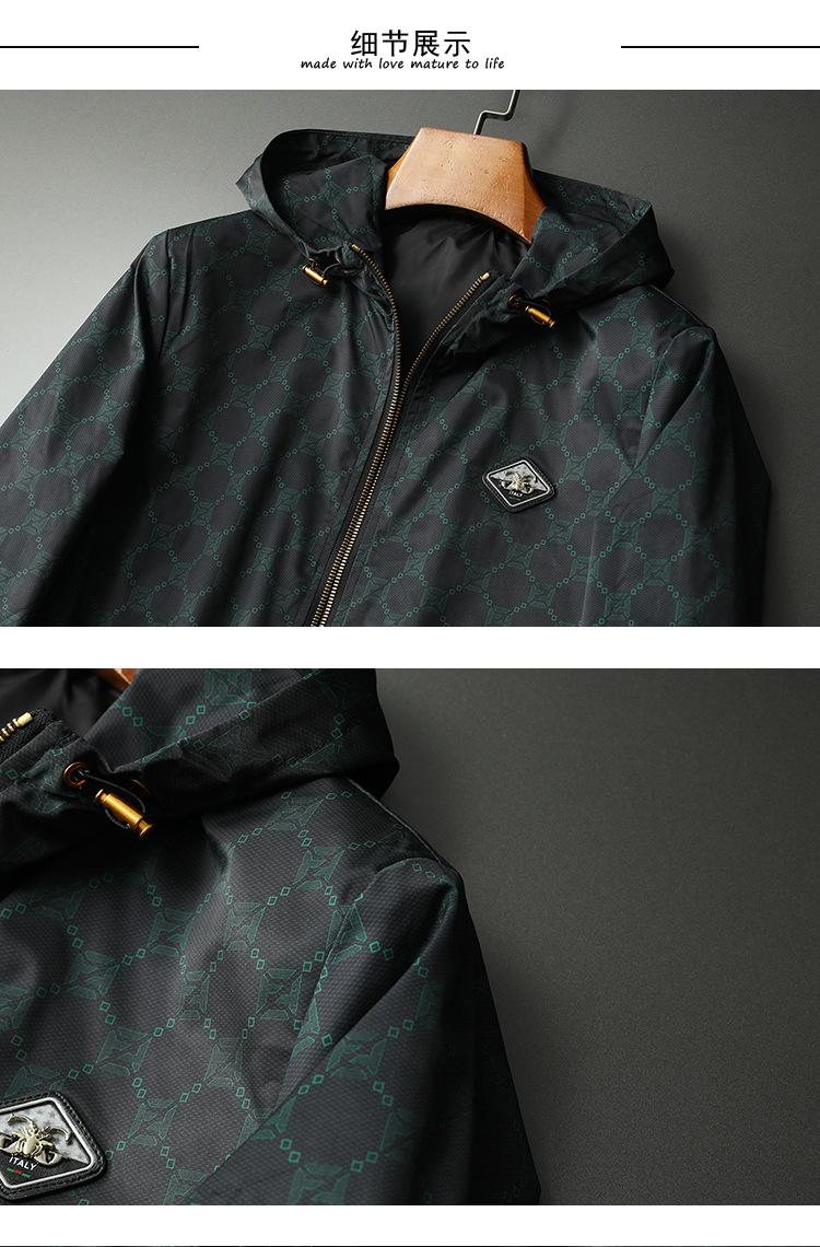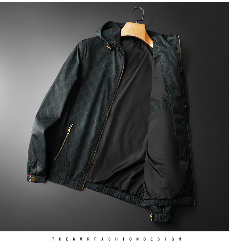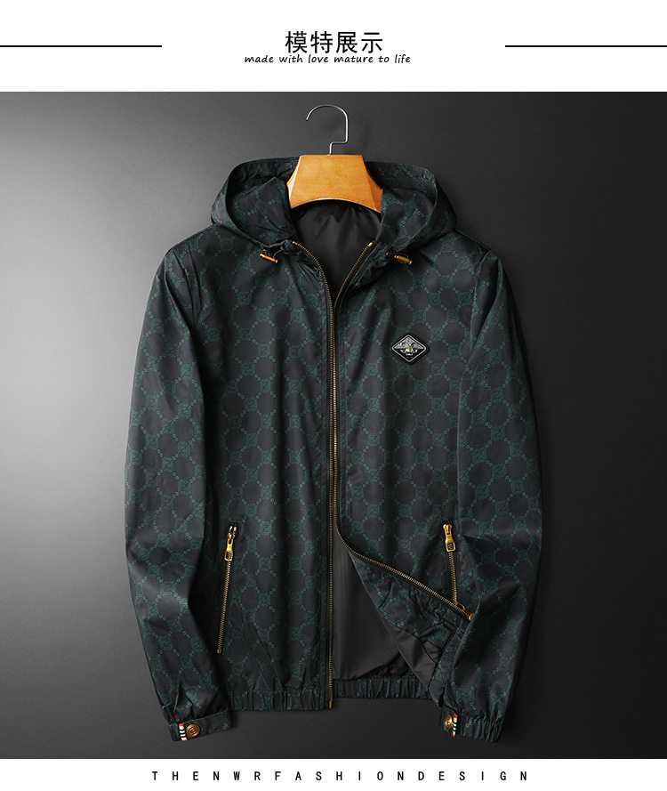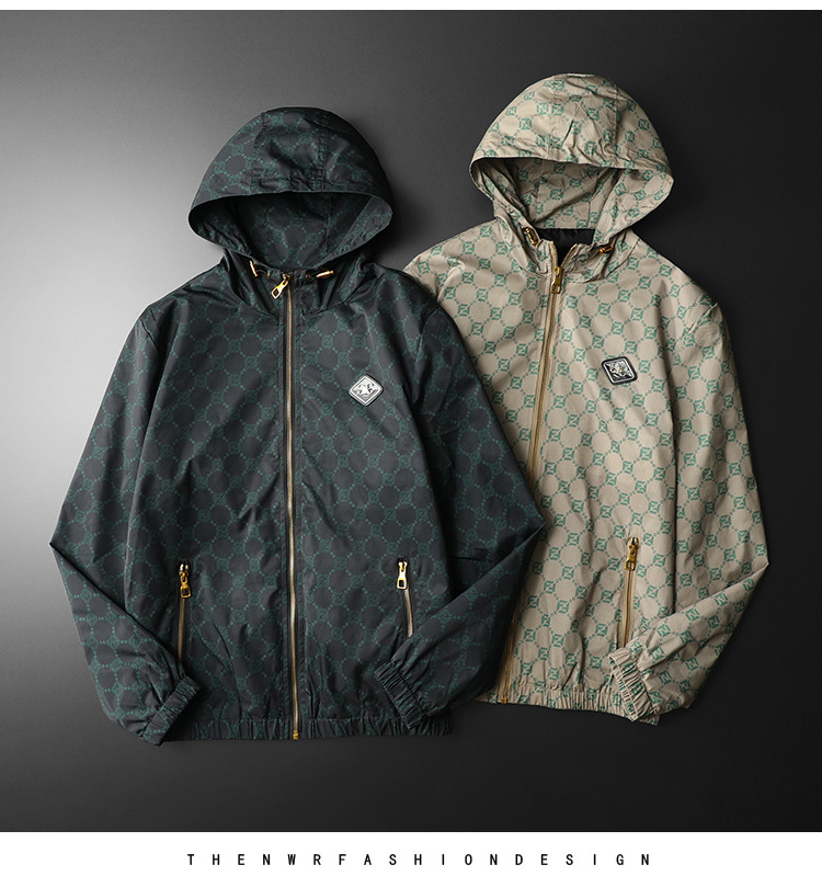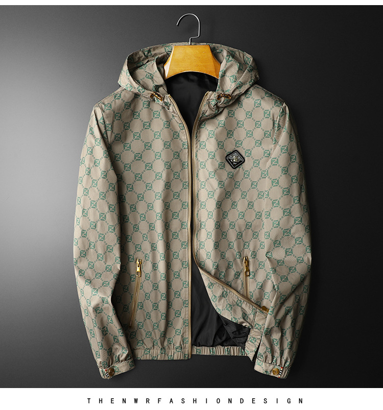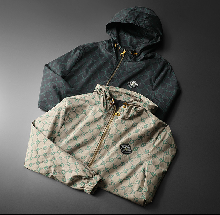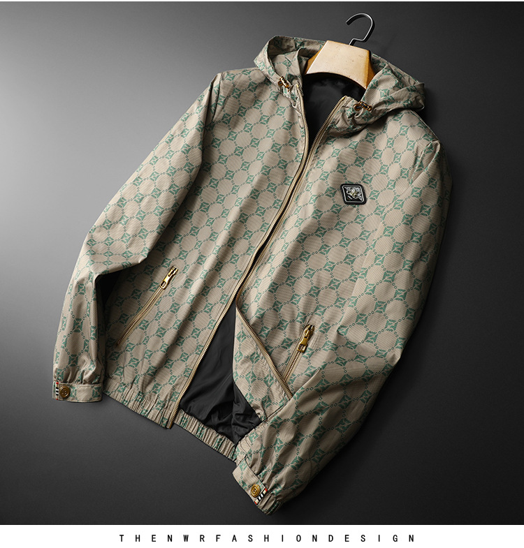 유럽 스타일 트렌디 프린트 재킷 남성 가을 아우터 한국 스타일 트렌디 멋진 후드 재킷