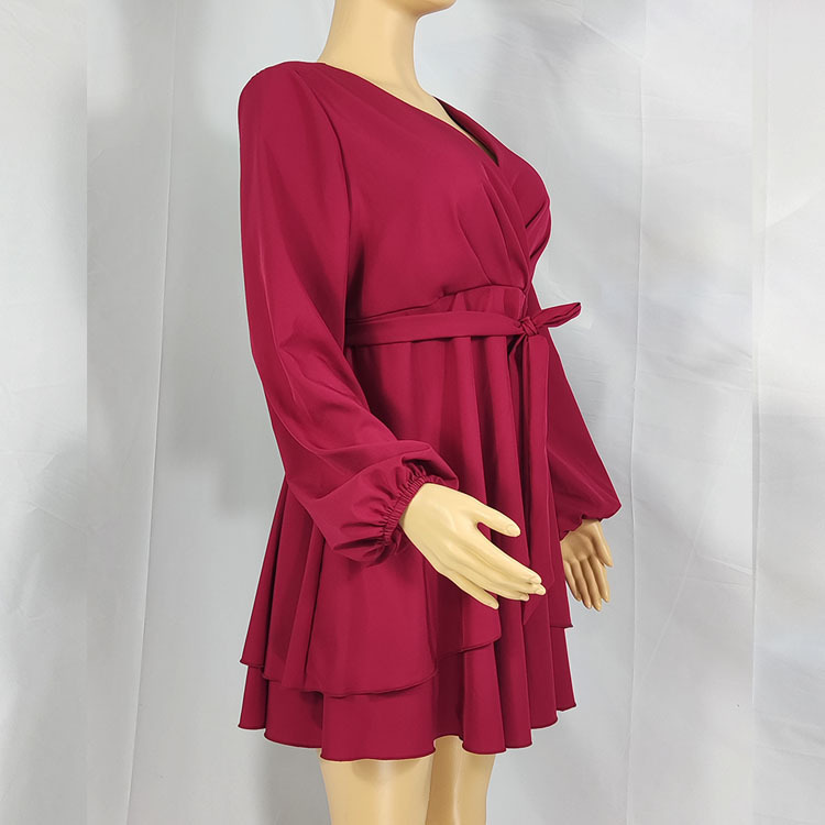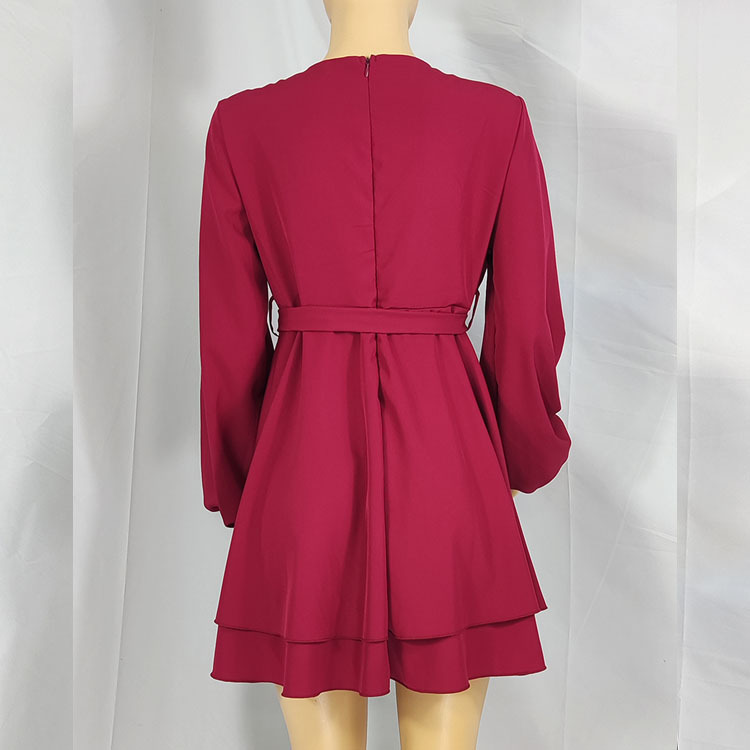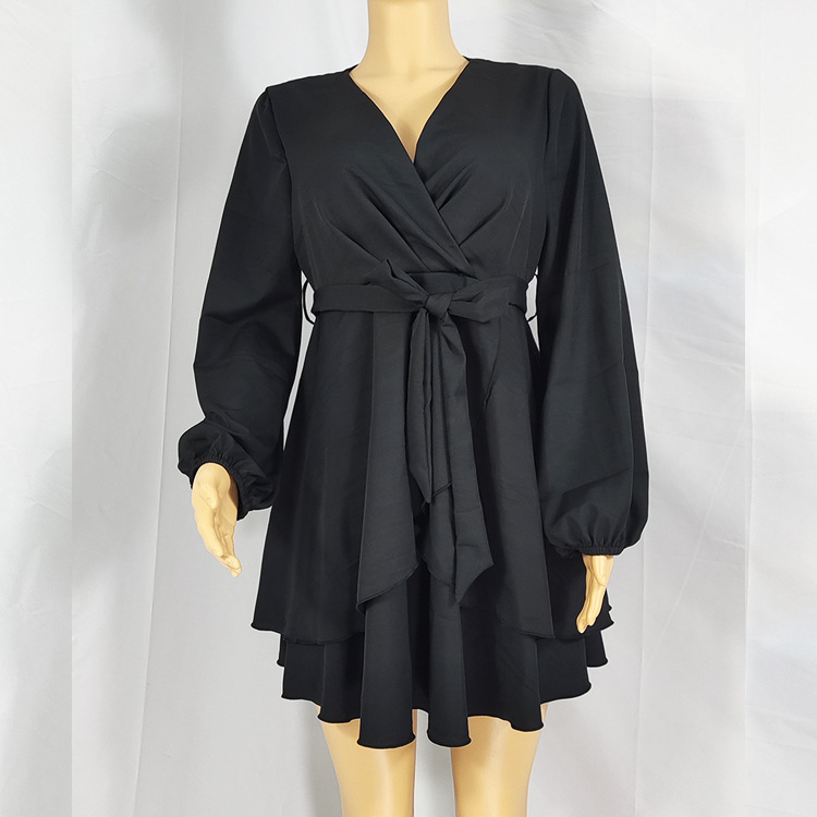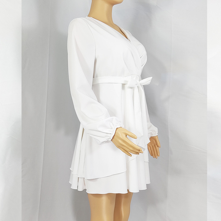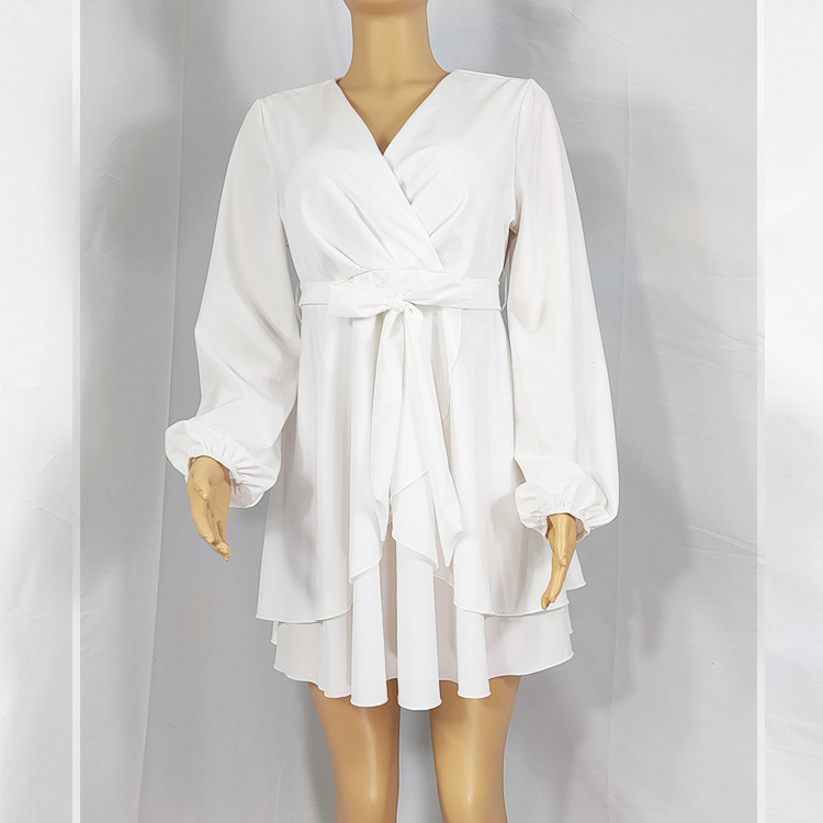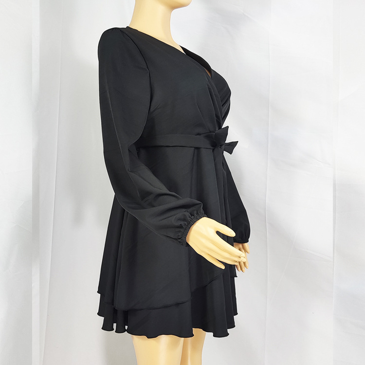 2023 아마존 독립 역 깊은 V-넥 긴 소매 원피스 허리 레이스 업 주름 미니 스케이트 스케이트 스케이트 원피스스토어 가기