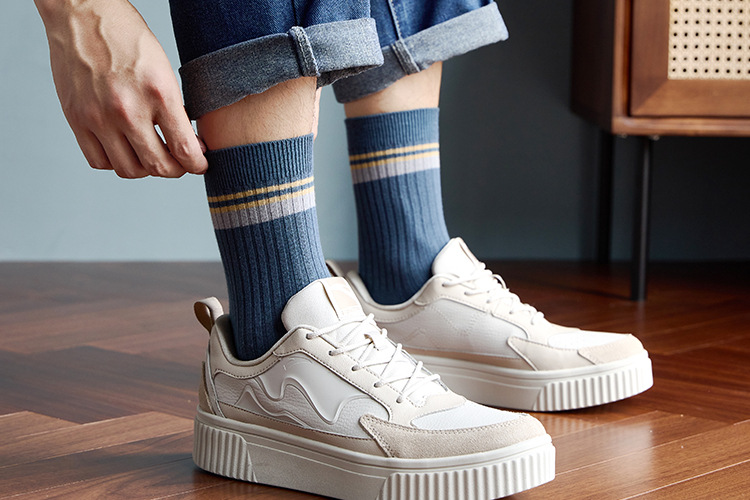 양말 남성 가을과 겨울 새로운 이중 바늘 빗질 면화 남성 양말 빈티지 튜브 양말 줄무늬 패션 두꺼운면 양말스토어 가기