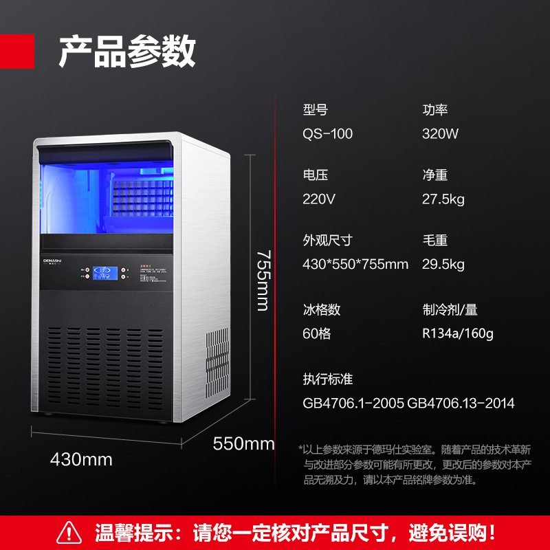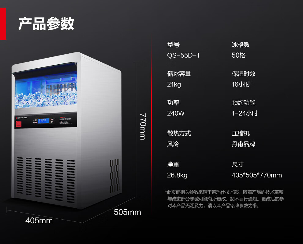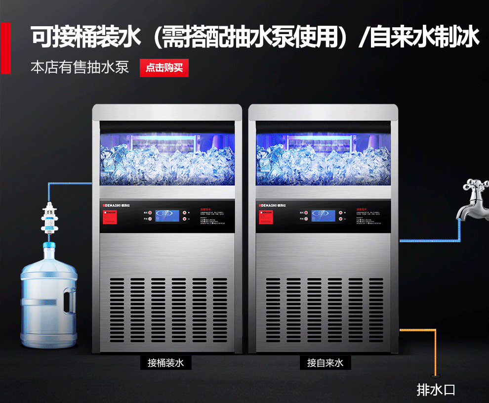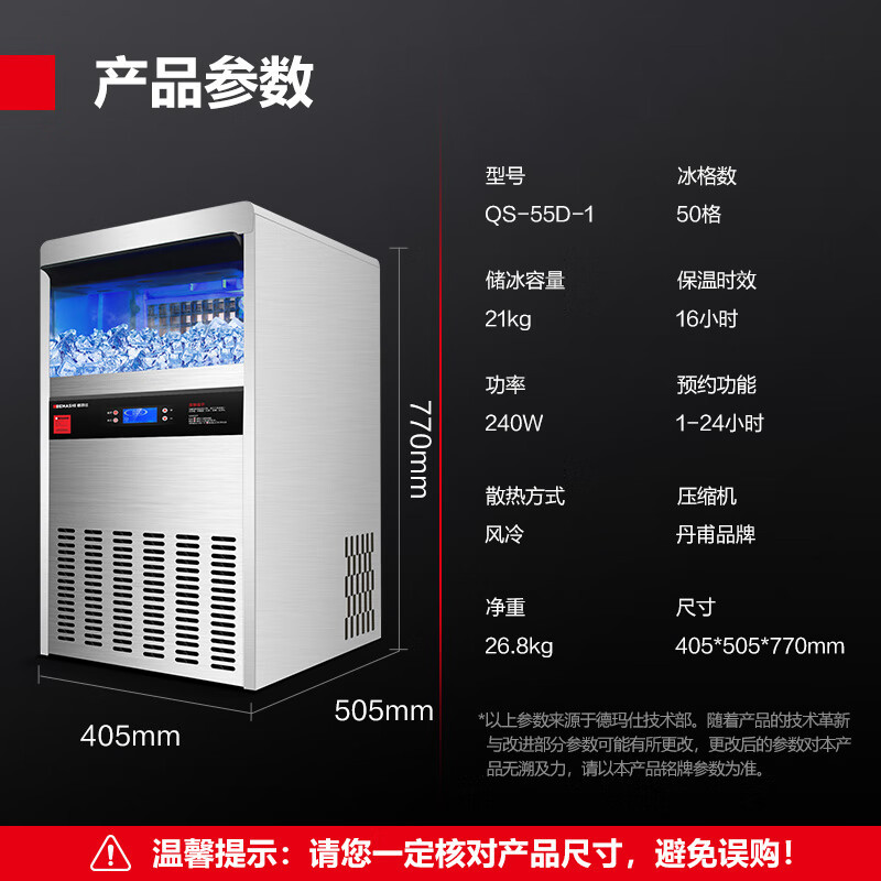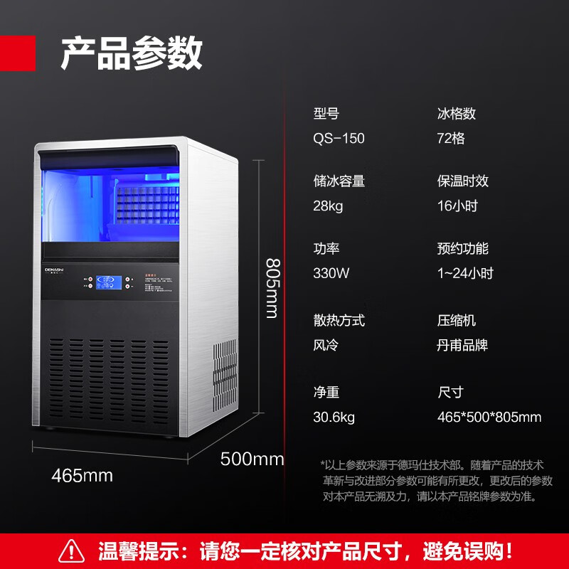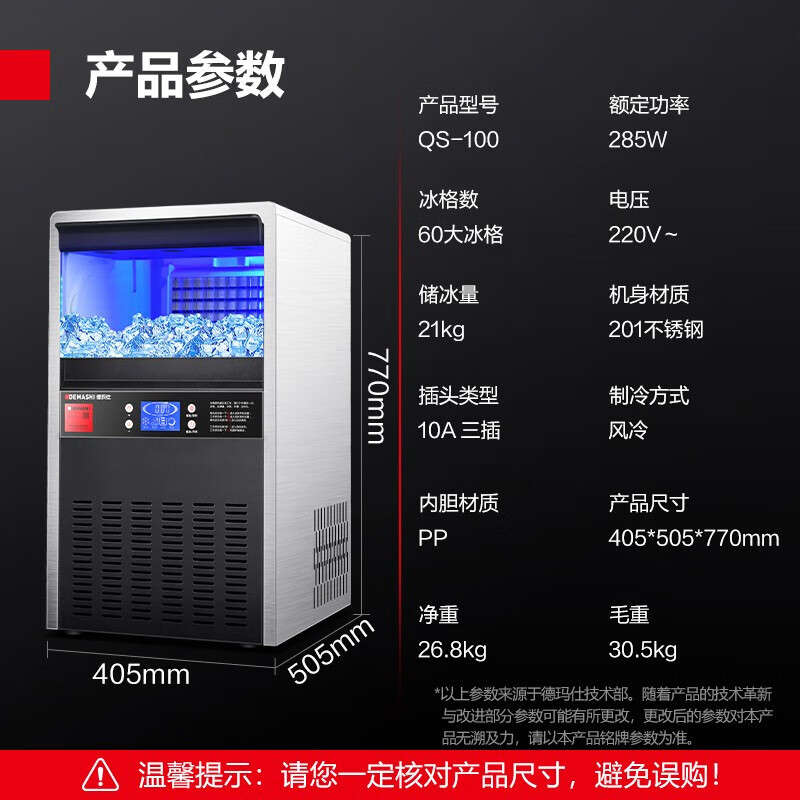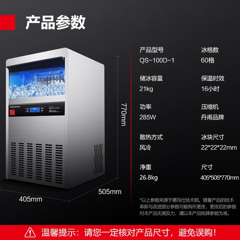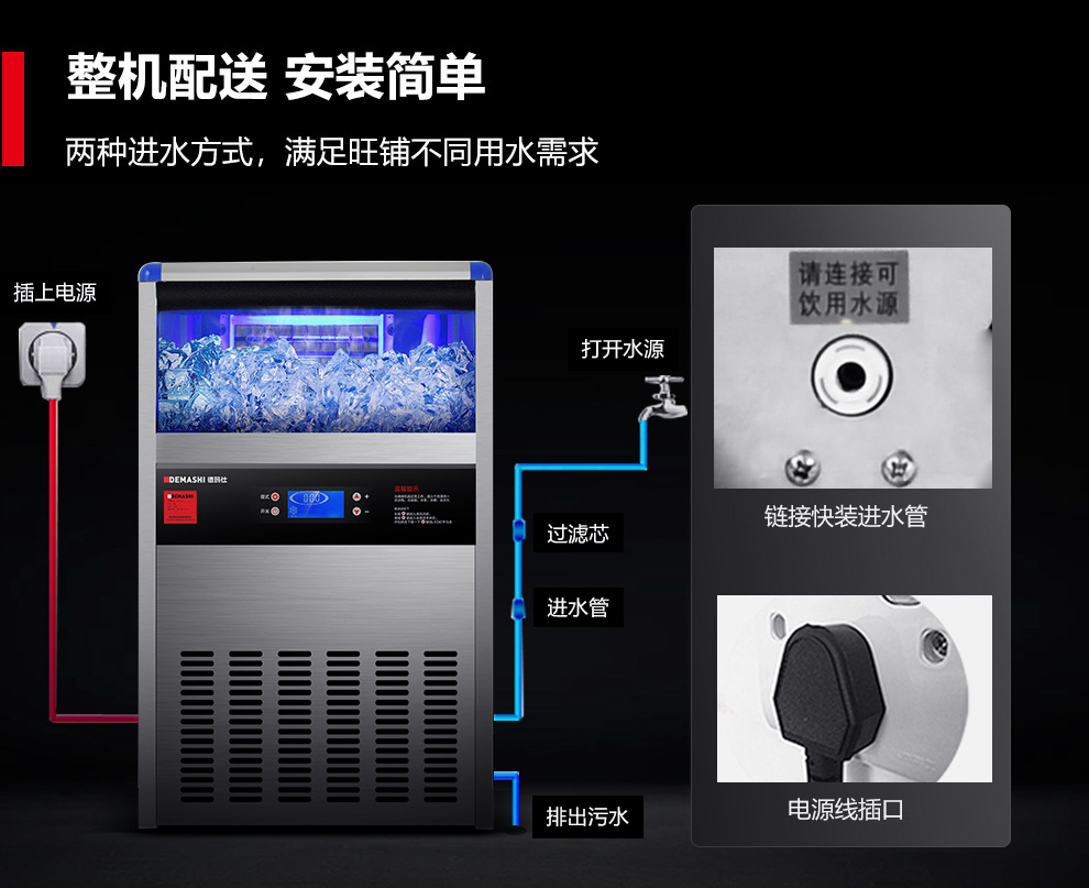 德玛仕全自动一体流水式方冰制冰机 咖啡奶茶店全自动制冰器商用