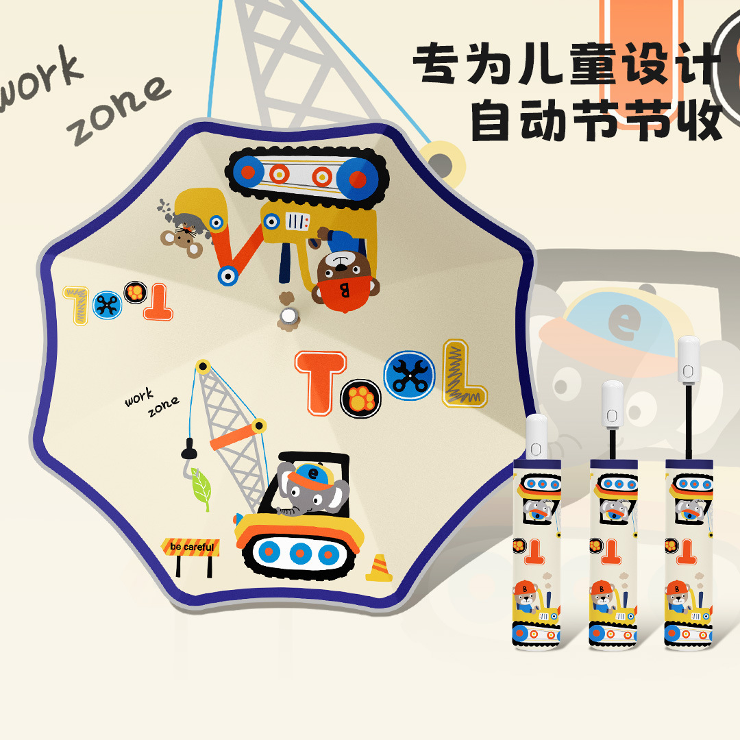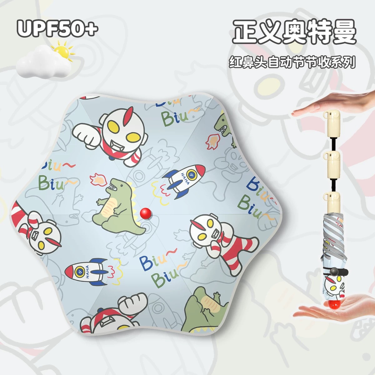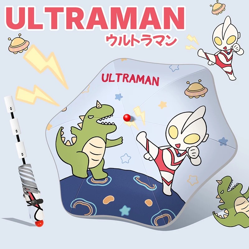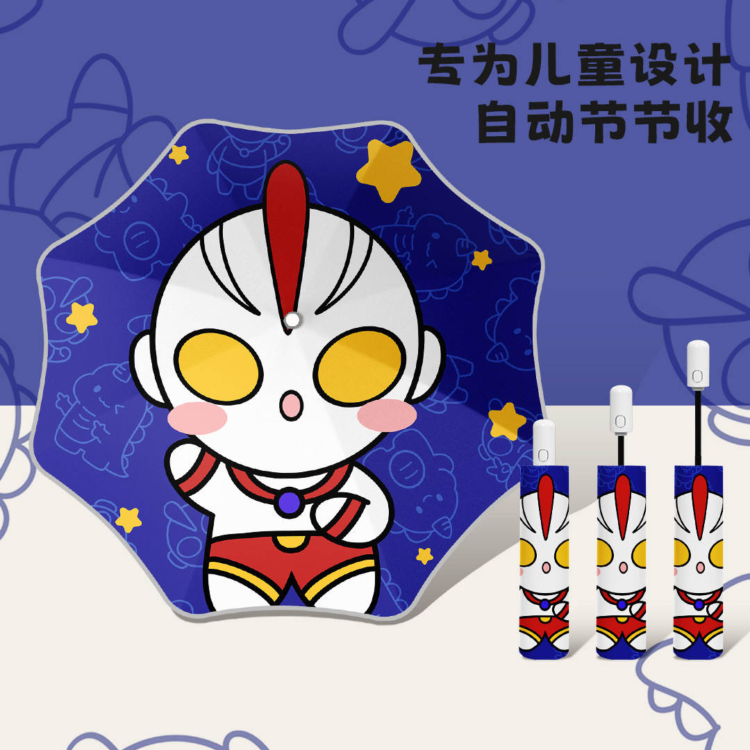 • 우산 가방 공룡 울트라맨 - 자동 접이식 (빨간 코 + 반사 스트립 + 둥근 모서리)