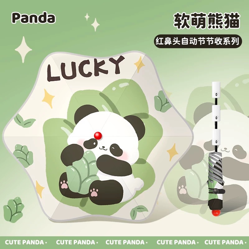 • 귀여운 팬더가 그려진 우산 가방을 보내세요 - 자동으로 접힙니다(빨간 코 + 반사 스트립 + 둥근 모서리)