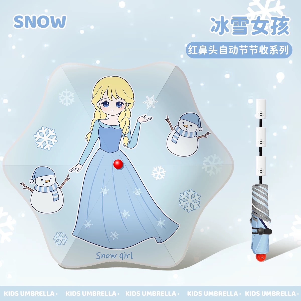 • 우산 가방을 든 얼음과 눈의 소녀 - 자동으로 수집됨(빨간 코 + 반사 스트립 + 둥근 모서리)
