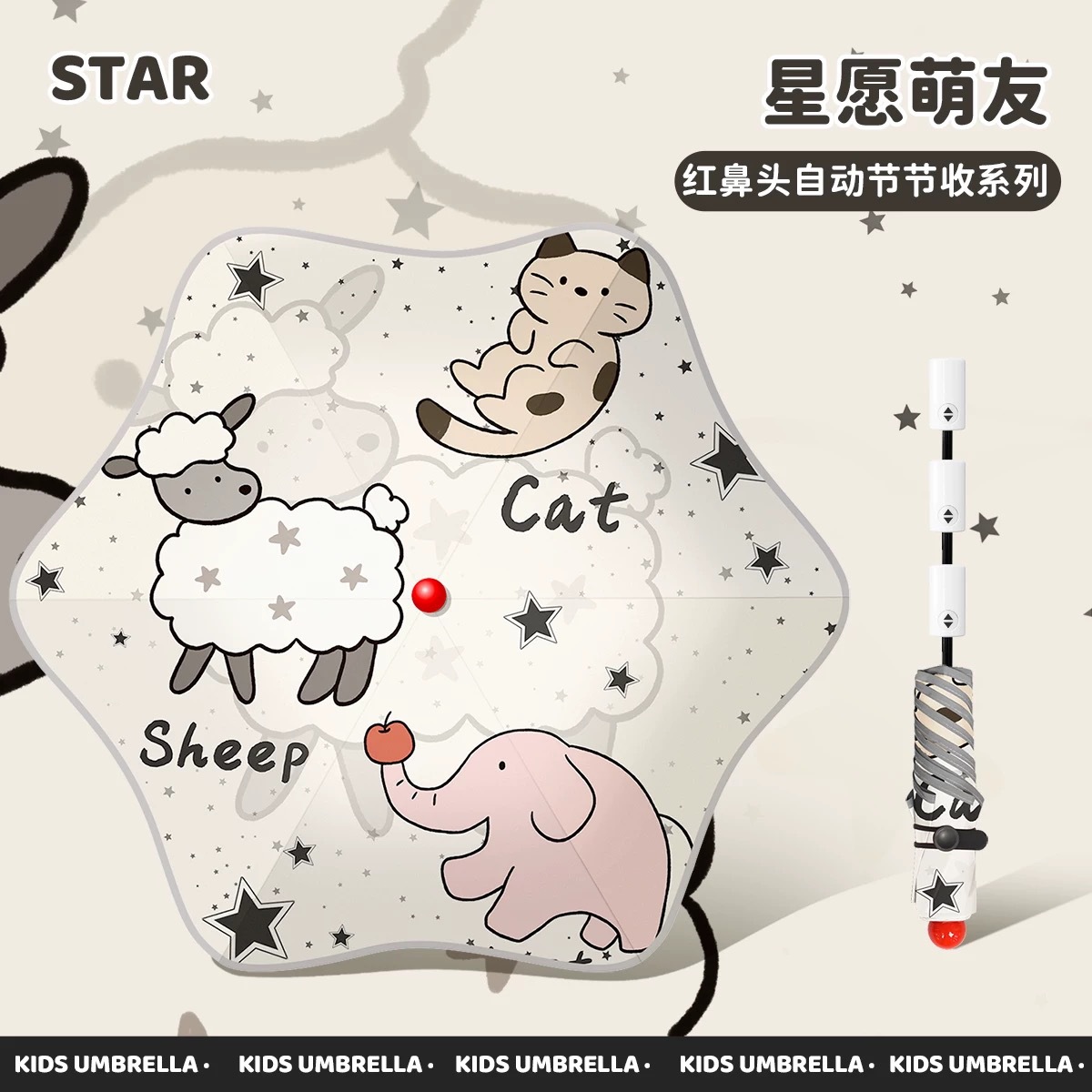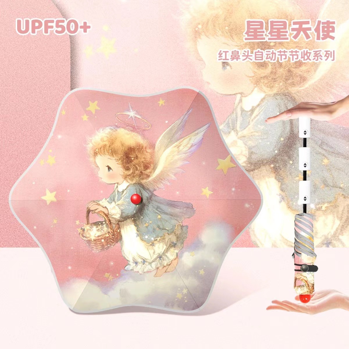 • 별과 천사를 담은 우산 가방 - 자동 수집(코끼리 손잡이 + 빨간 코 + 둥근 모서리)