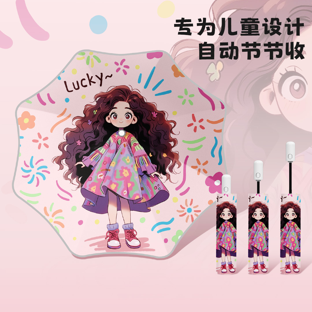 접이식 어린이 우산 절약 방폭 방지 리바운드 어린이 맑은 우산 어린이를위한 완전 자동 접이식 우산 태양 우산