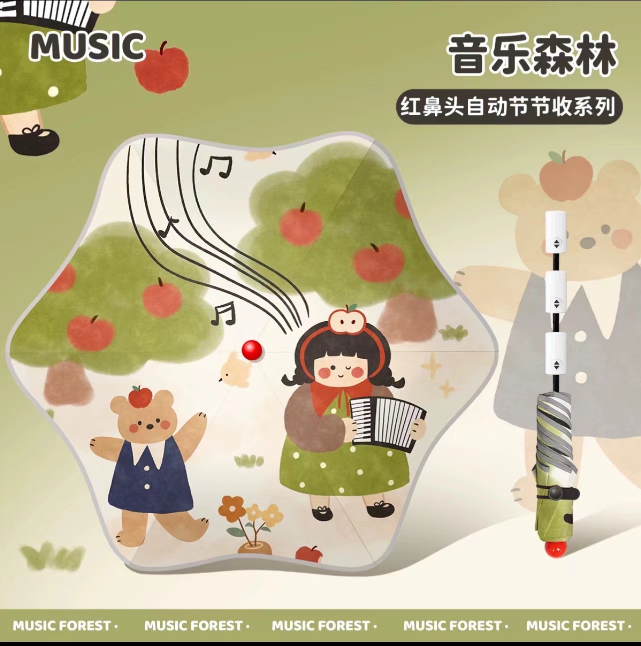 • 우산 가방과 음악 숲을 보내세요 - 자동 수집(빨간 코 + 반사 스트립 + 둥근 모서리)