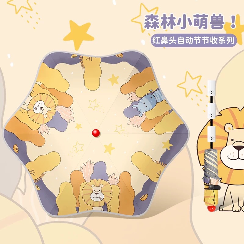 • 우산 가방을 든 숲속 귀여운 동물 - 자동으로 접힘(빨간 코 + 반사 스트립 + 둥근 모서리)